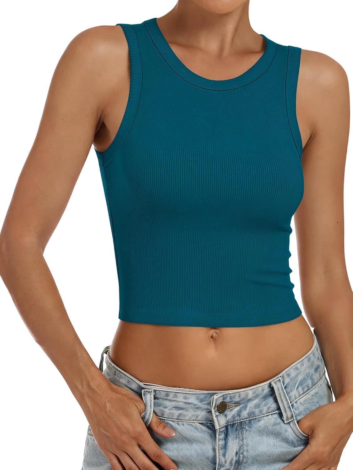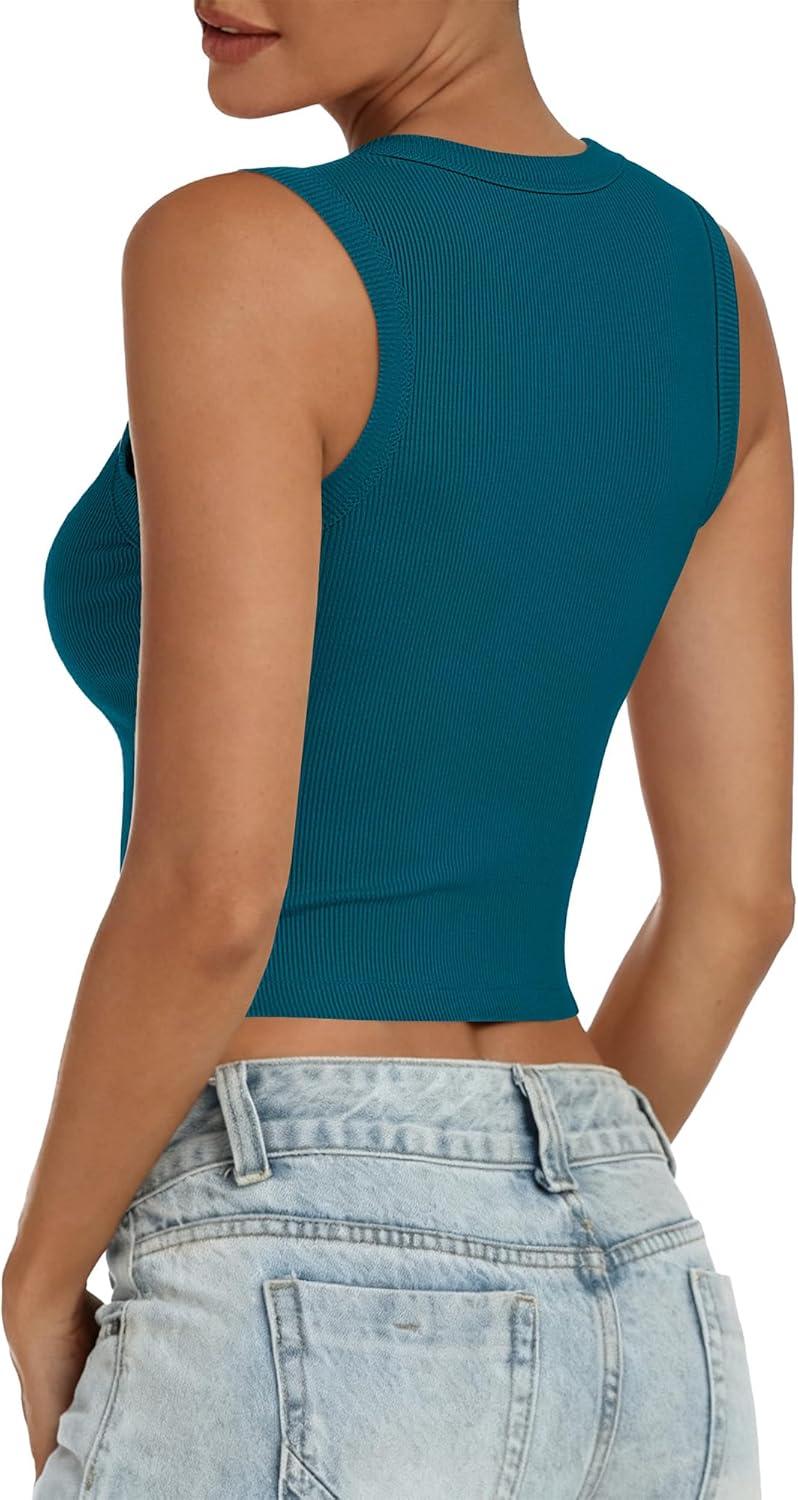 ANRABESS Womens Crop Tank Tops High Neck Sleeveless Ribbed Knit Slim Fit Shirts 2026 Summer Casual Basic Workout Clothes(Indigo)