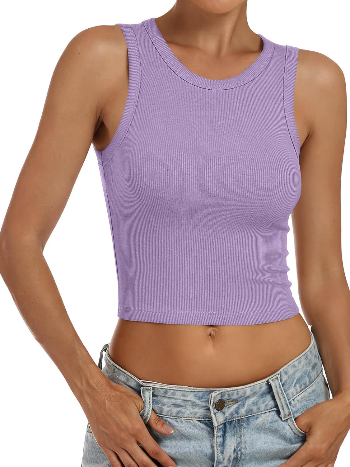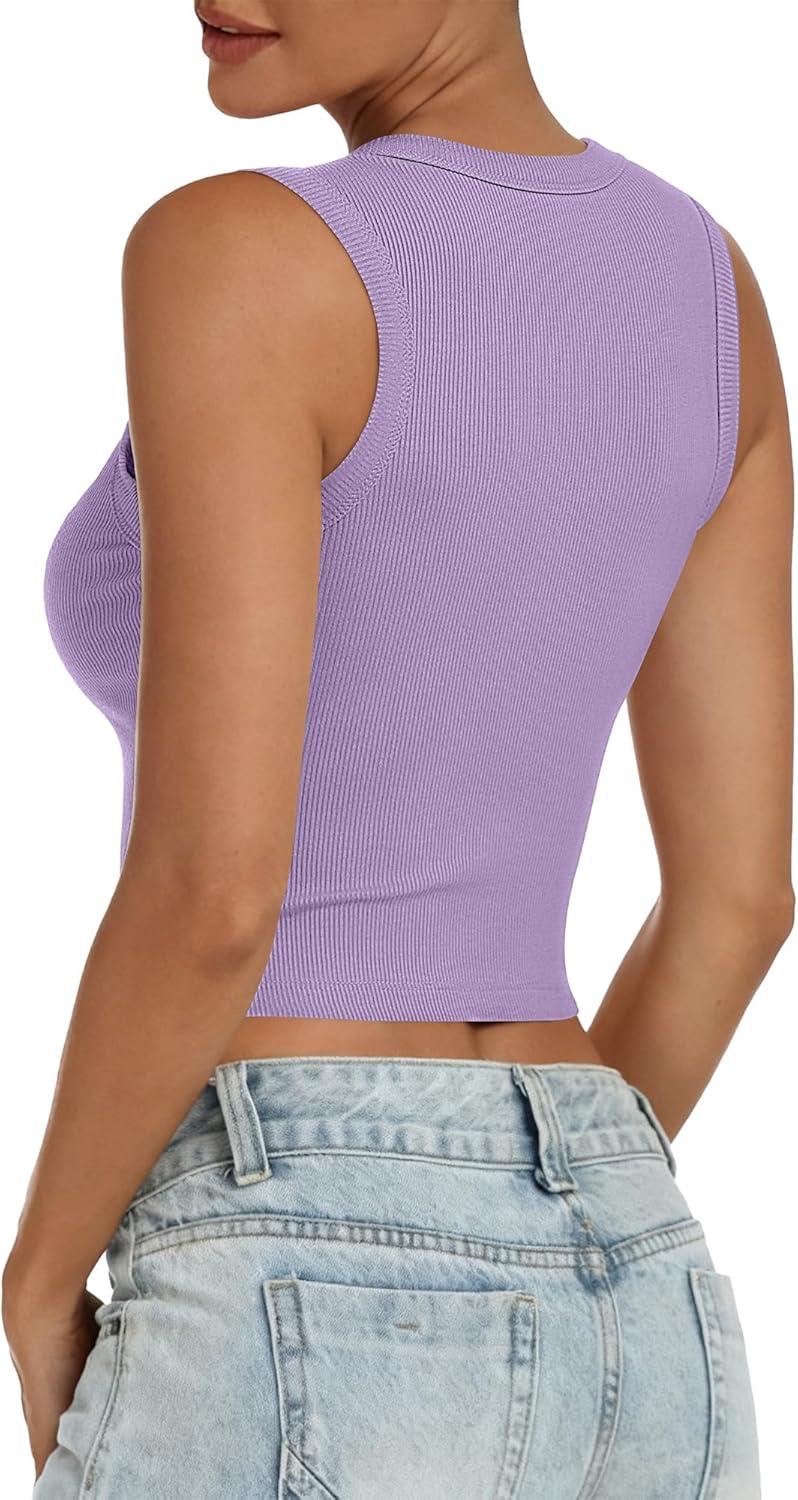 ANRABESS Womens Crop Tank Tops High Neck Sleeveless Ribbed Knit Slim Fit Shirts 2026 Summer Casual Basic Workout Clothes(Light Purple)