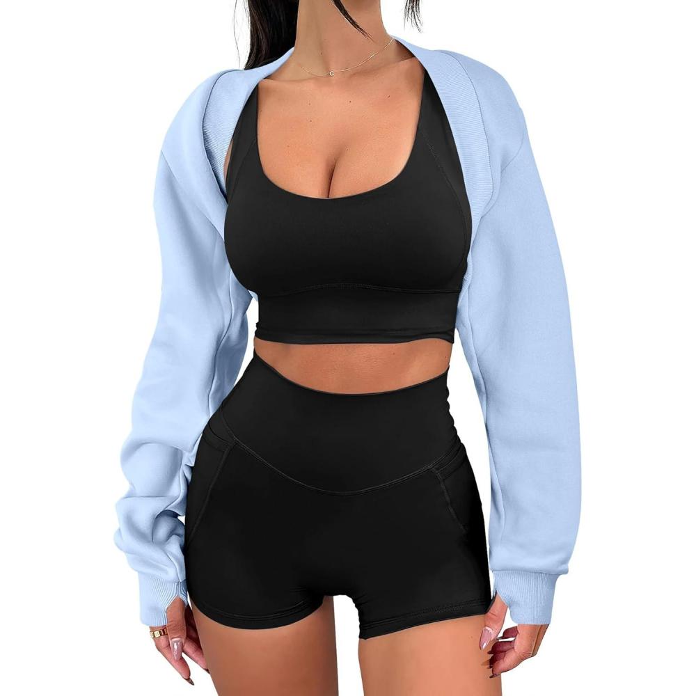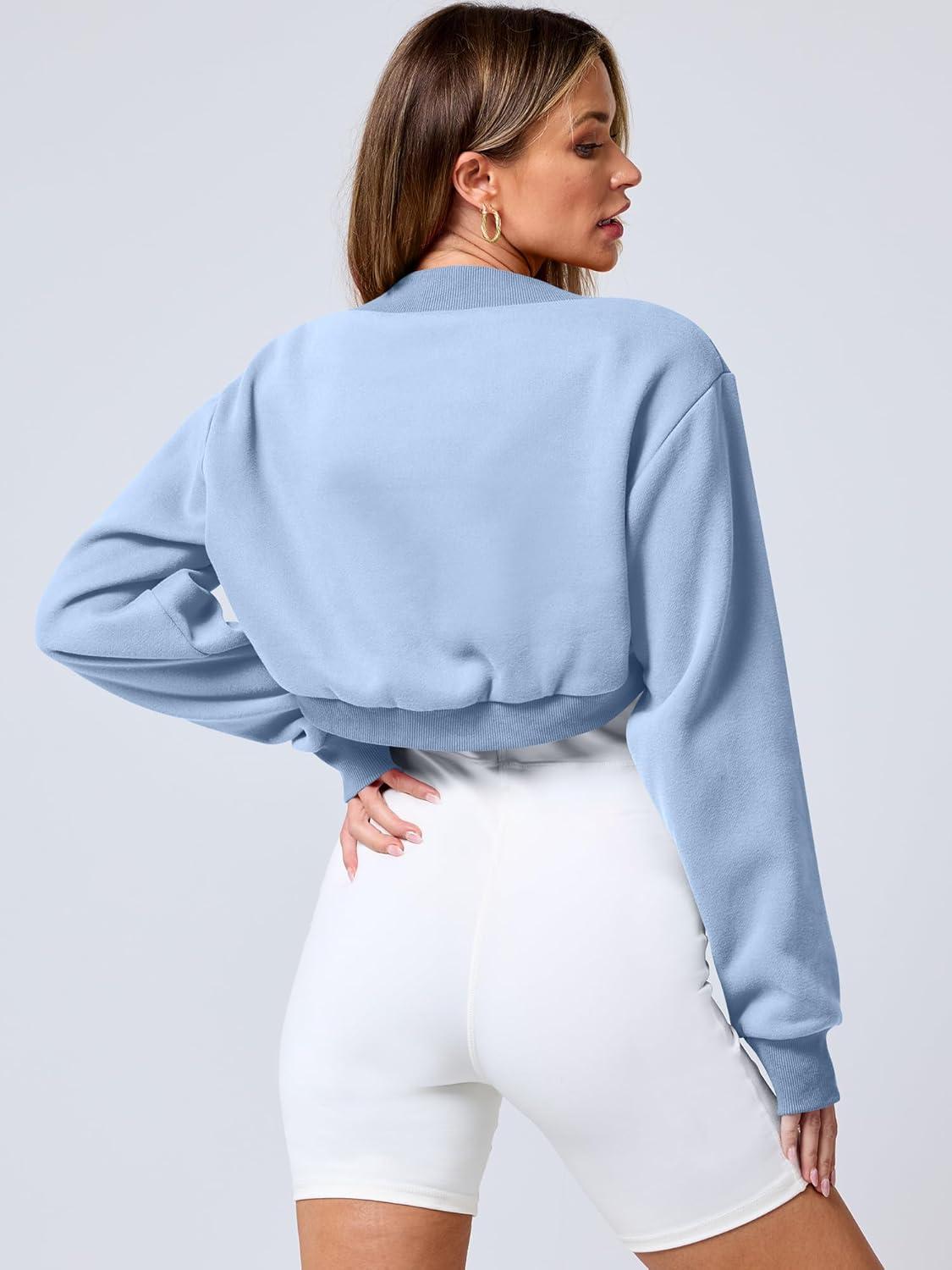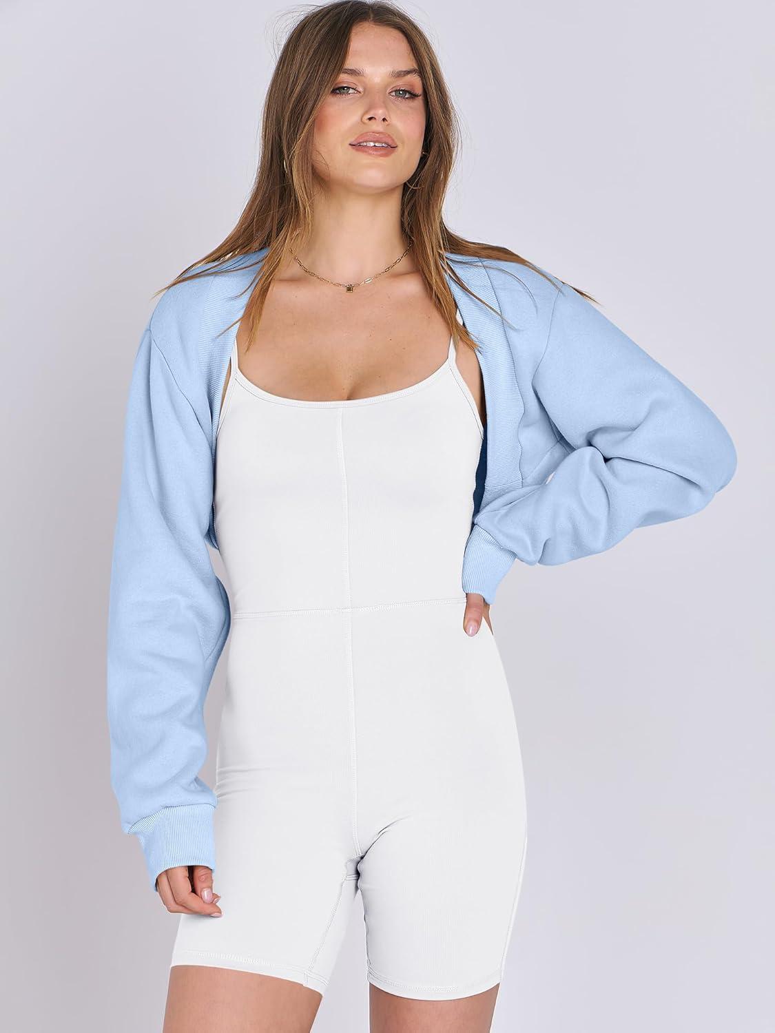 ANRABESS Womens Cropped Sweatshirt Long Sleeve Bolero Cardigan Open Front Shrug Workout Thumb Hole Y2K Tops Preppy Clothes(Sky)