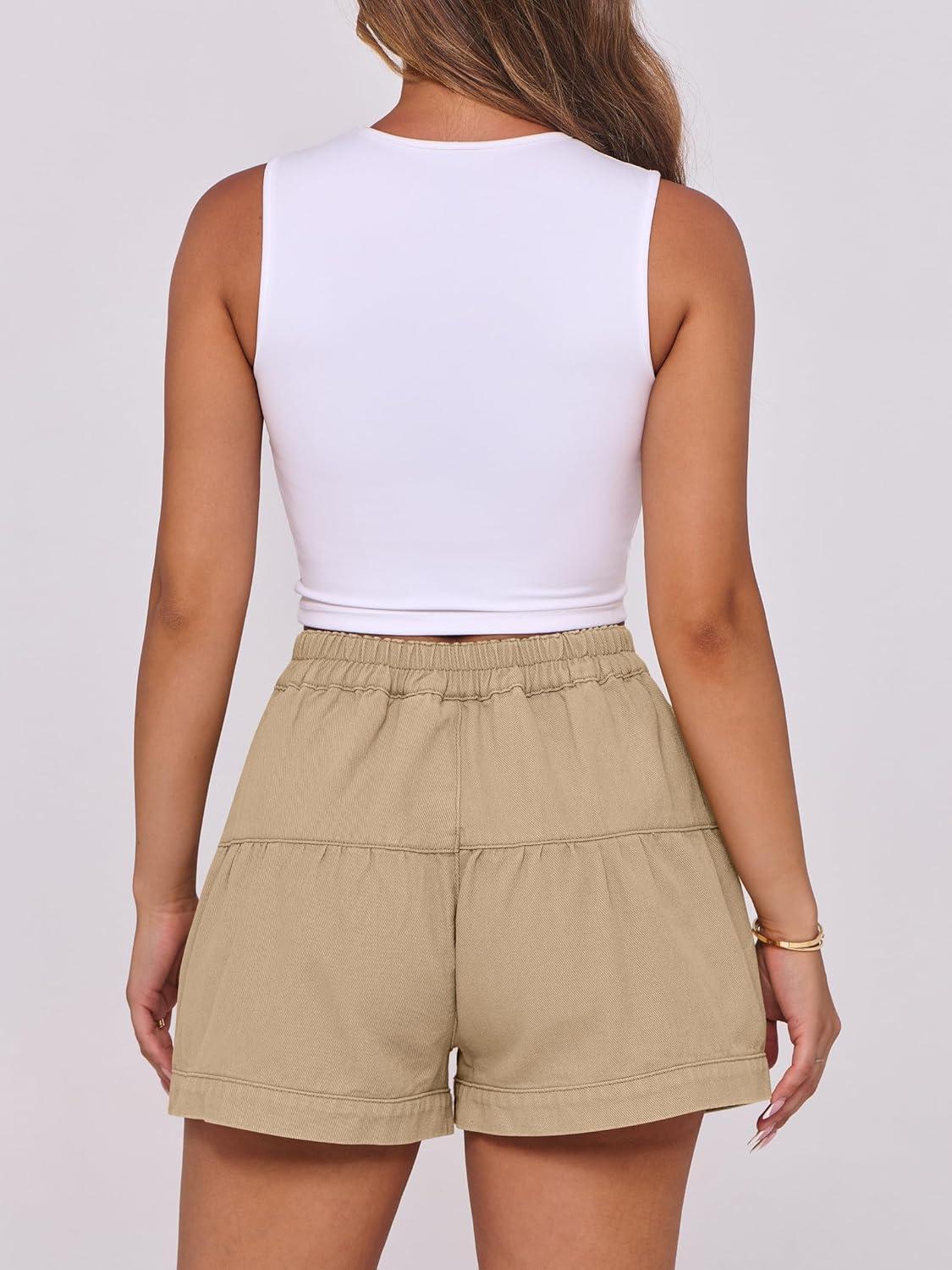 imageANRABESS Womens Denim Shorts Summer Baggy High Waisted Flowy Wide Leg Buttons Pleated Casual Jean Shorts 2025 Fashion SkortsKhaki