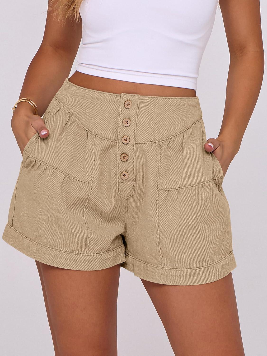 ANRABESS Women’s Denim Shorts Summer Baggy High Waisted Flowy Wide Leg Buttons Pleated Casual Jean Shorts 2025 Fashion Skorts(Khaki)