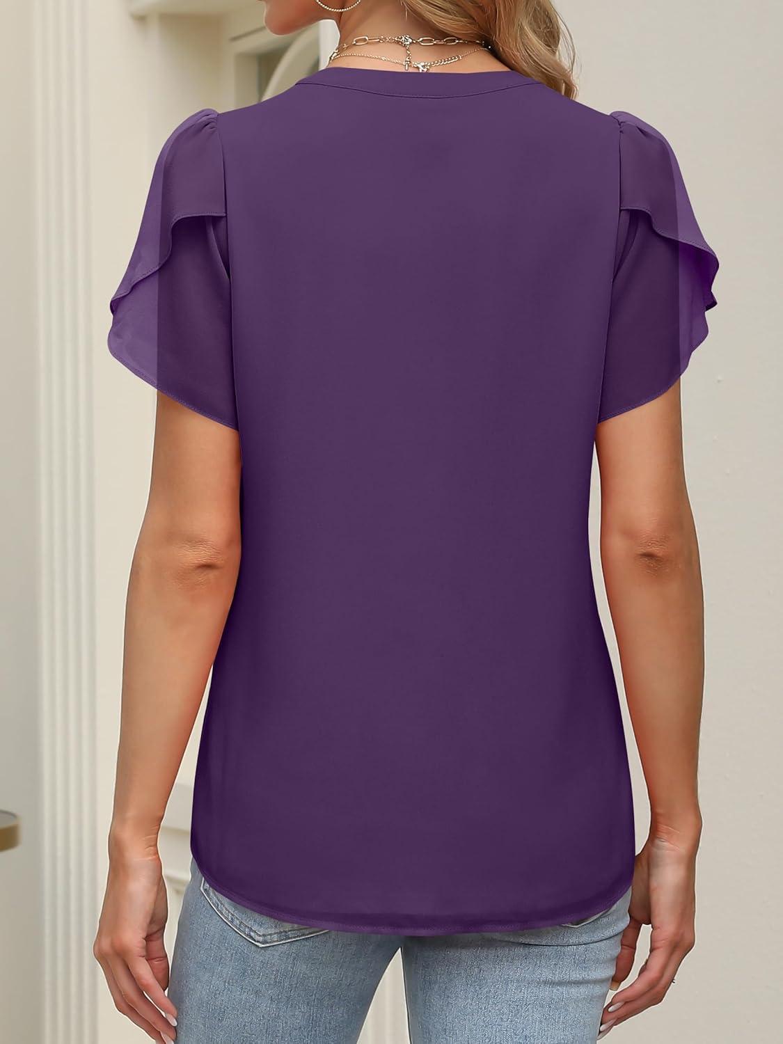 imageANRABESS Womens Dressy Chiffon Blouses V Neck Petal Short Sleeve Shirts 2025 Summer Casual Business Office Work TopsDeep Purple