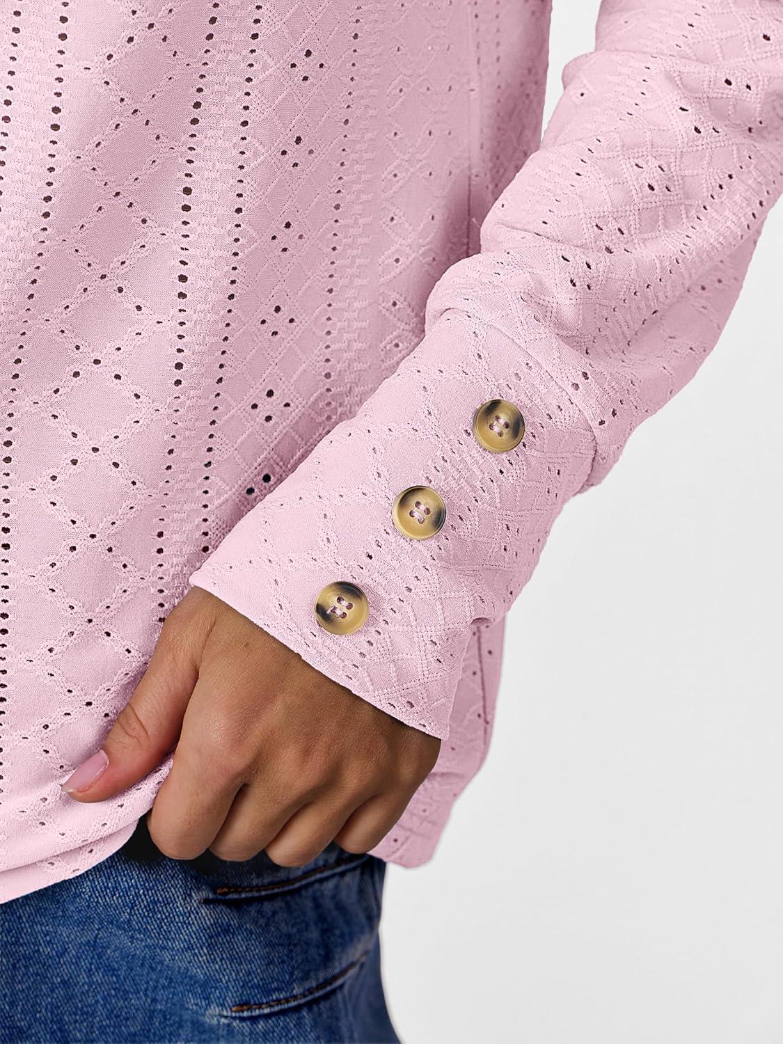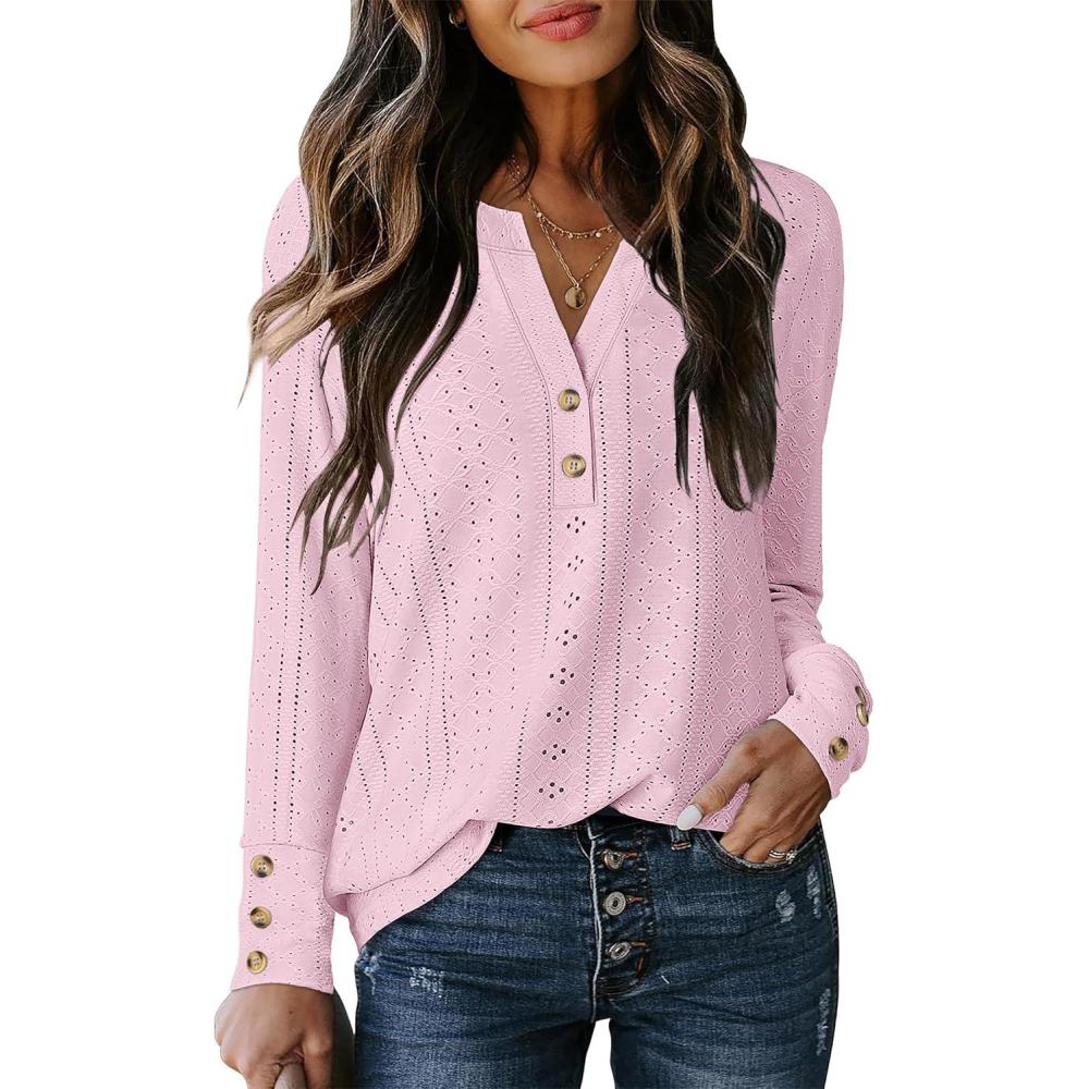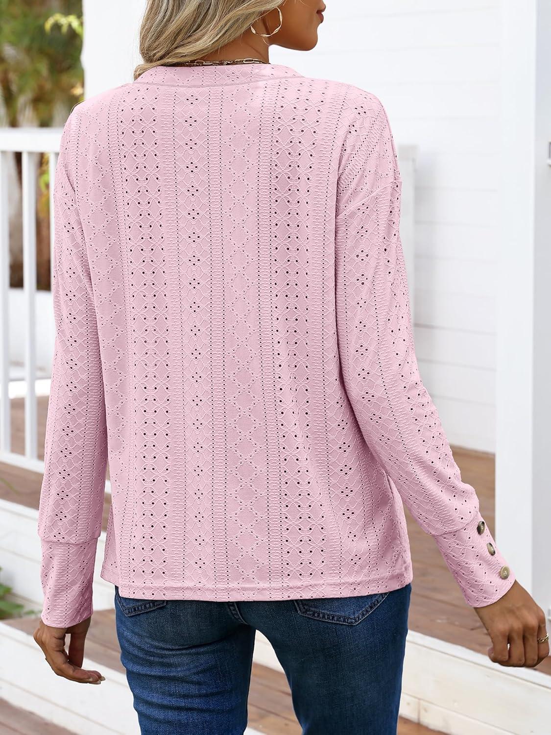 imageANRABESS Womens Eyelet Tops Long Sleeve Henley Shirts Business Dressy Casual Blouse Vacation TShirt 2025 Fall OutfitsLight Pink