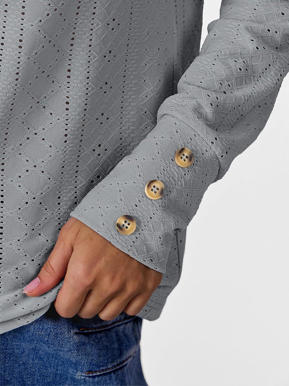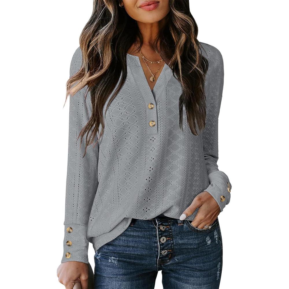 imageANRABESS Womens Eyelet Tops Long Sleeve Henley Shirts Business Dressy Casual Blouse Vacation TShirt 2025 Fall OutfitsSilver Grey