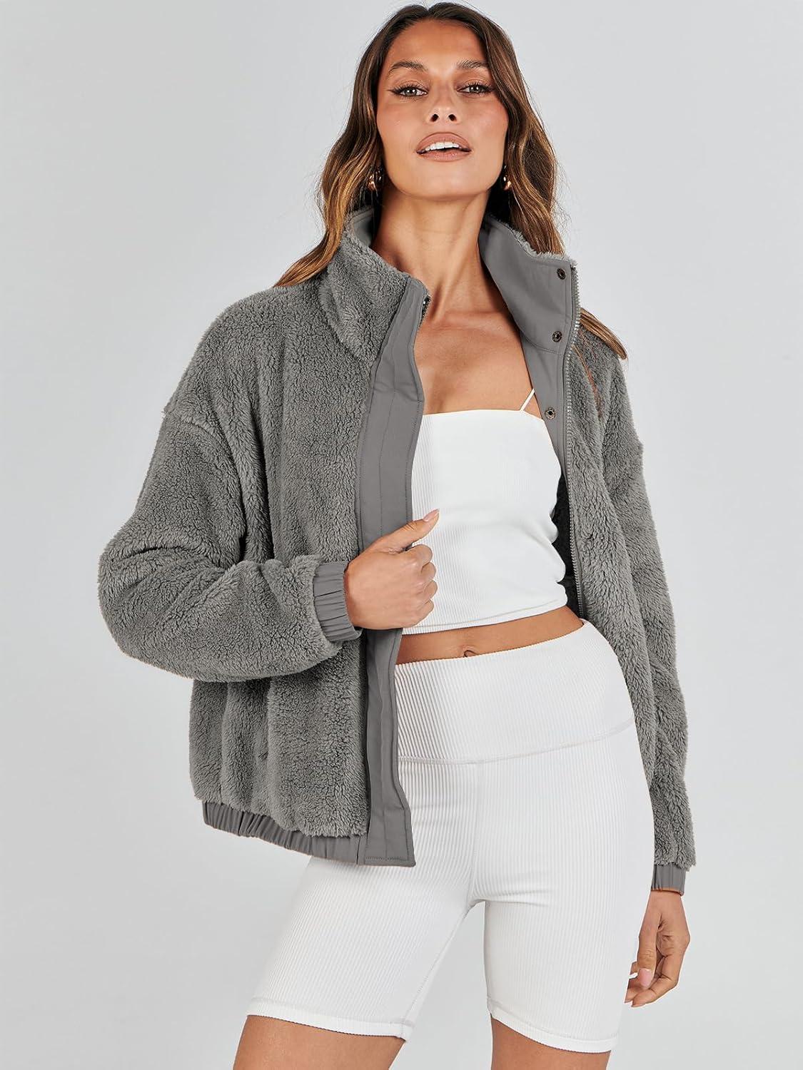 Be the first to review “ANRABESS Womens Fleece Jacket Casual Long Sleeve Cropped Sherpa Button Down Fuzzy Warm Coats Fall Outwear With Pockets(Grey 2)”