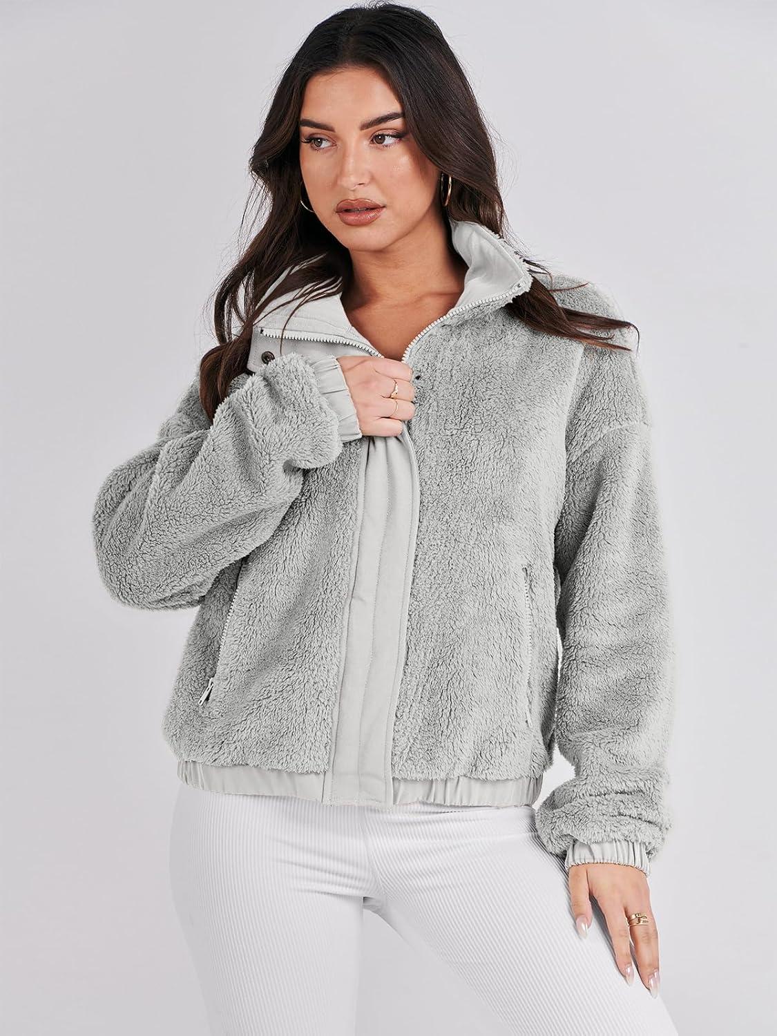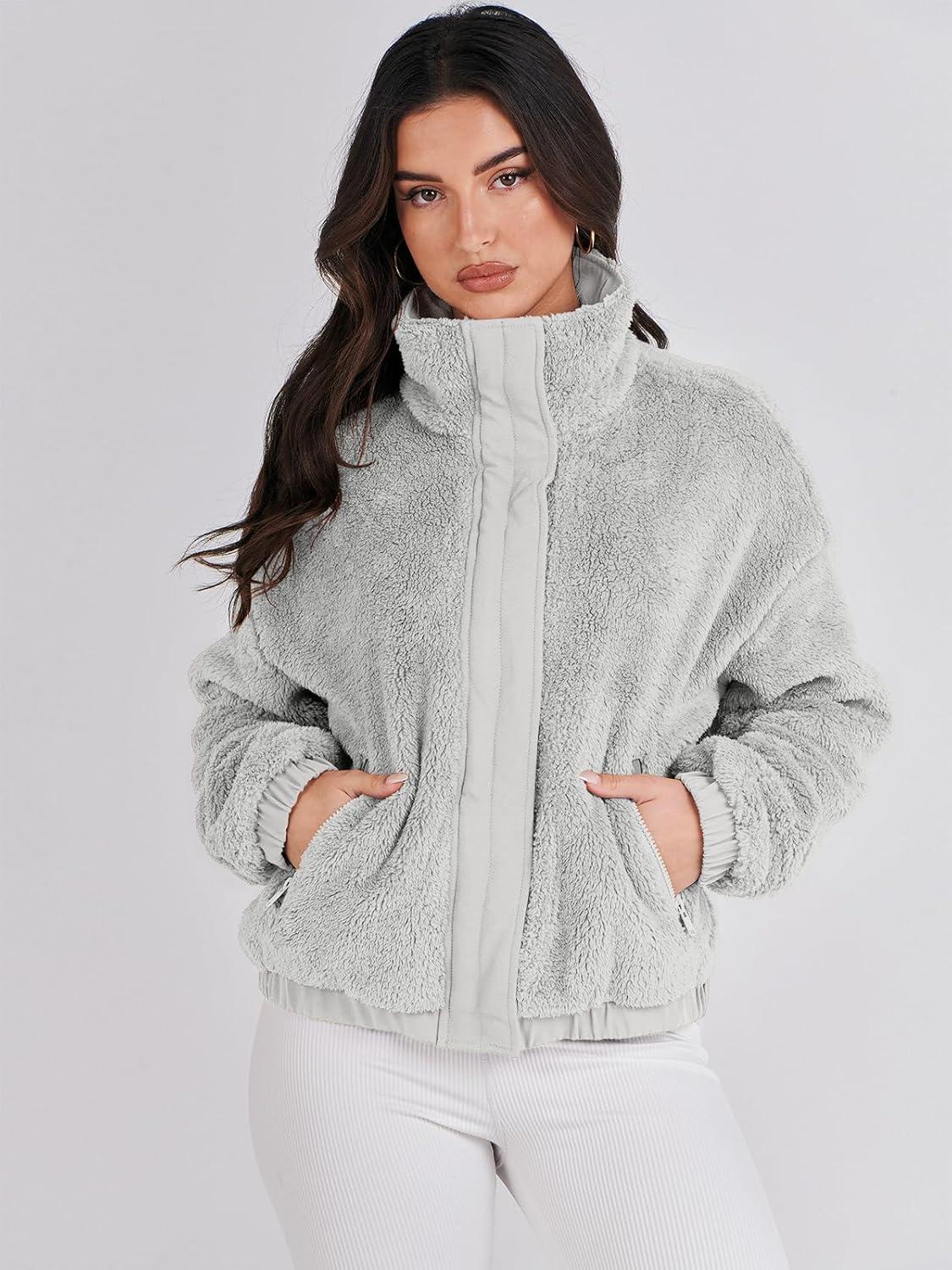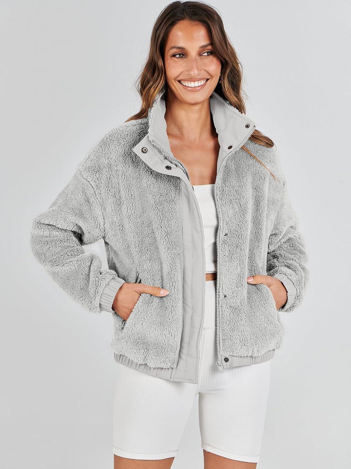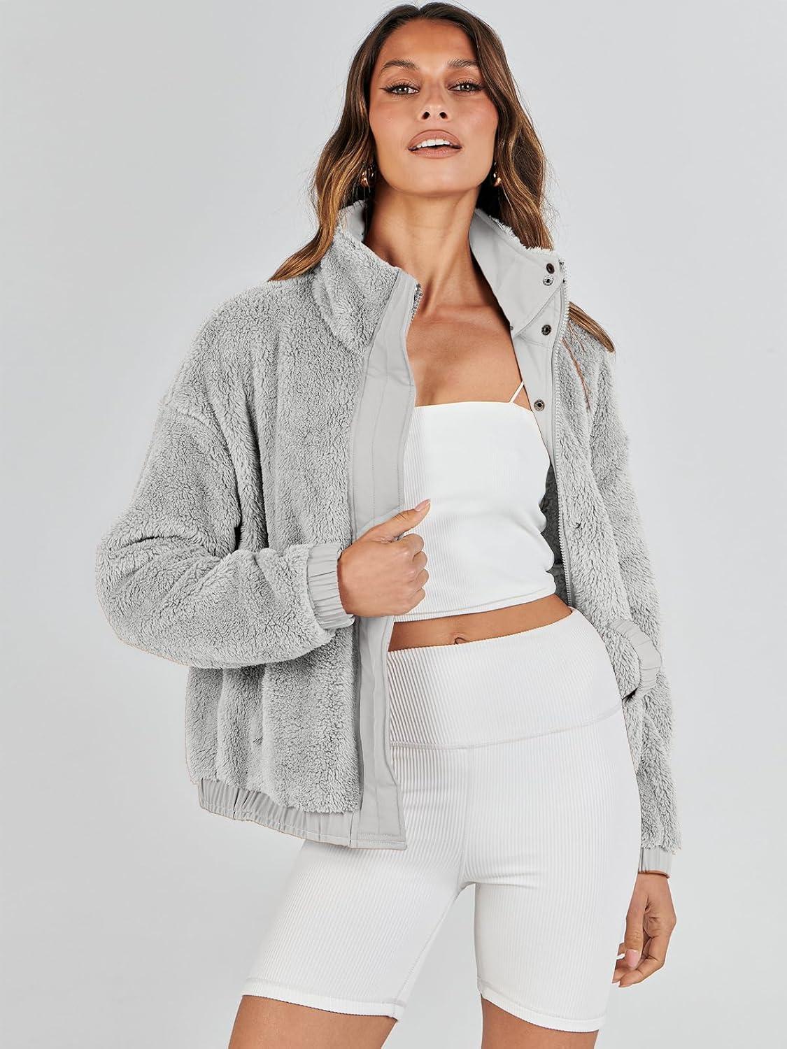 Be the first to review “ANRABESS Womens Fleece Jacket Casual Long Sleeve Cropped Sherpa Button Down Fuzzy Warm Coats Fall Outwear With Pockets(Light Grey)”