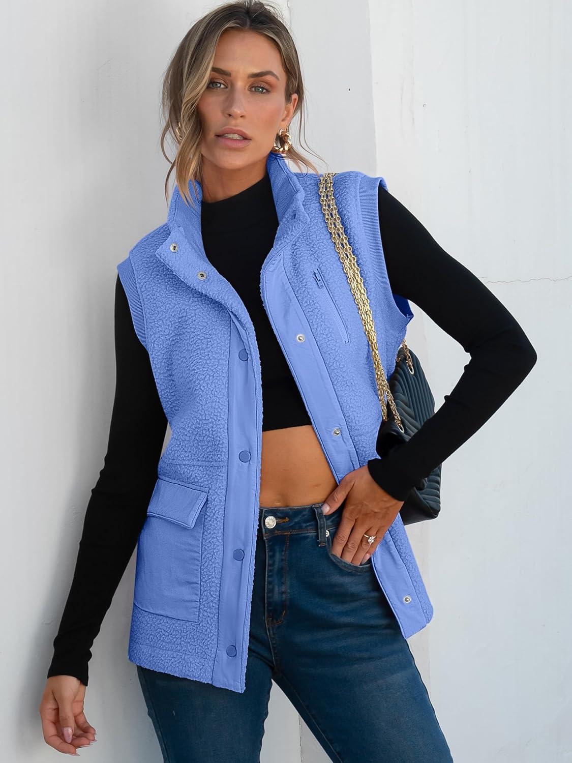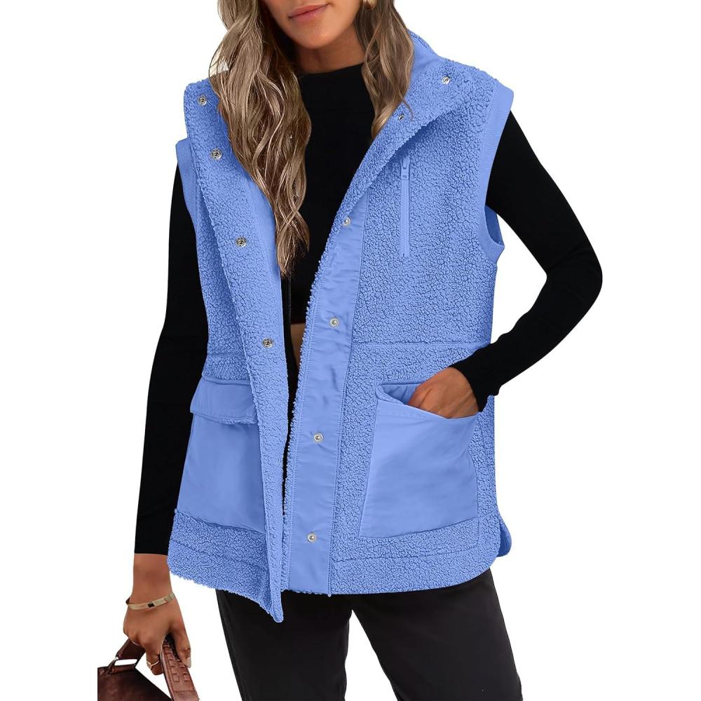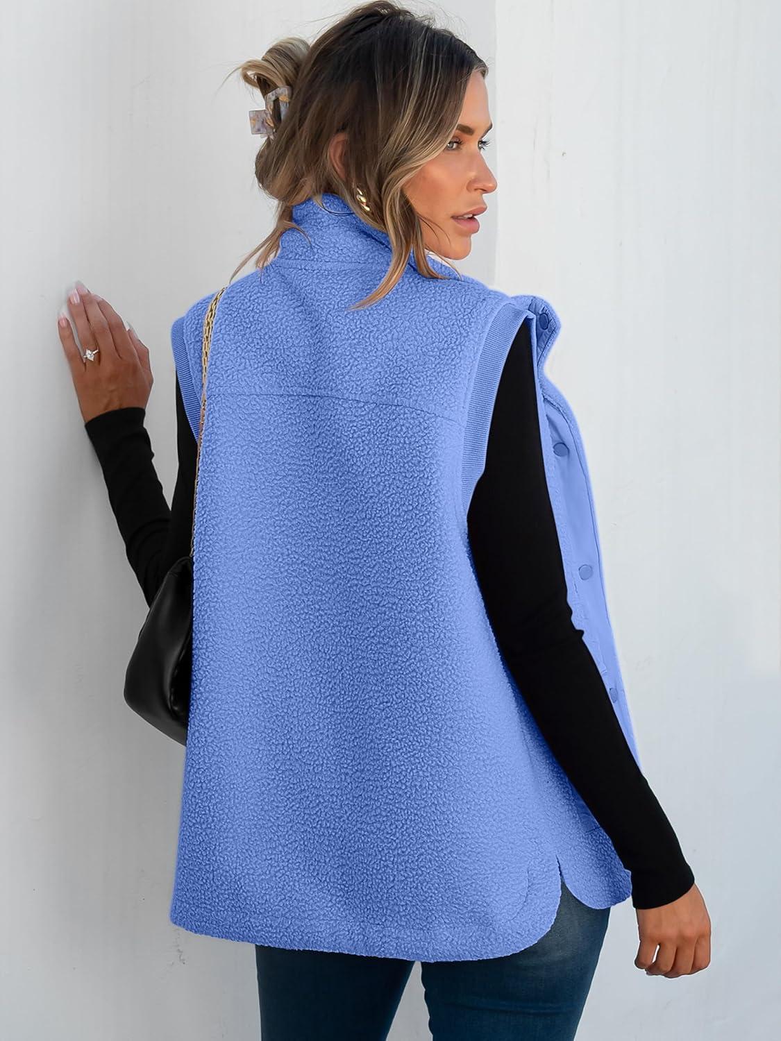 ANRABESS Womens Fleece Vest Loose Warm Button Down Fall Fuzzy Sherpa Jackets Fuzzy Vest With Pockets Winter Outerwear(Blue)
