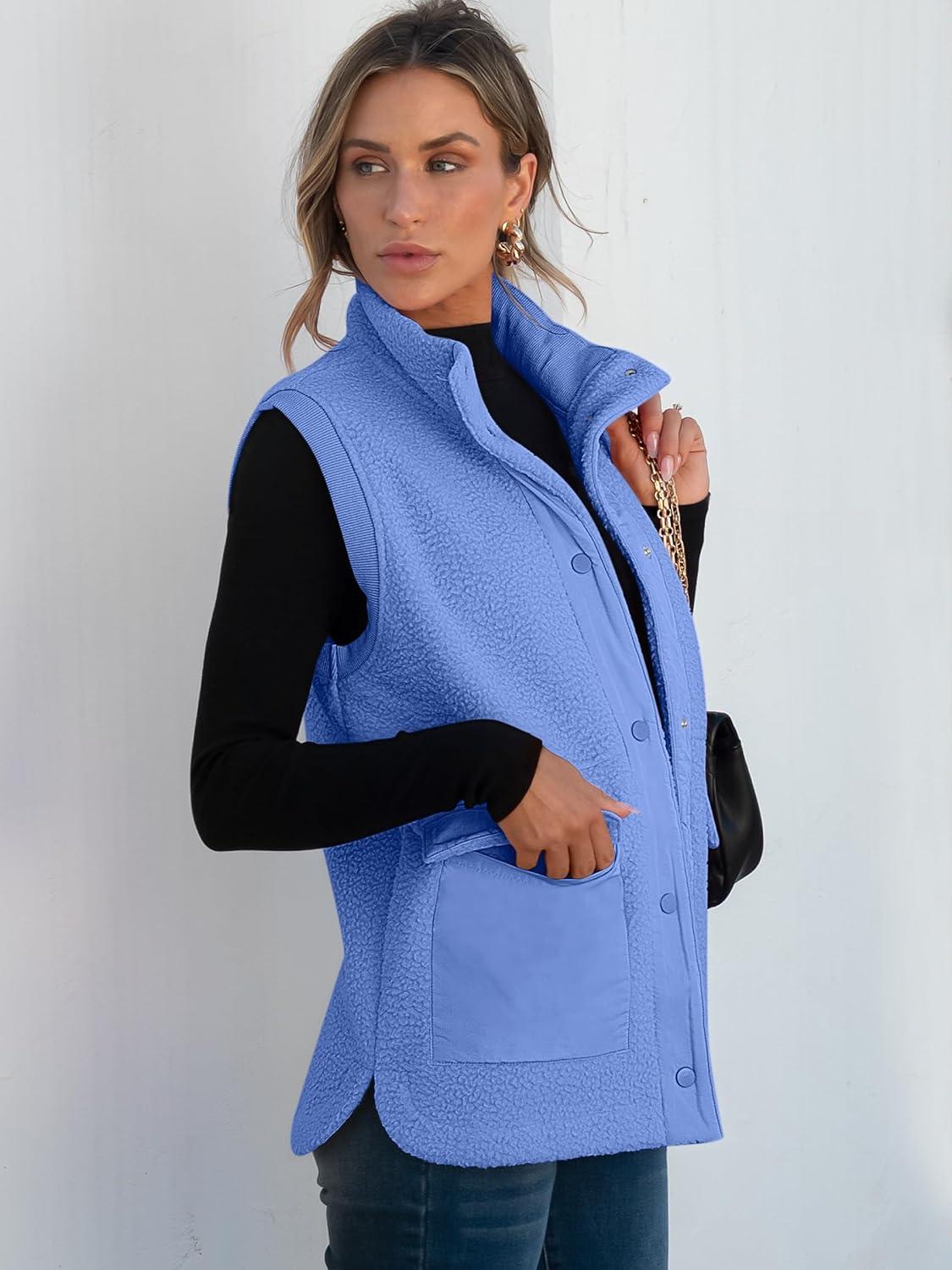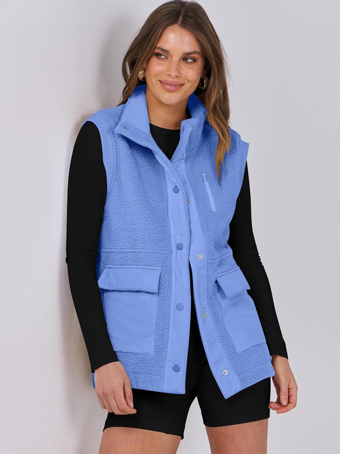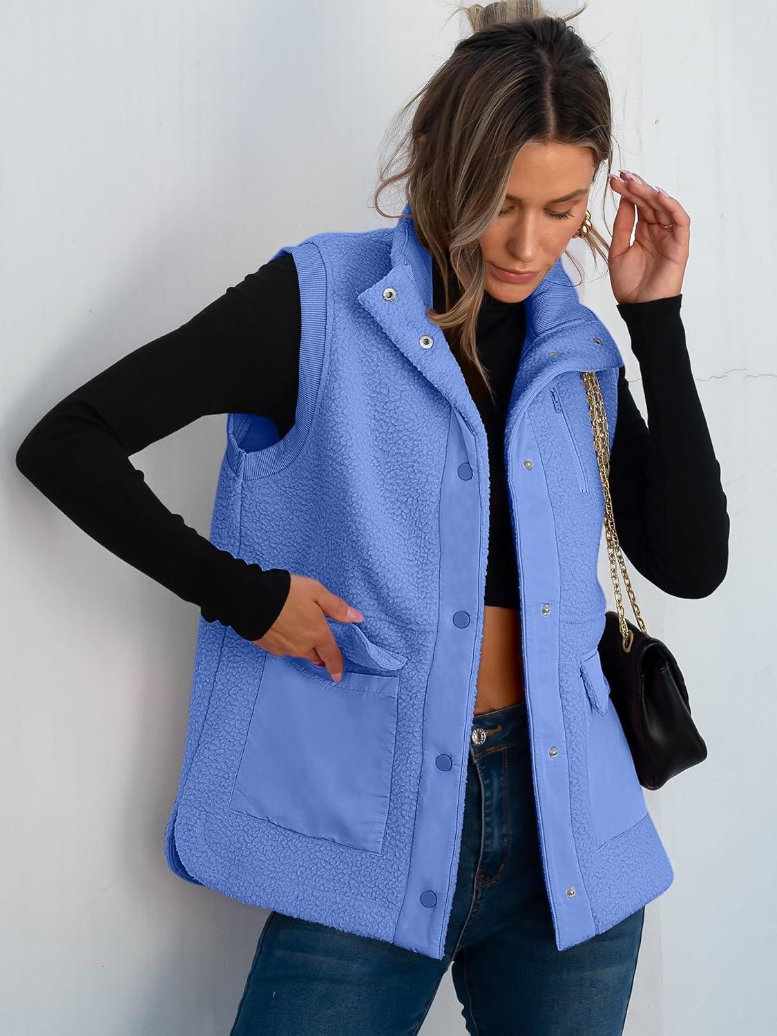 ANRABESS Womens Fleece Vest Loose Warm Button Down Fall Fuzzy Sherpa Jackets Fuzzy Vest With Pockets Winter Outerwear(Blue)