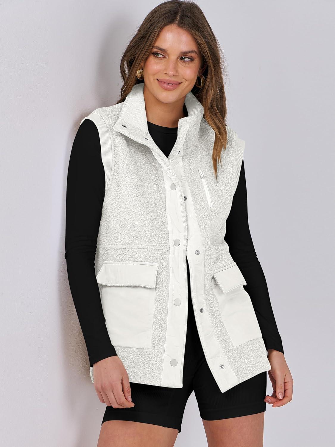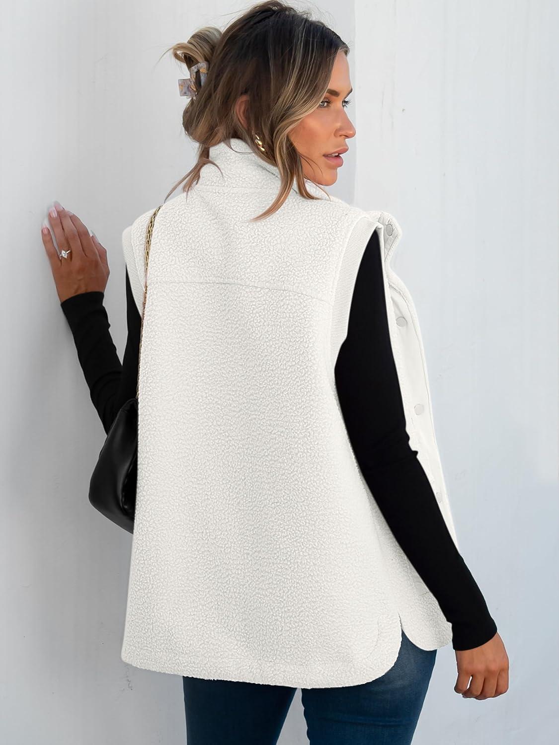 ANRABESS Womens Fleece Vest Loose Warm Button Down Fall Fuzzy Sherpa Jackets Fuzzy Vest With Pockets Winter Outerwear(White)