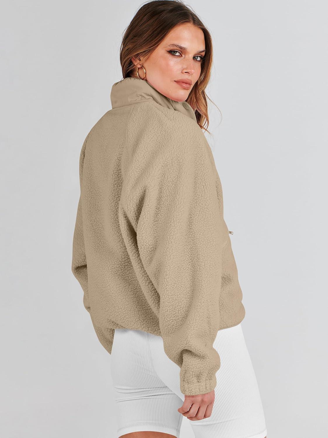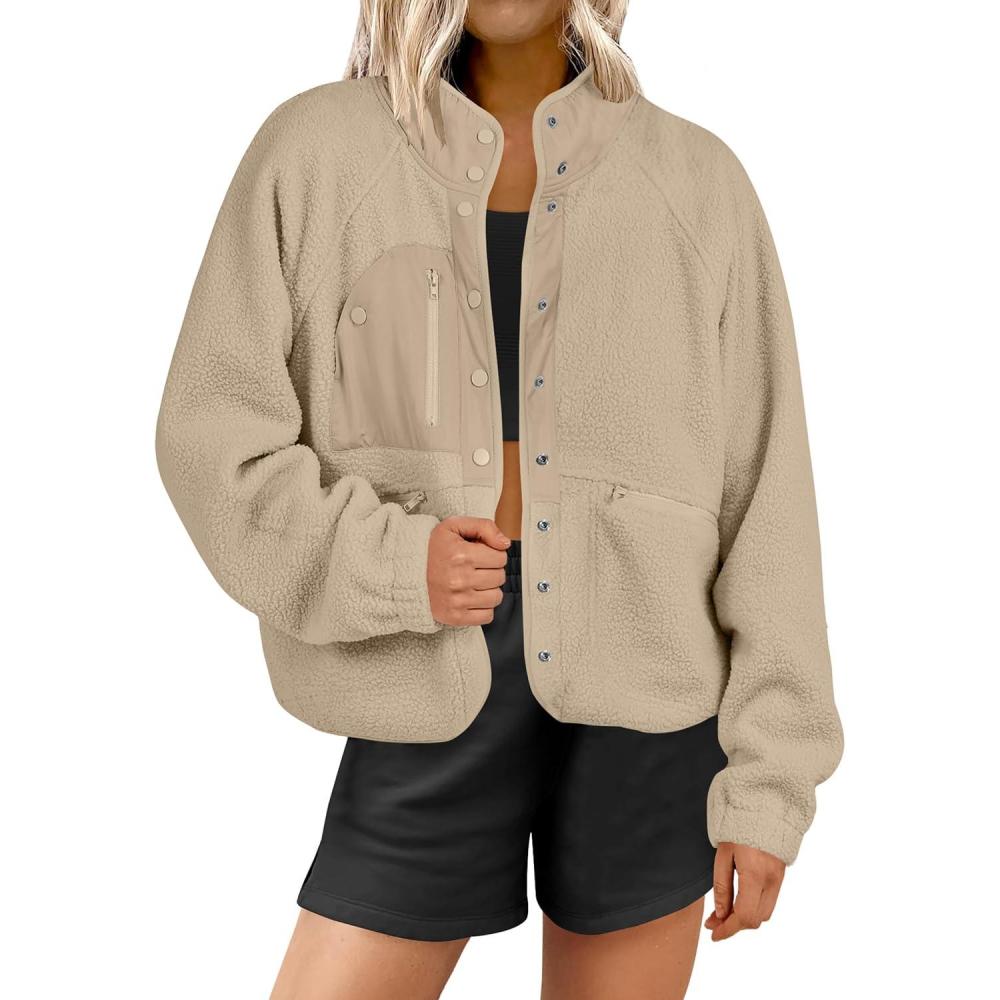 Be the first to review “ANRABESS Womens Fuzzy Fleece Jacket Fall Casual Long Sleeve Cropped Sherpa Button Down Shacket Coats Outwear With Pockets(Khaki)”