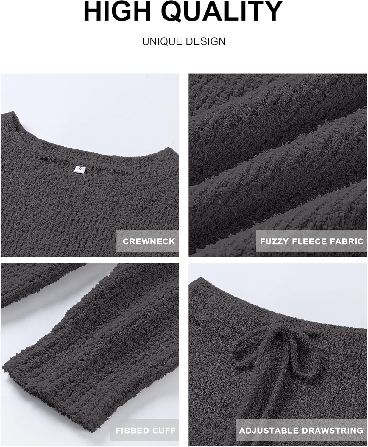 ANRABESS Womens Fuzzy Fleece Lounge Pajama Set 2 Piece Outfits Long Sleeve Top Sweater Pants Loungewear Pj Sets 2025 Fall(Deep Gray)