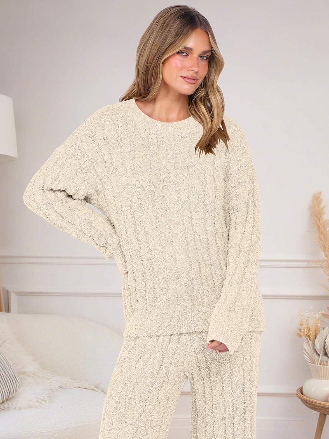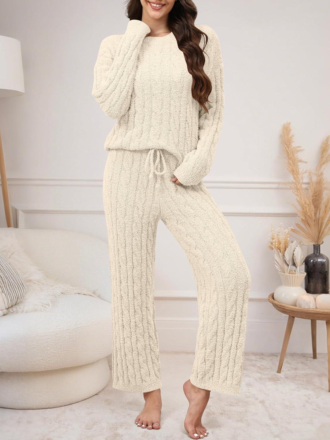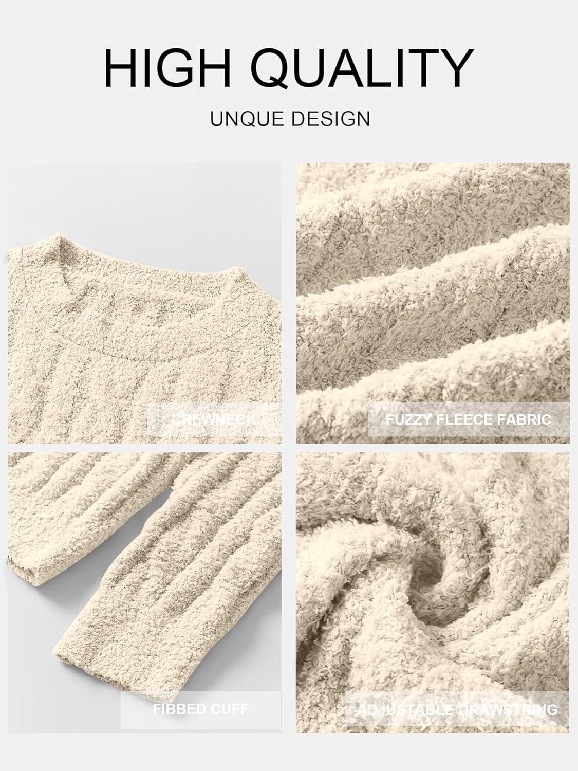 ANRABESS Women's Fuzzy Fleece Pajama Set 2 Piece Outfits Lounge Knit Oversized Sweater Pj Sets 2025 Fall Winter Loungewear(Beige)