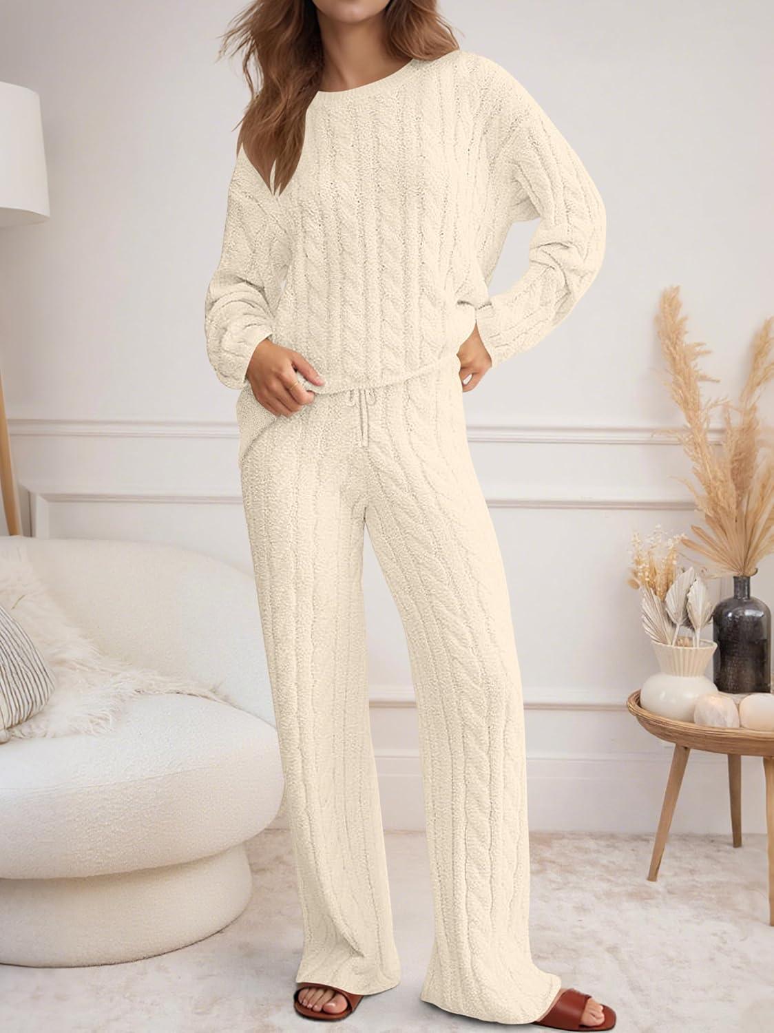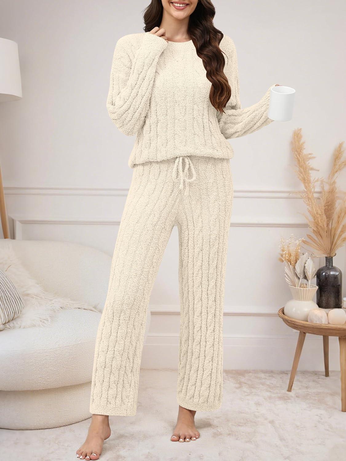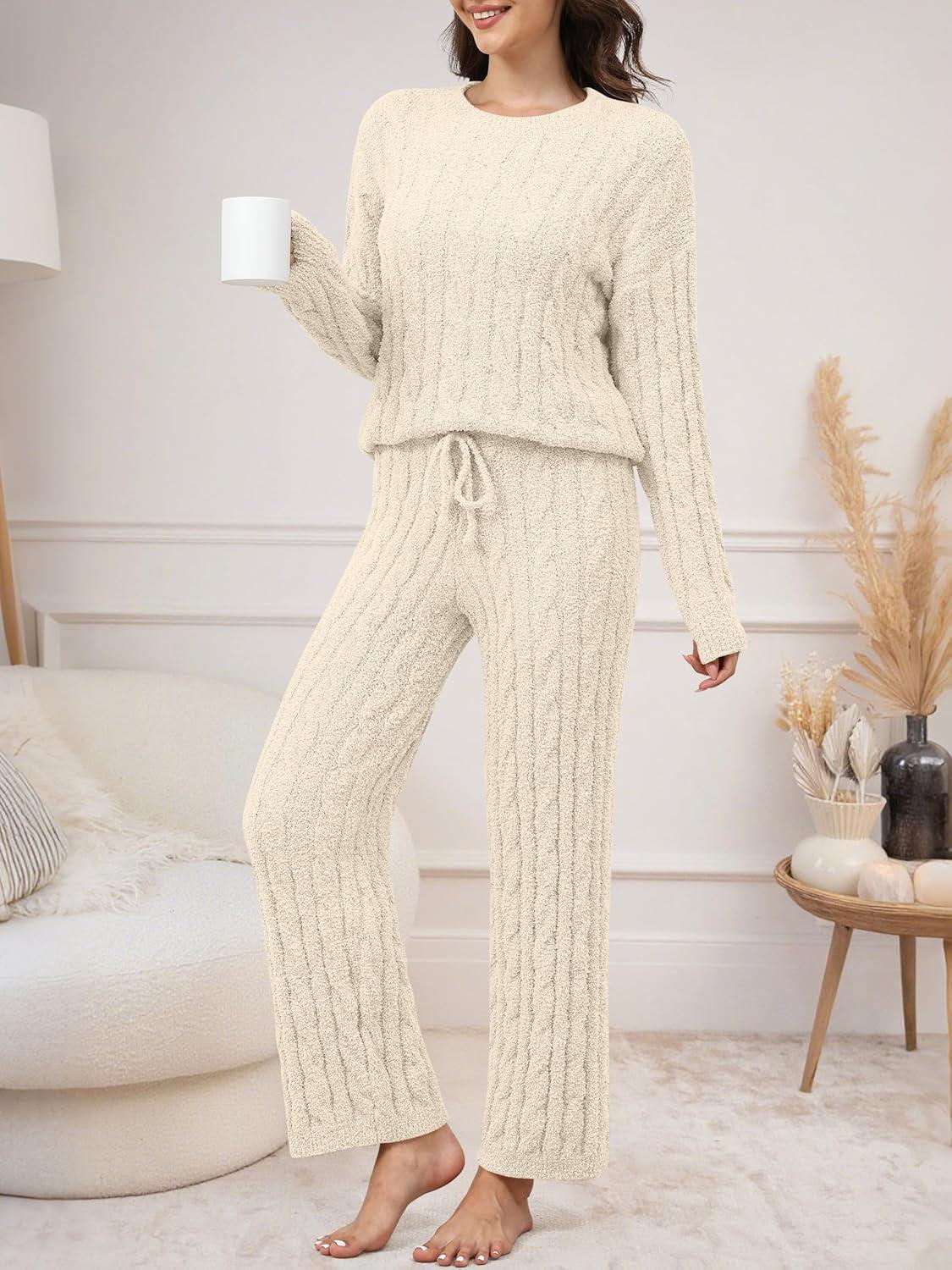 ANRABESS Women's Fuzzy Fleece Pajama Set 2 Piece Outfits Lounge Knit Oversized Sweater Pj Sets 2025 Fall Winter Loungewear(Beige)