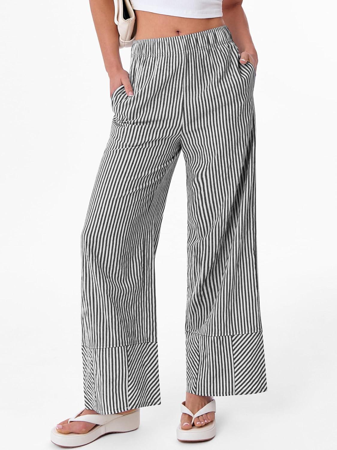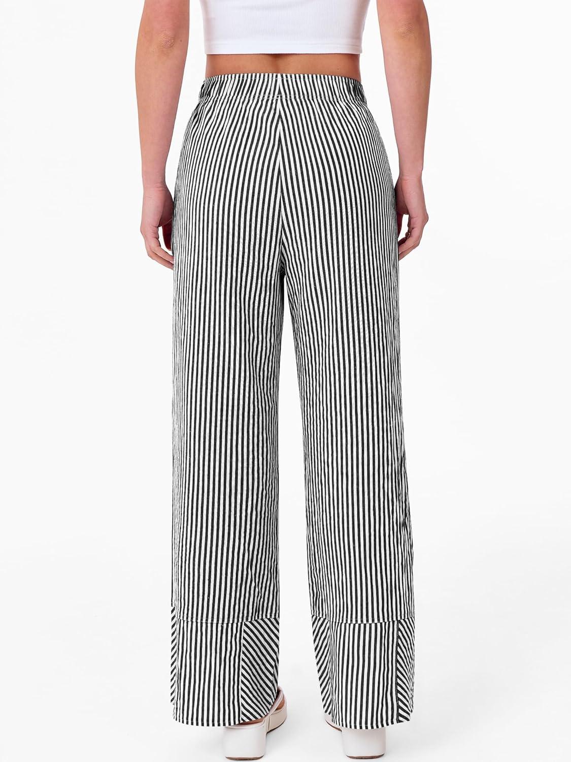 ANRABESS Womens Gingham Striped Boxer Pants Pajama Lounge PJ Bottoms Plaid Wide Leg Casual Cute Fall Trousers with Pockets(Black White Stripe)