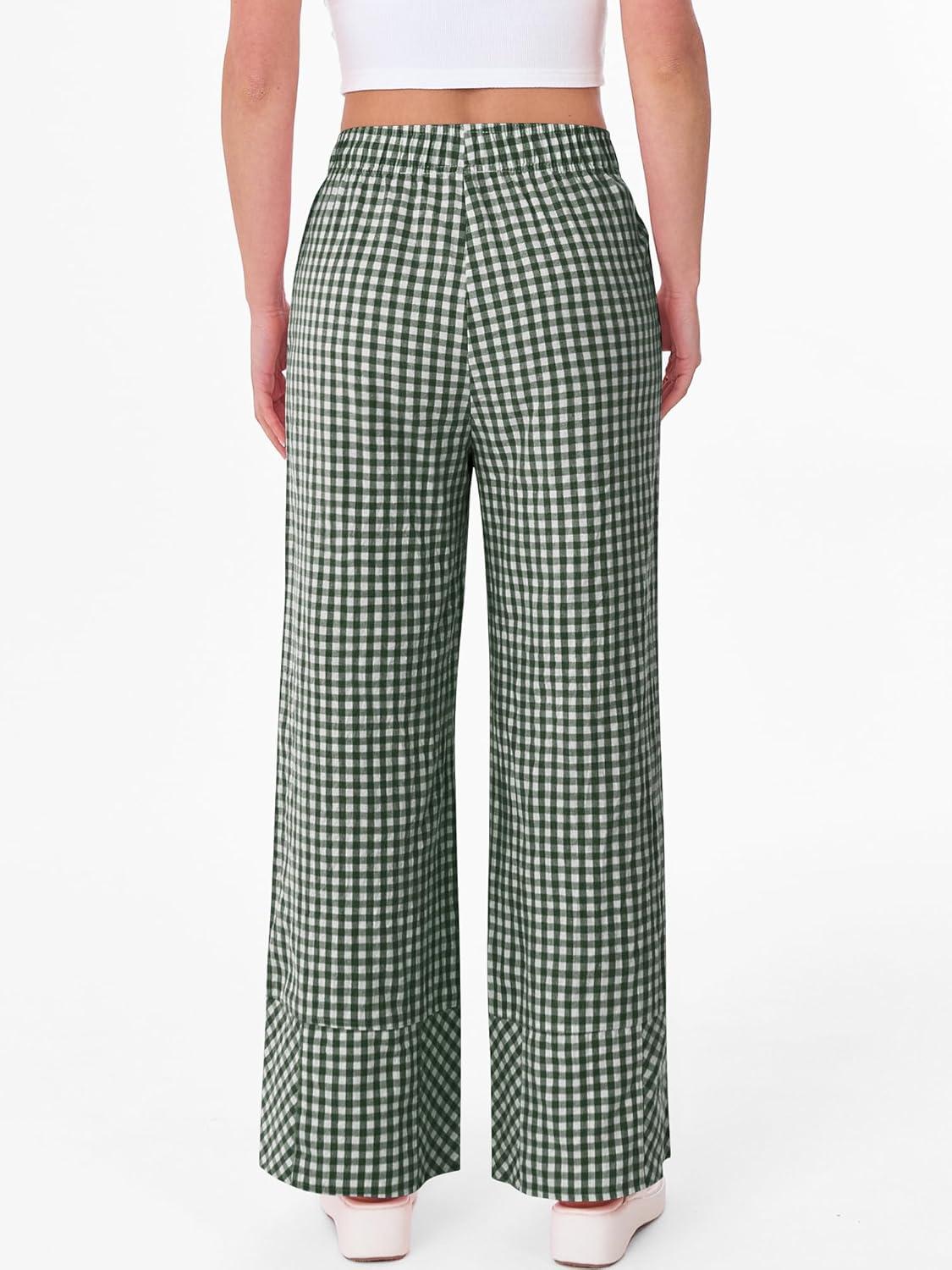 imageANRABESS Womens Gingham Striped Boxer Pants Pajama Lounge PJ Bottoms Plaid Wide Leg Casual Cute Fall Trousers with PocketsGreen White Plaid