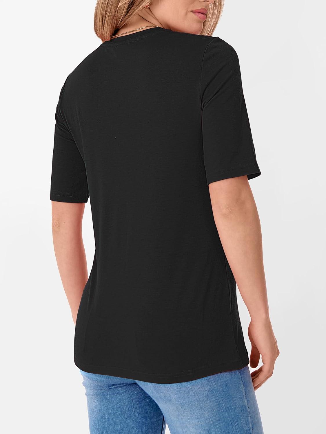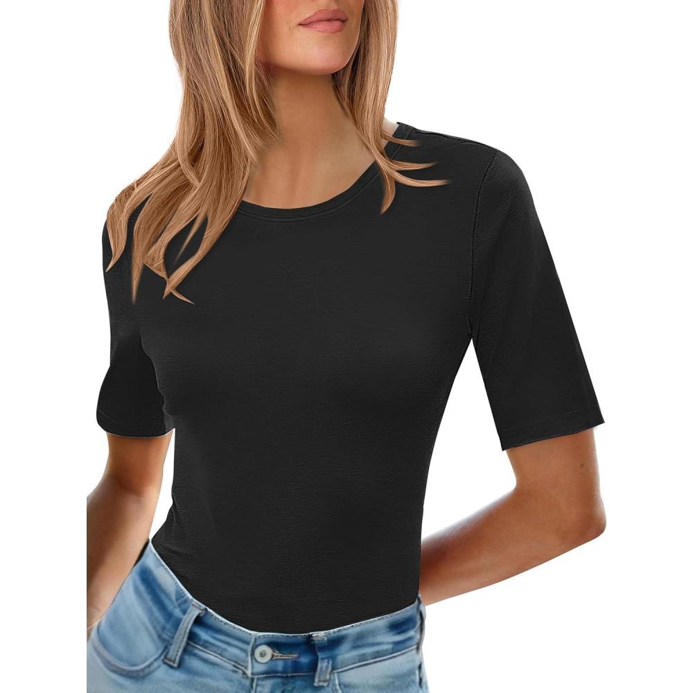 Womens Summer Basic Tees Made of 68%Polyester 27%Rayon 5%Elastane Soft Material. These Tops Have 1/2 Sleeve, Basics Feature. Perfect for Daily Wear, School, Office, Dating, Travelling, Family Gatherings, Going Out, Etc. basic tees for women/casual tops for women/womens business casual tops/womens casual tops/tee shirts womens.