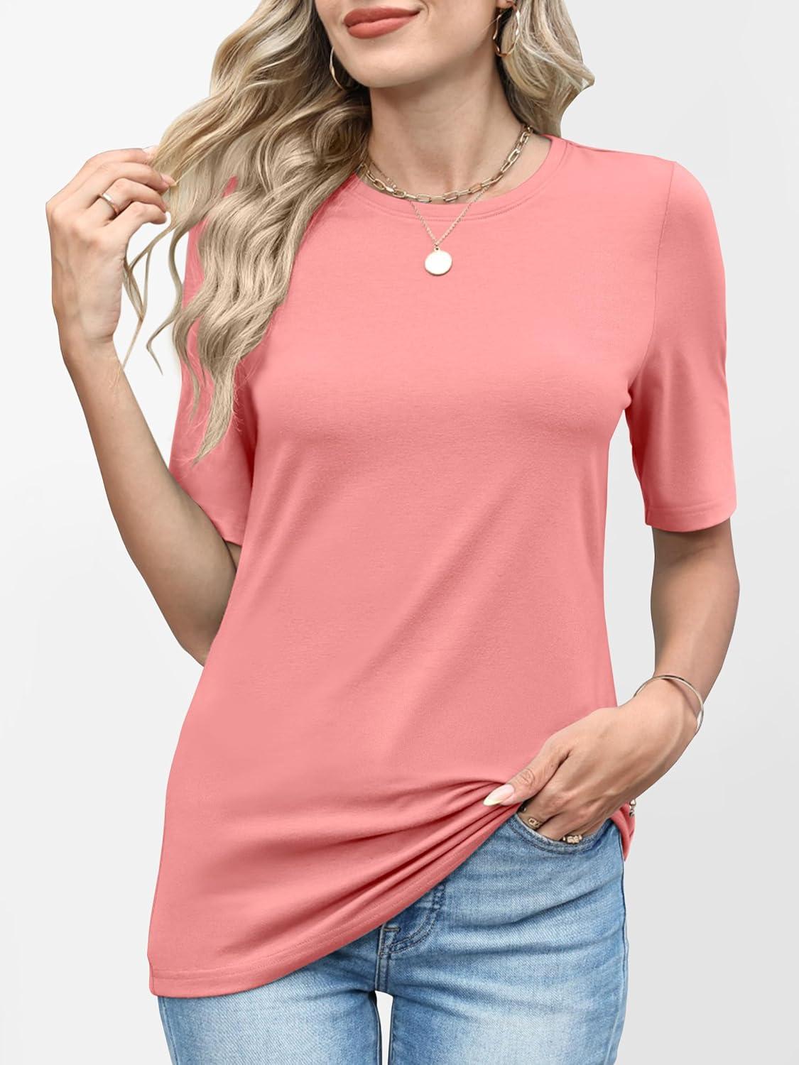 ANRABESS Womens Half Sleeve Tops Crewneck Shirts Basic Fit Tee Trendy 2026 Spring Summer Business Casual T-Shirts(Coral)