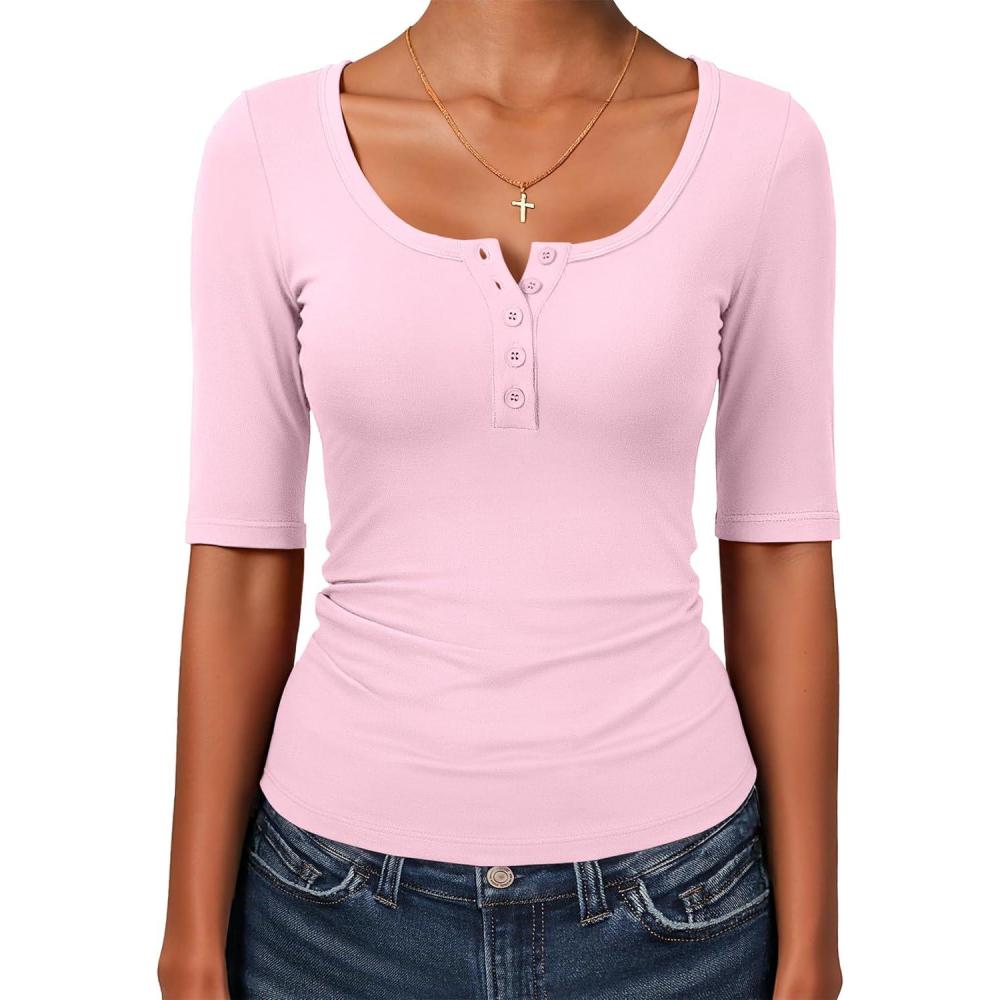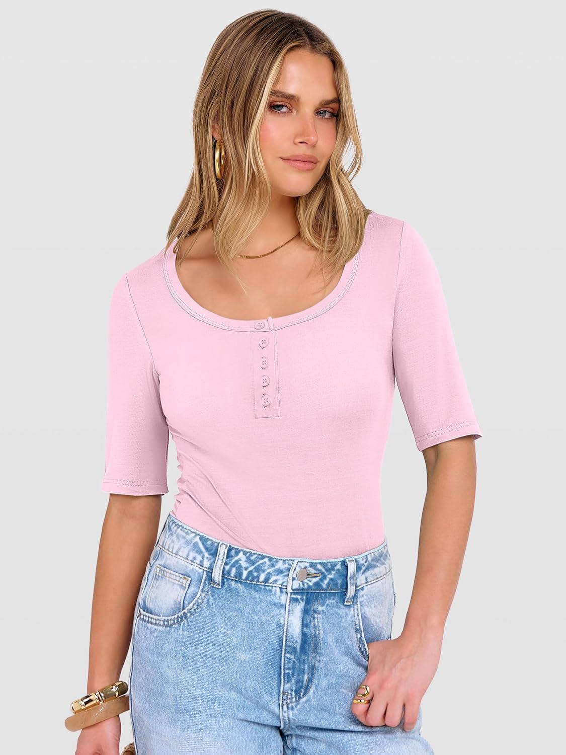 imageANRABESS Womens Half Sleeve Tops Summer Slim Fitted Henley Shirts 2026 Spring Basic Tees Dressy Casual Blouses Cute T ShirtLight Pink