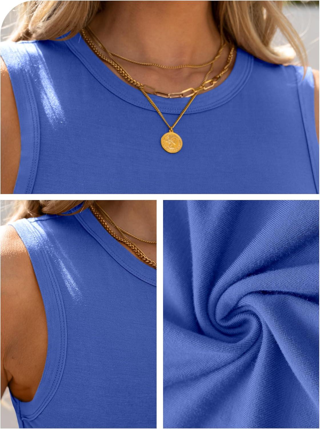 ANRABESS Womens High Neck Tank Tops Stretchy Sleeveless Racerback Sexy Slim Fit Basic Tee Shirts Y2K Trendy Summer Outfits(Blue)