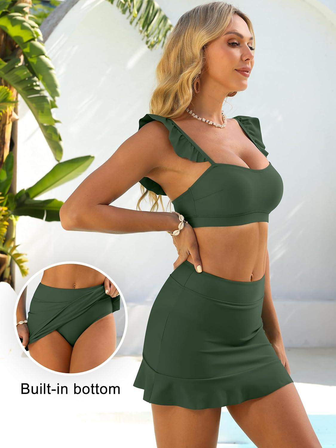 ANRABESS Womens High Waisted Bikini Skirt Set Built in Buttom Two Piece Swimsuits 2026 Summer Beach Bathing Suit Swimwear(Army Green)