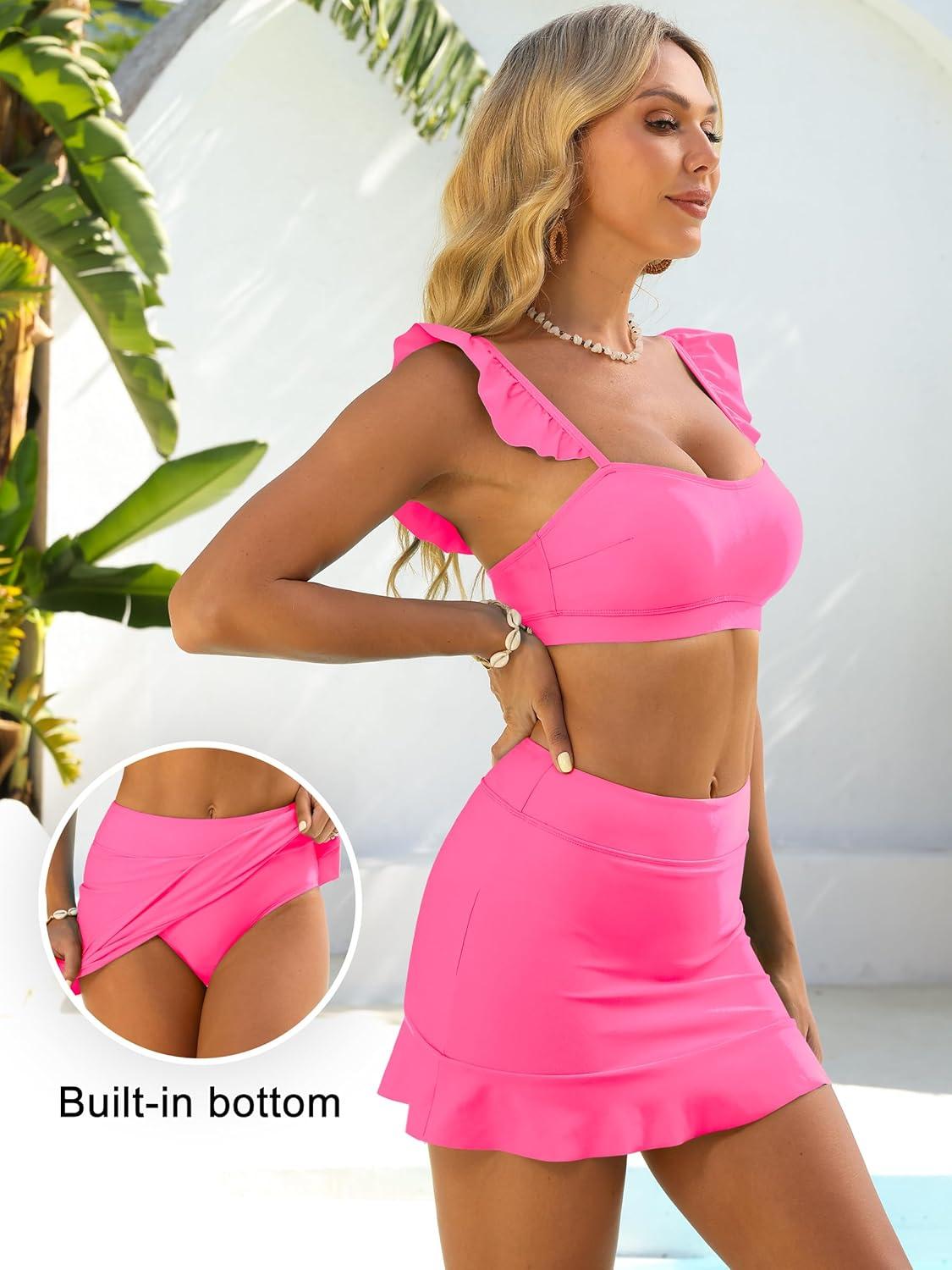 ANRABESS Womens High Waisted Bikini Skirt Set Built in Buttom Two Piece Swimsuits 2026 Summer Beach Bathing Suit Swimwear(Light Pink)