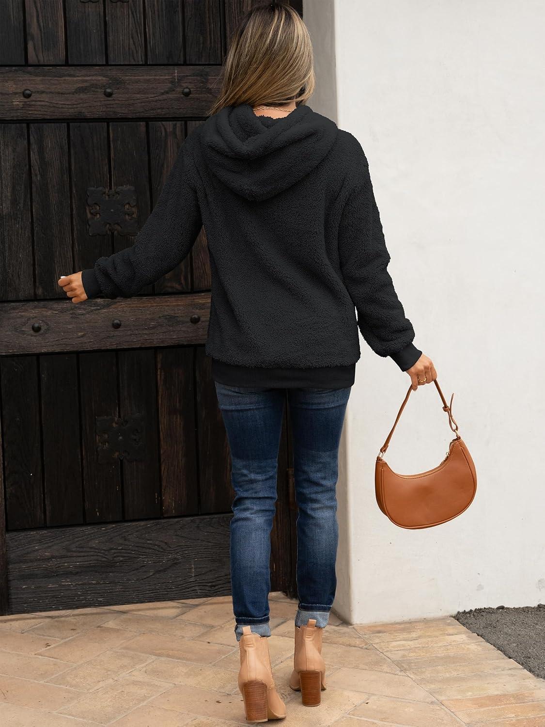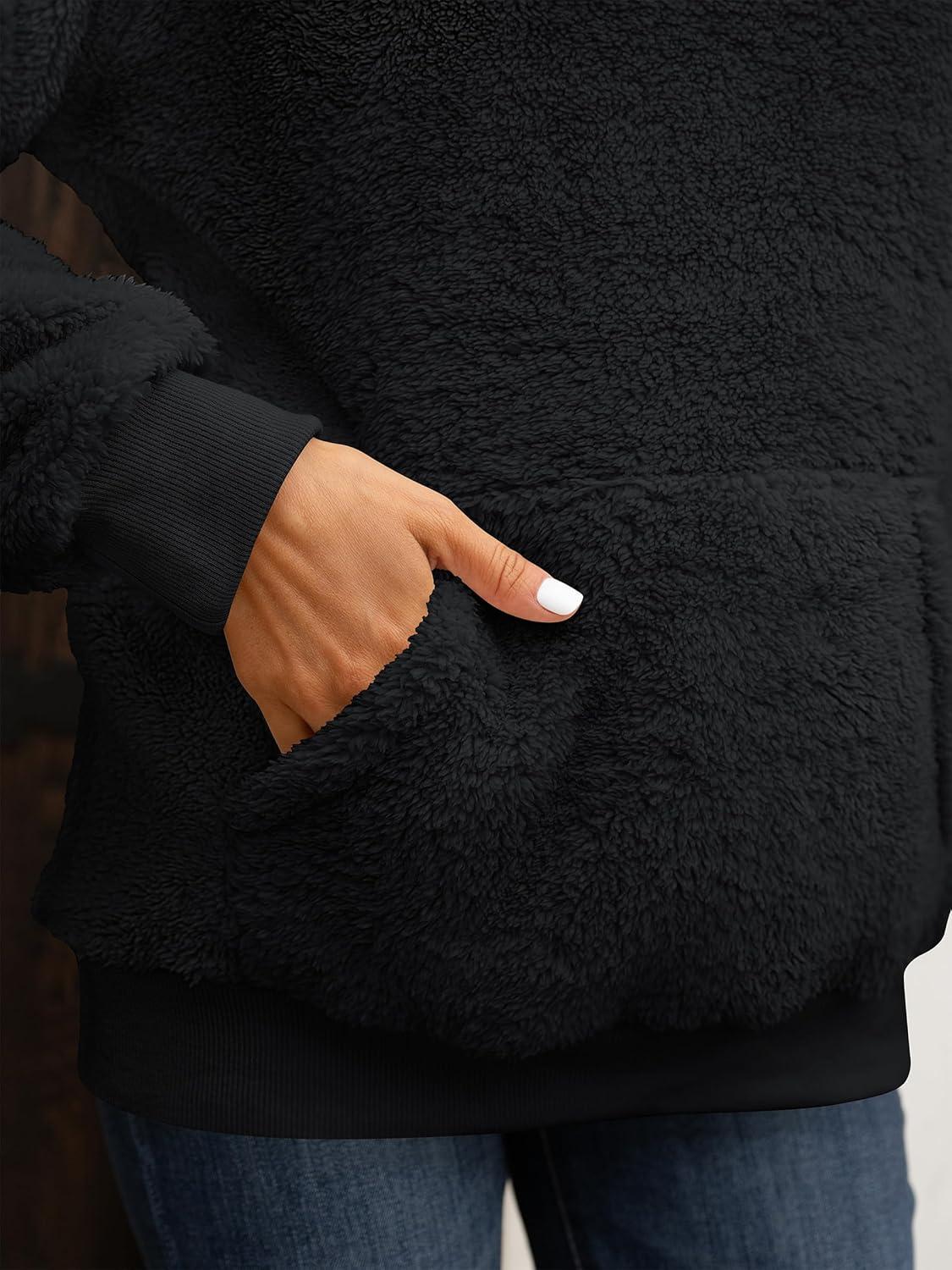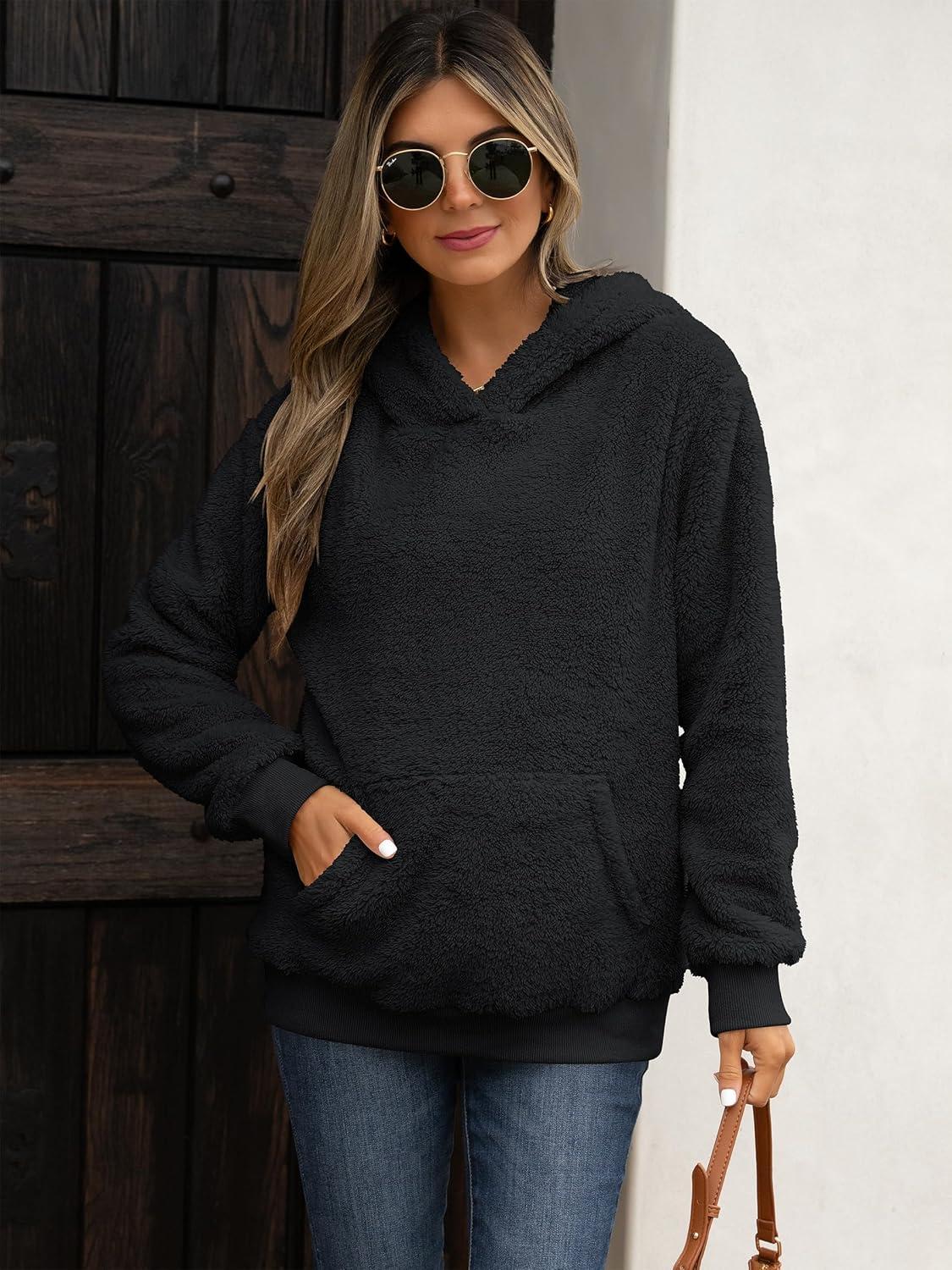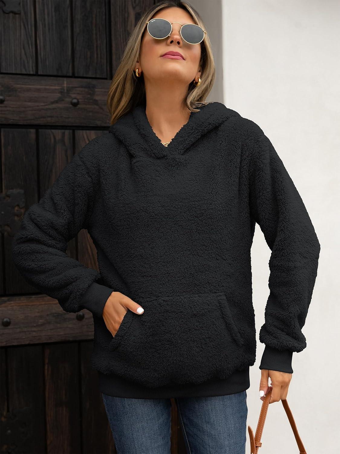 ANRABESS Womens Hoodies Fleece Sherpa Sweatshirt 2025 Fall Loose Double Fuzzy Cozy Fluffy Warm Winter Pullover with Pocket(Black)