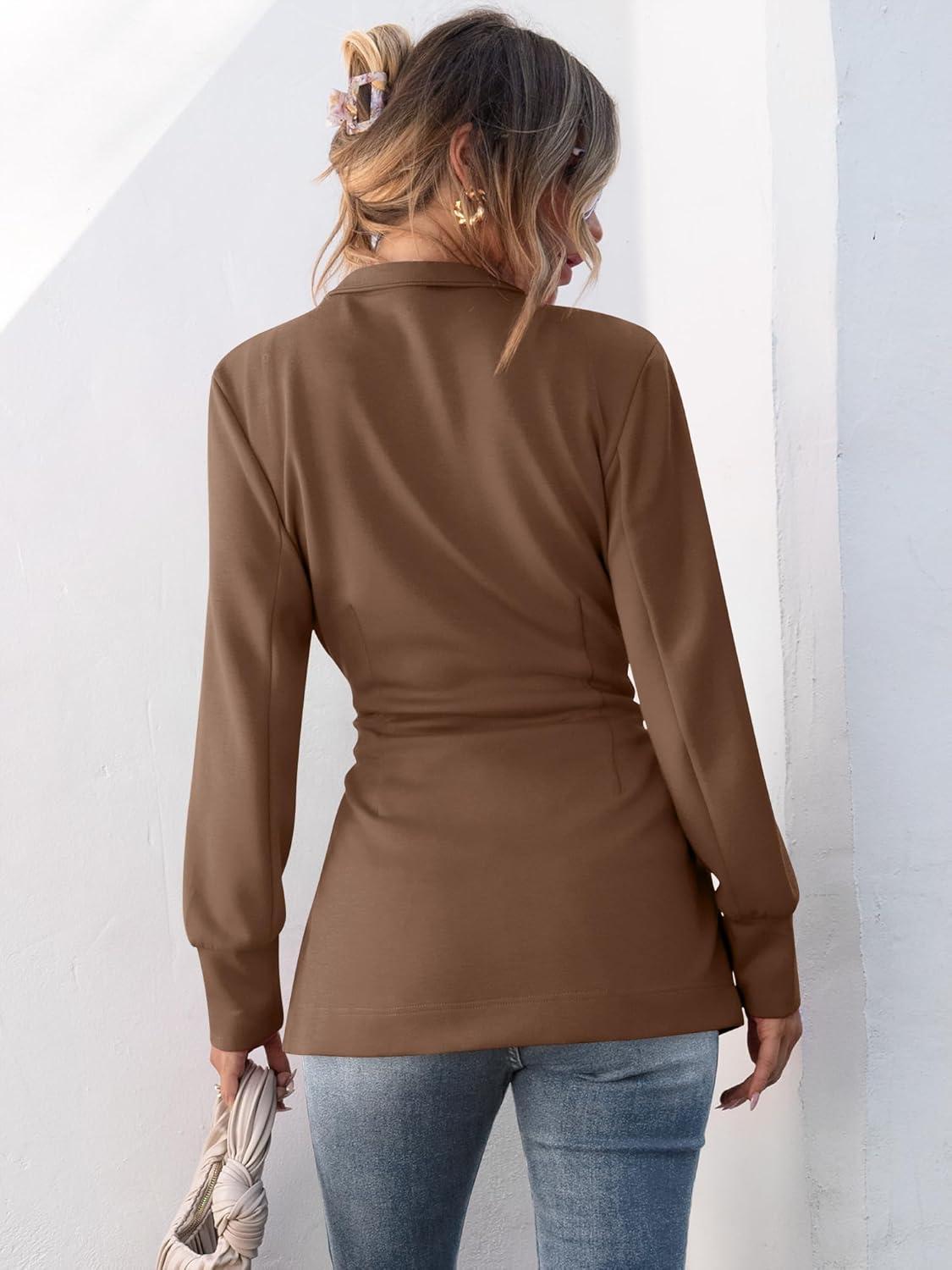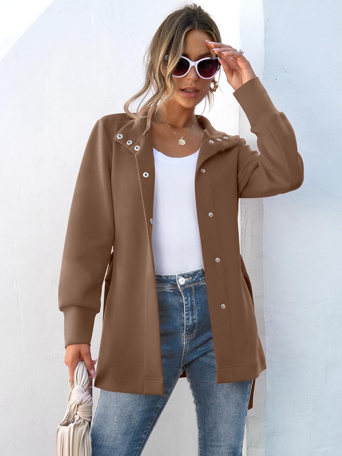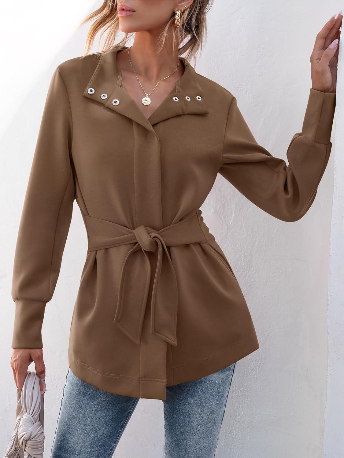 ANRABESS Women's Jacket Belted Long Sleeve Wrap Trench Coat 2025 Fall Winter Casual Dressy Travel Outerwear with Pockets(Brown)
