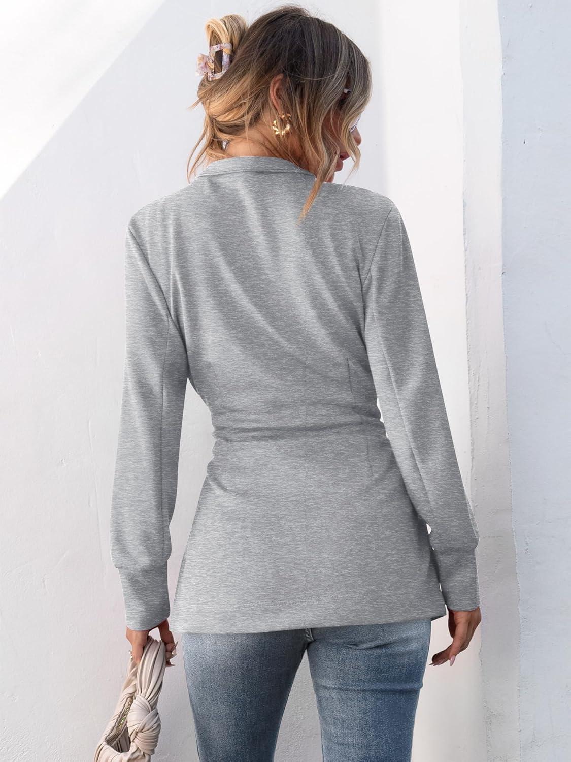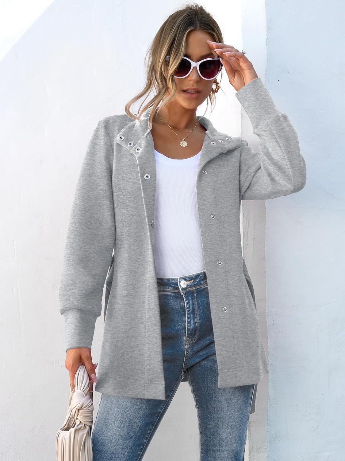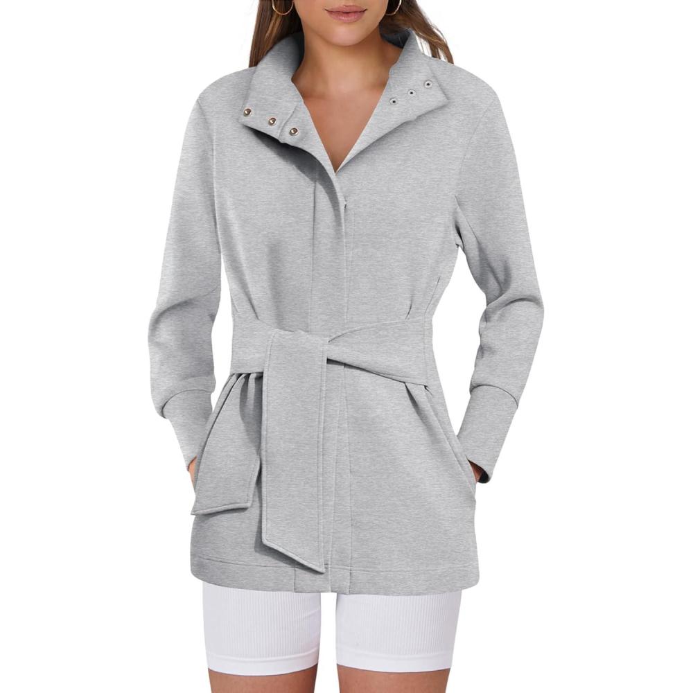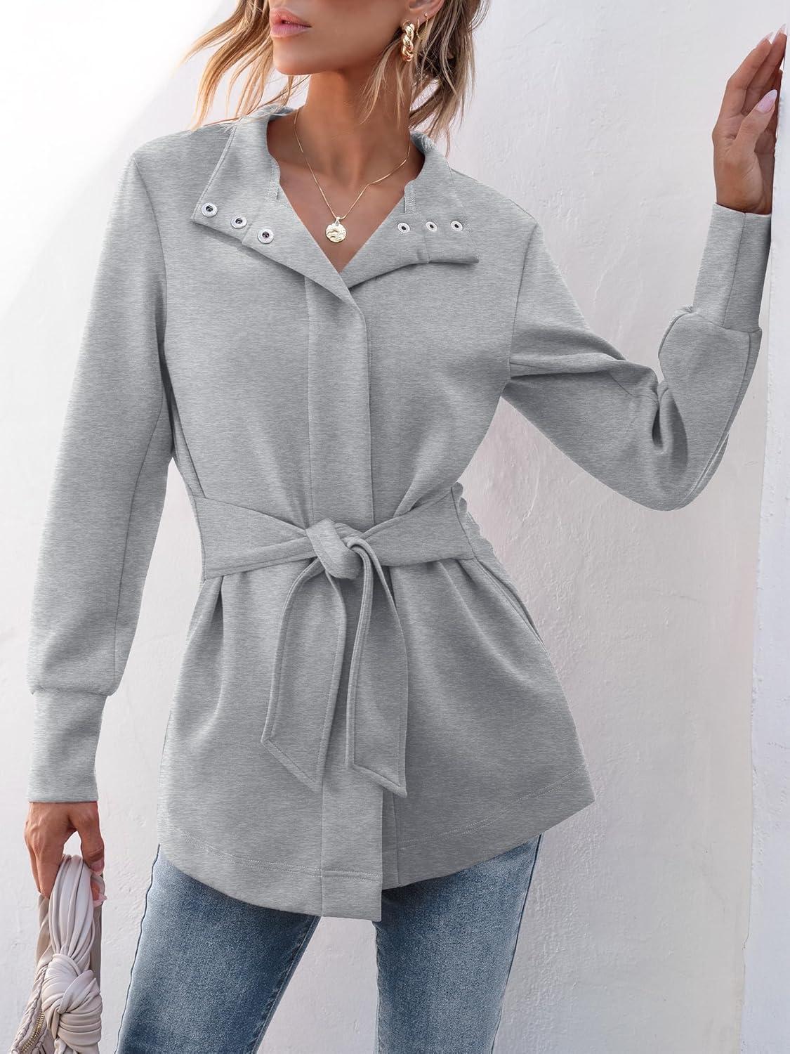 ANRABESS Women's Jacket Belted Long Sleeve Wrap Trench Coat 2025 Fall Winter Casual Dressy Travel Outerwear with Pockets(Light Grey)