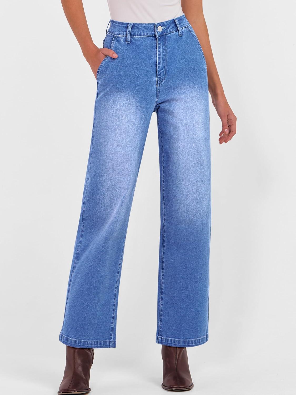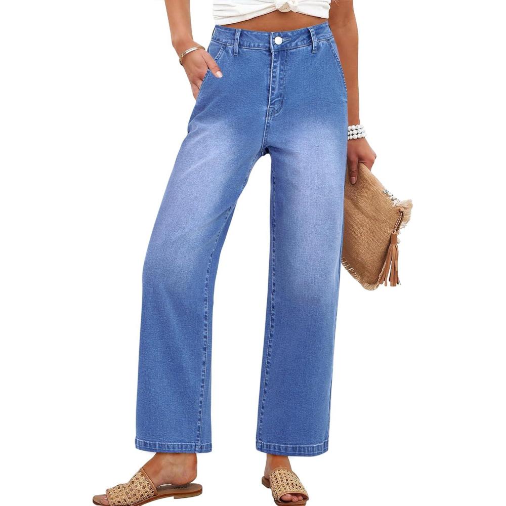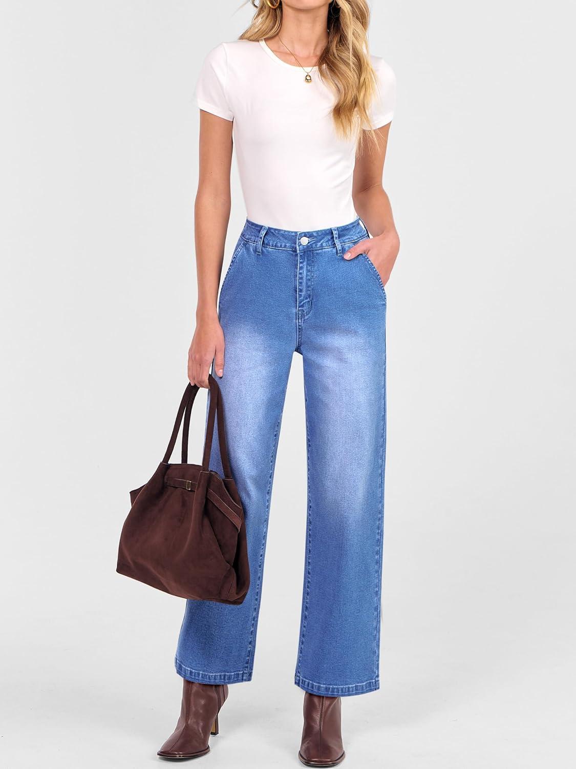 ANRABESS Womens Jeans High Waist Straight Leg Stretchy Ankle Length Denim Pants with Pockets(Classic Blue)