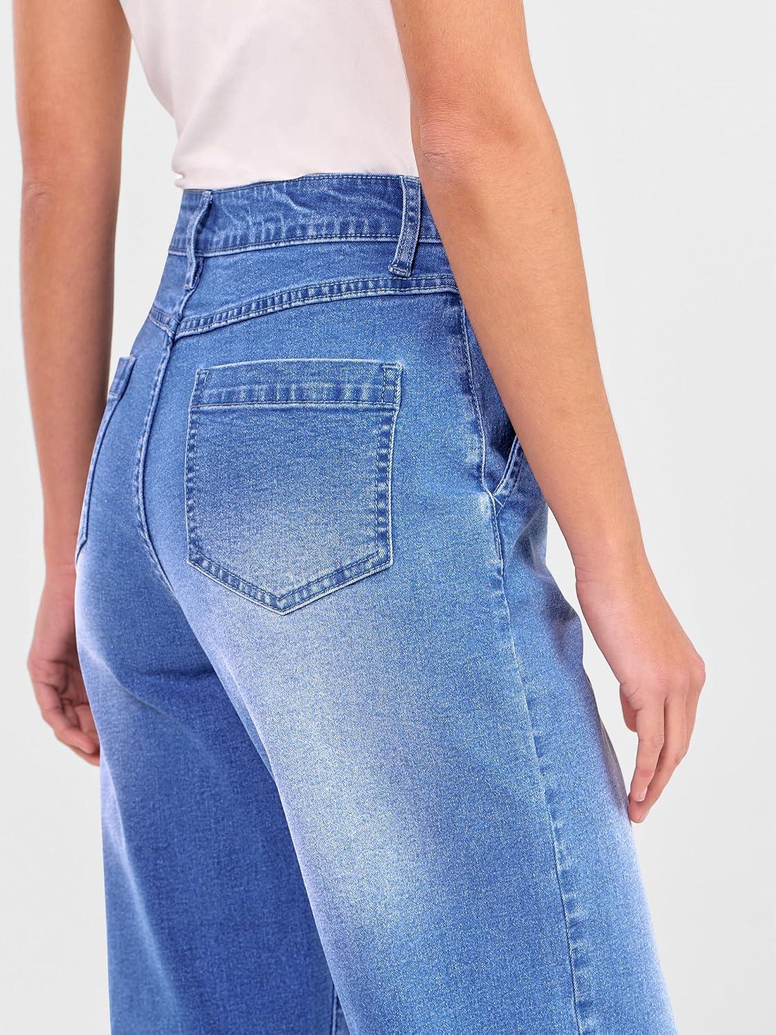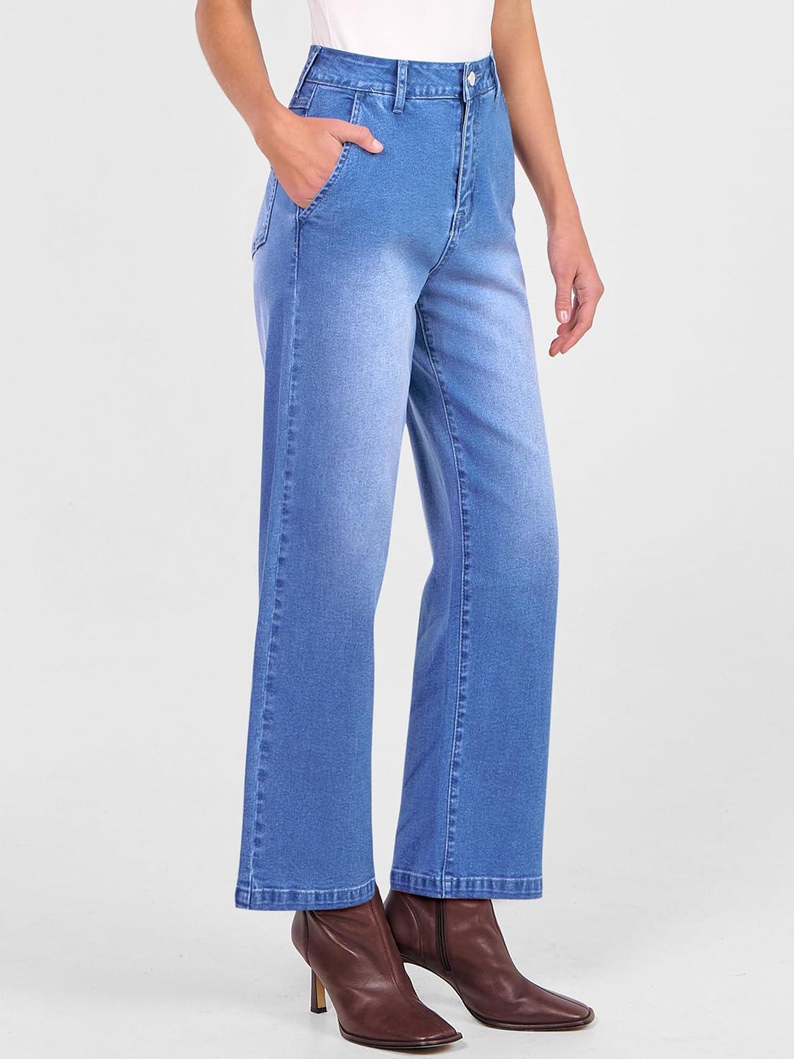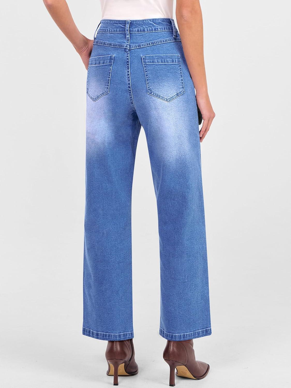 ANRABESS Womens Jeans High Waist Straight Leg Stretchy Ankle Length Denim Pants with Pockets(Classic Blue)
