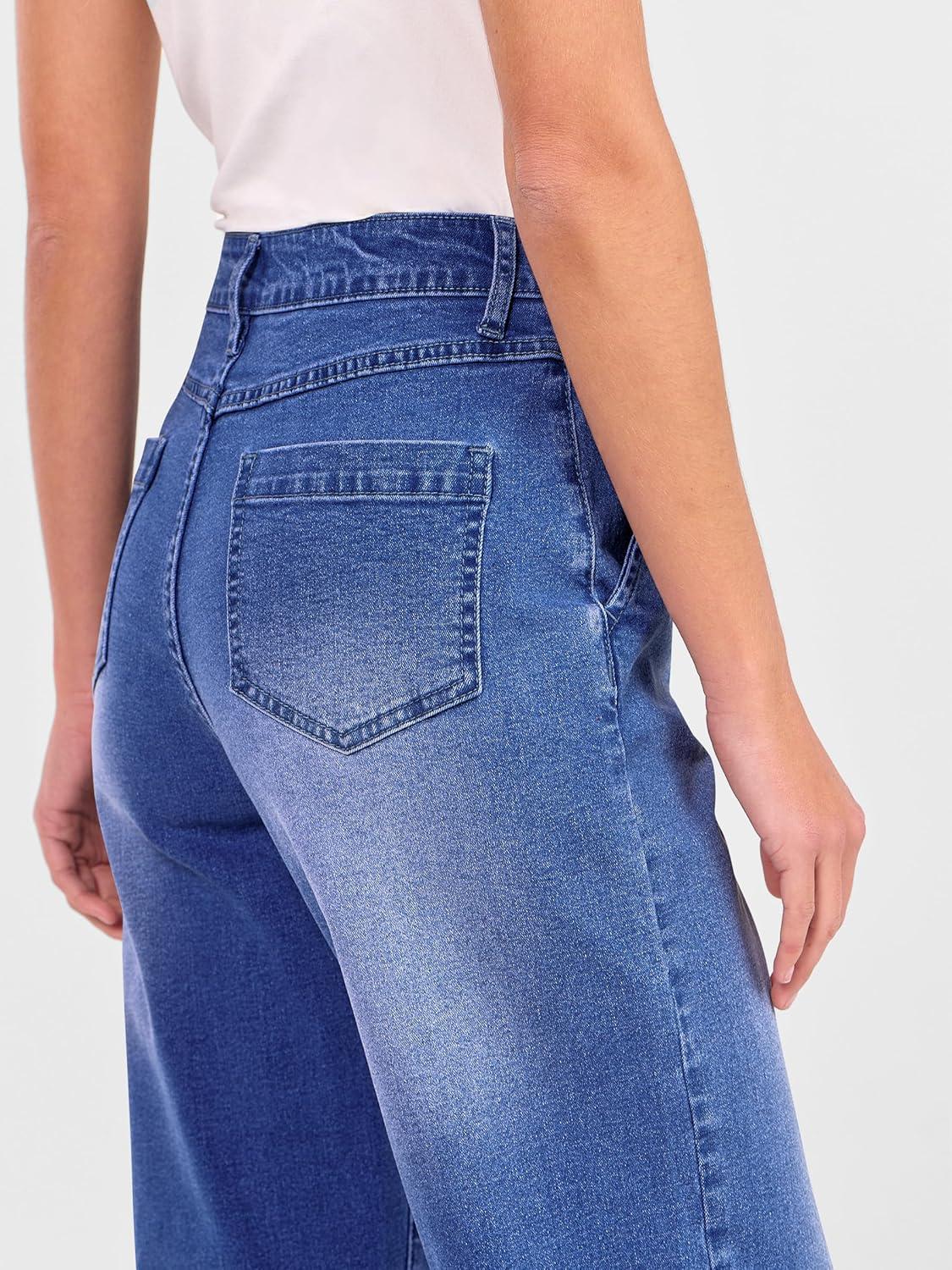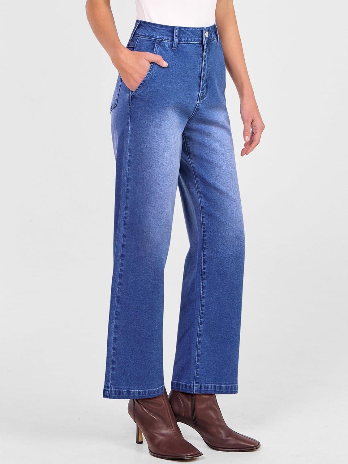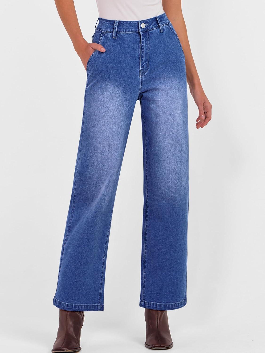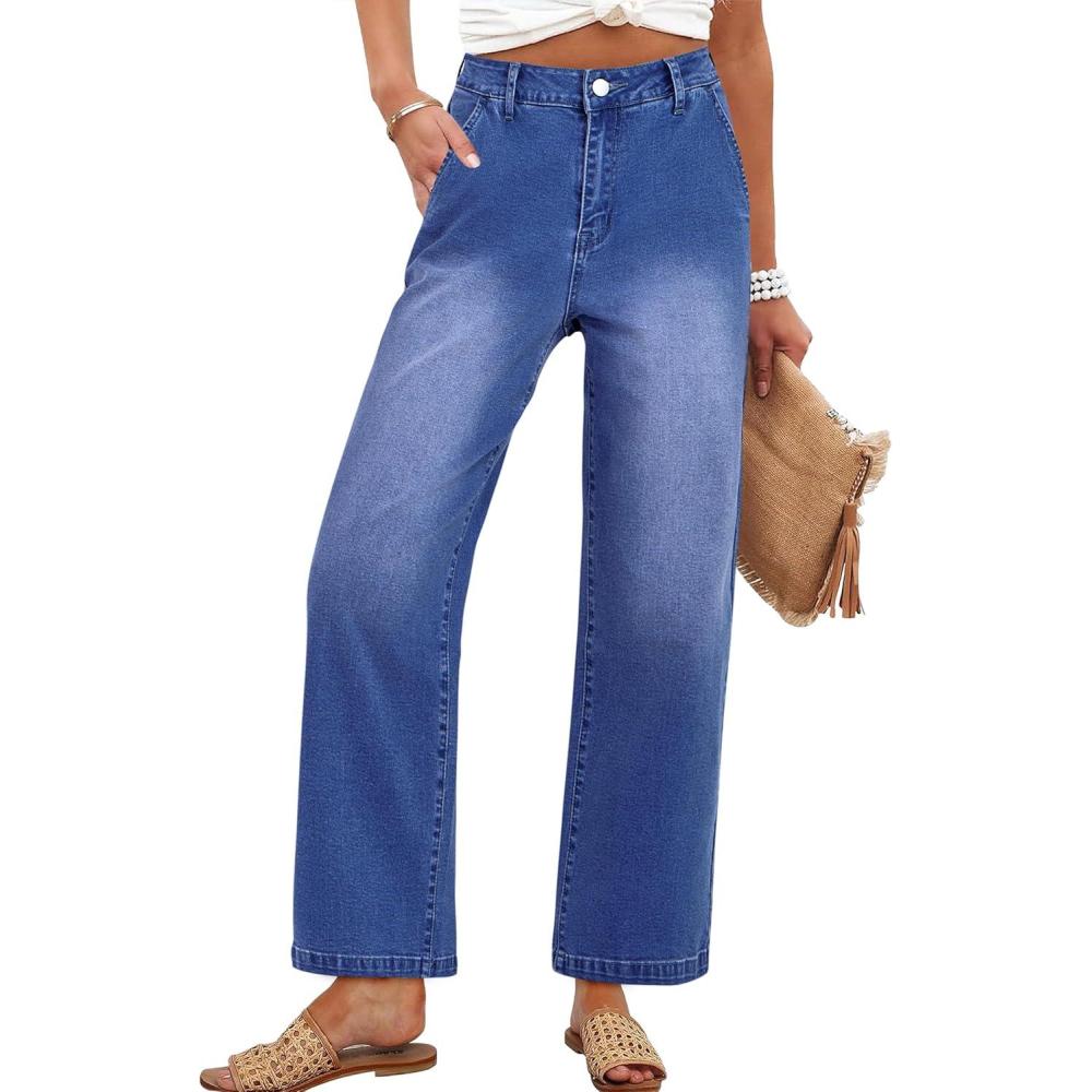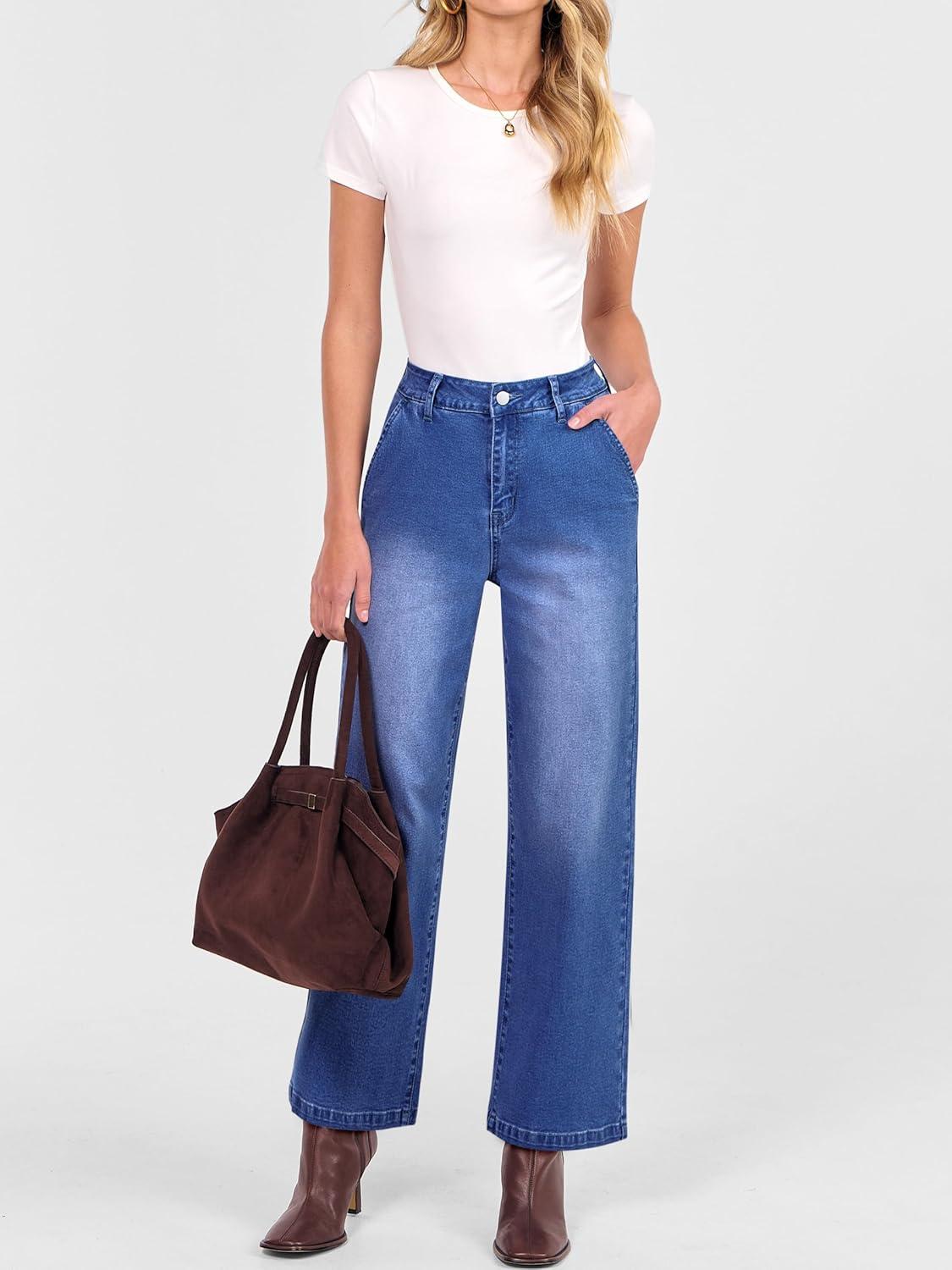 ANRABESS Womens Jeans High Waist Straight Leg Stretchy Ankle Length Denim Pants with Pockets(Classic Blue)