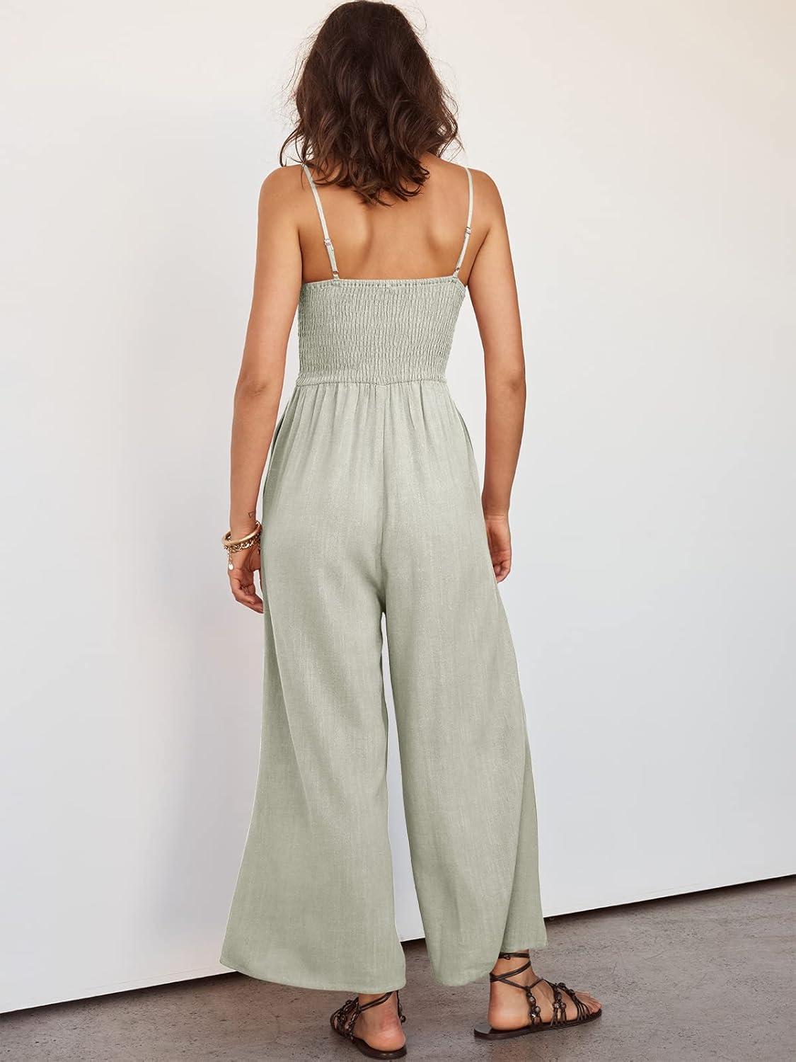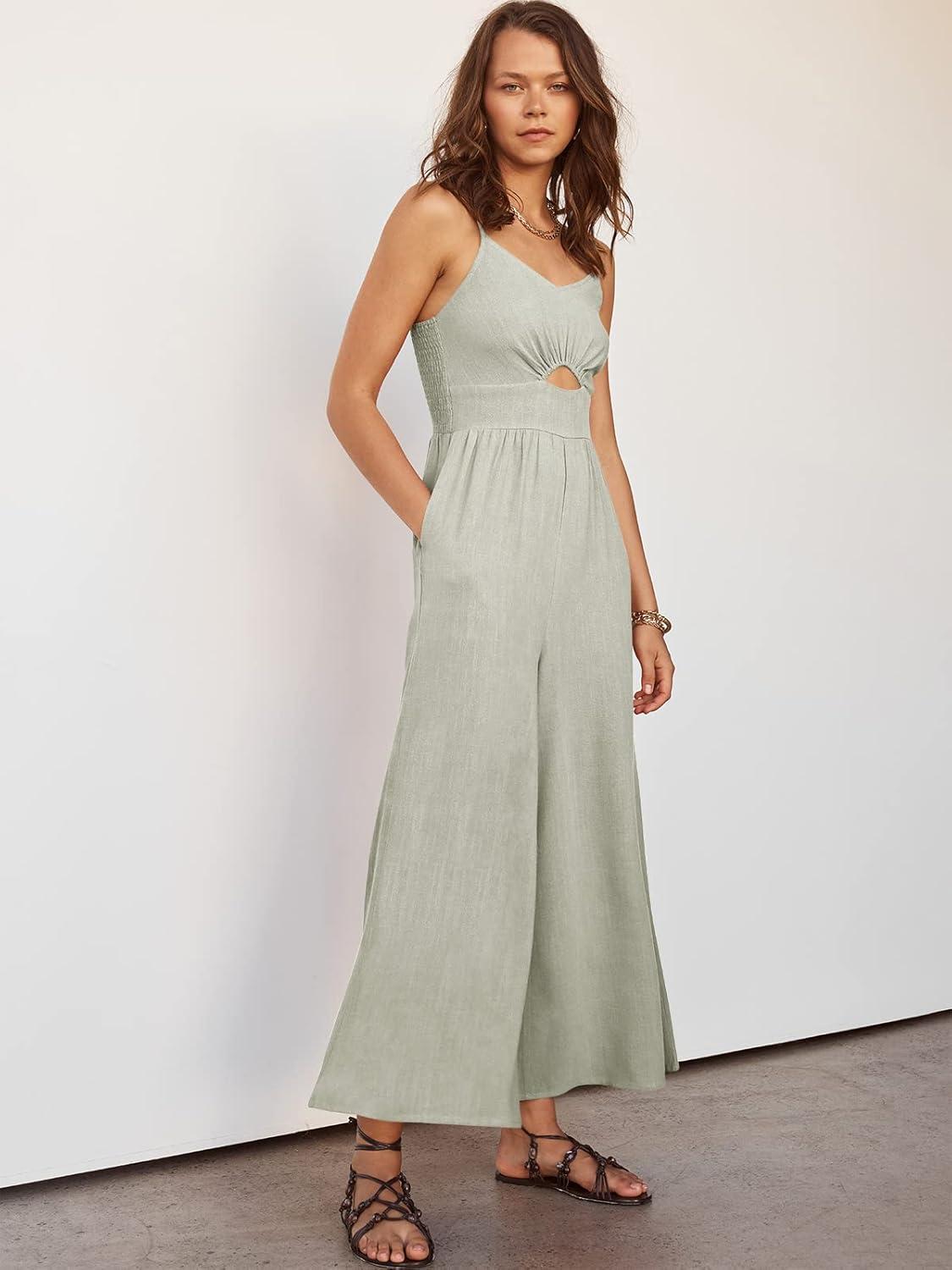 imageANRABESS Womens Jumpsuit Summer Beach Vacation Romper 2025 V Neck Sleevelsee Spaghetti Strap Cutout Linen Wide Leg ClothesForest