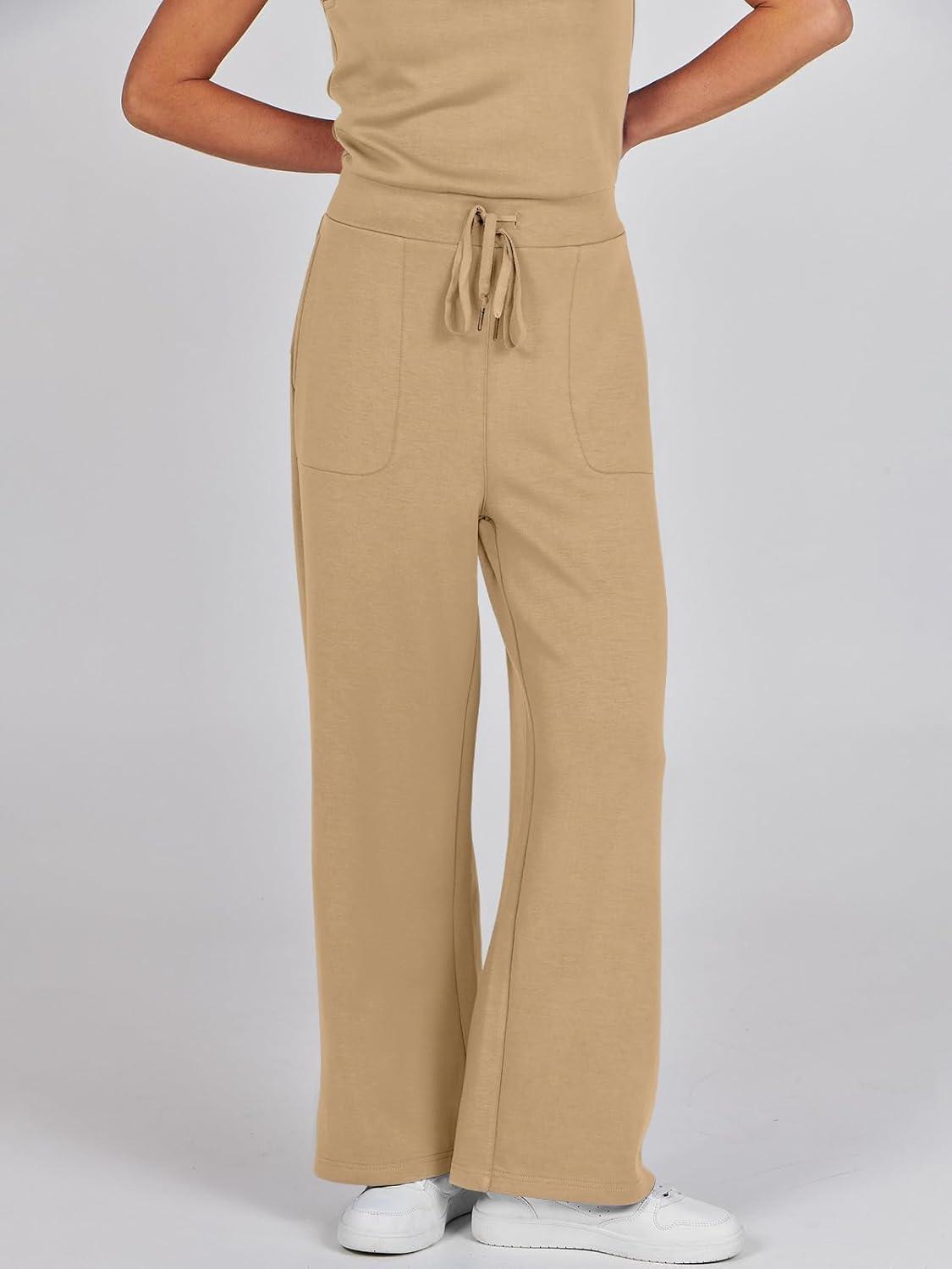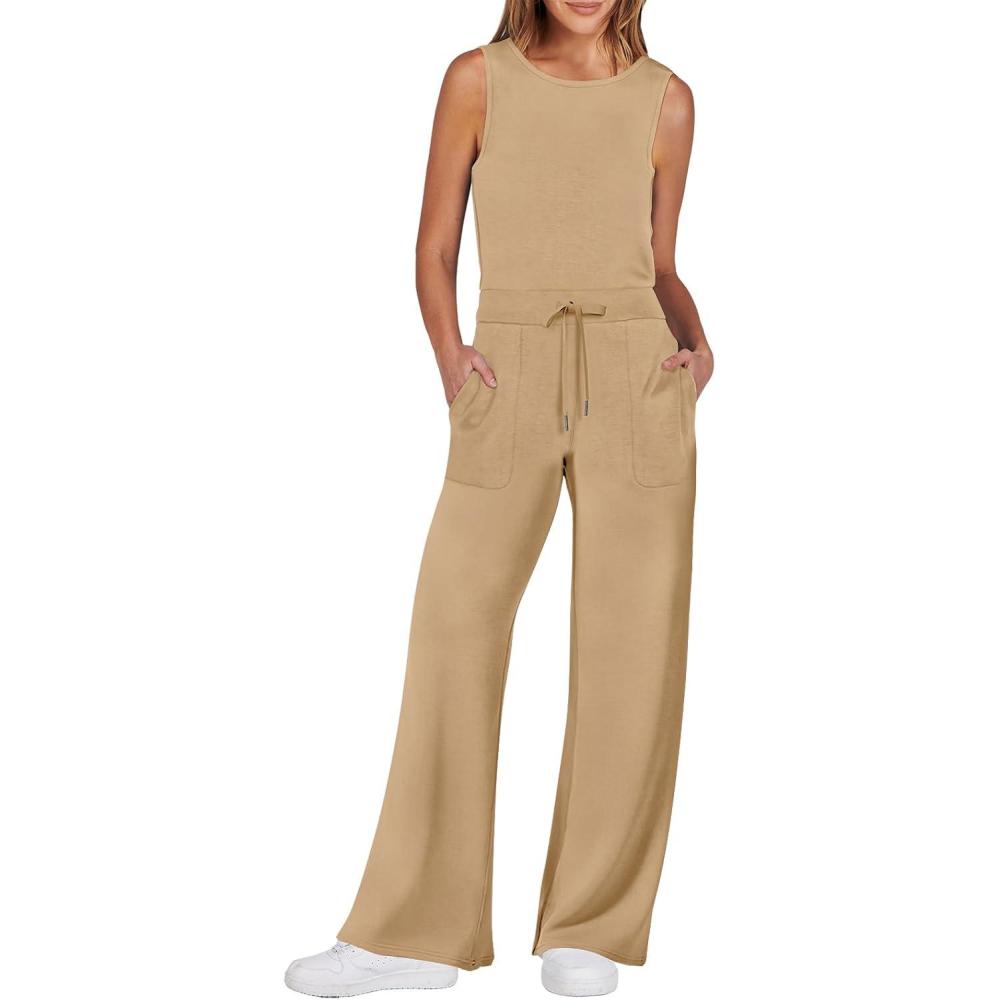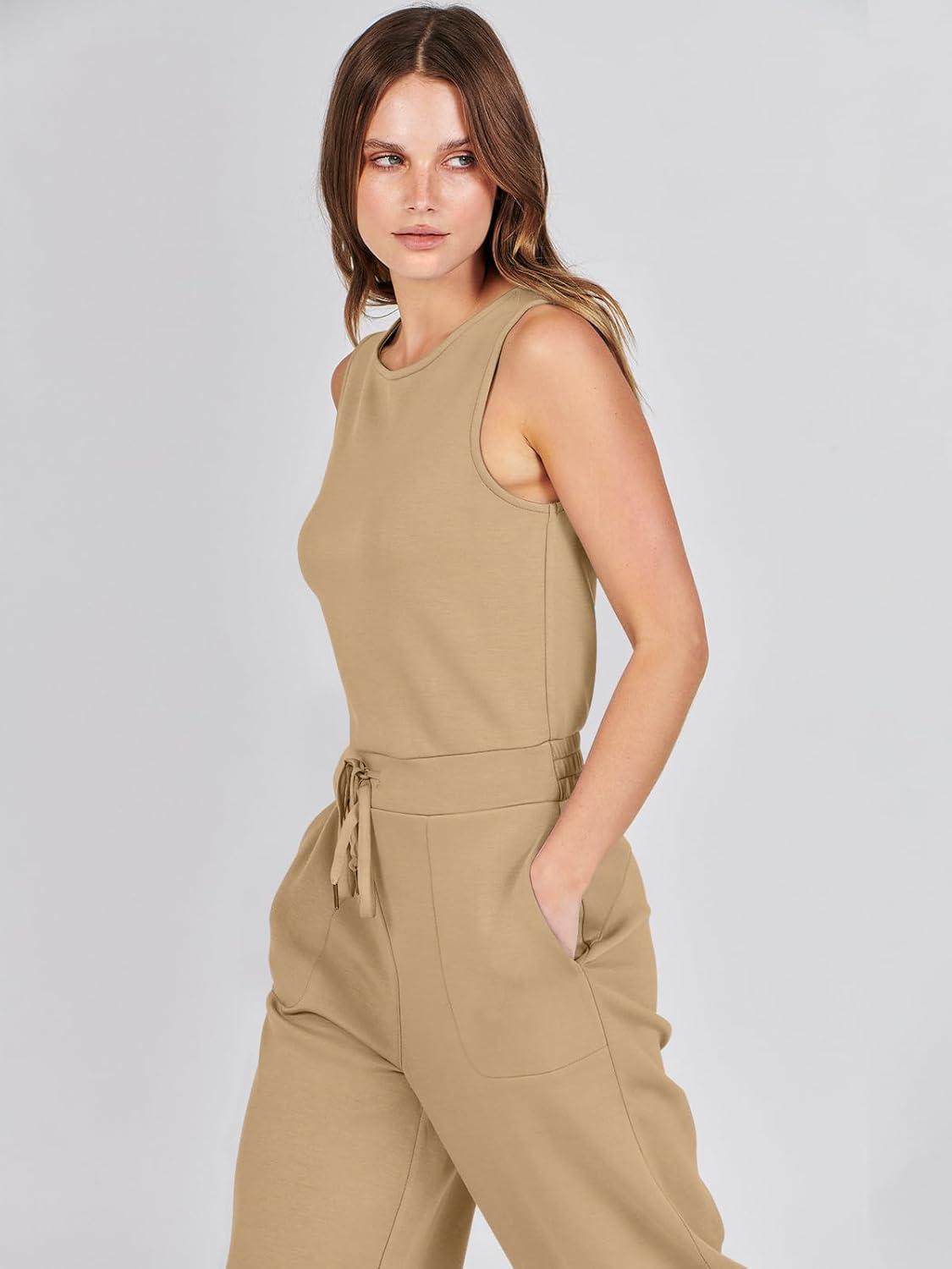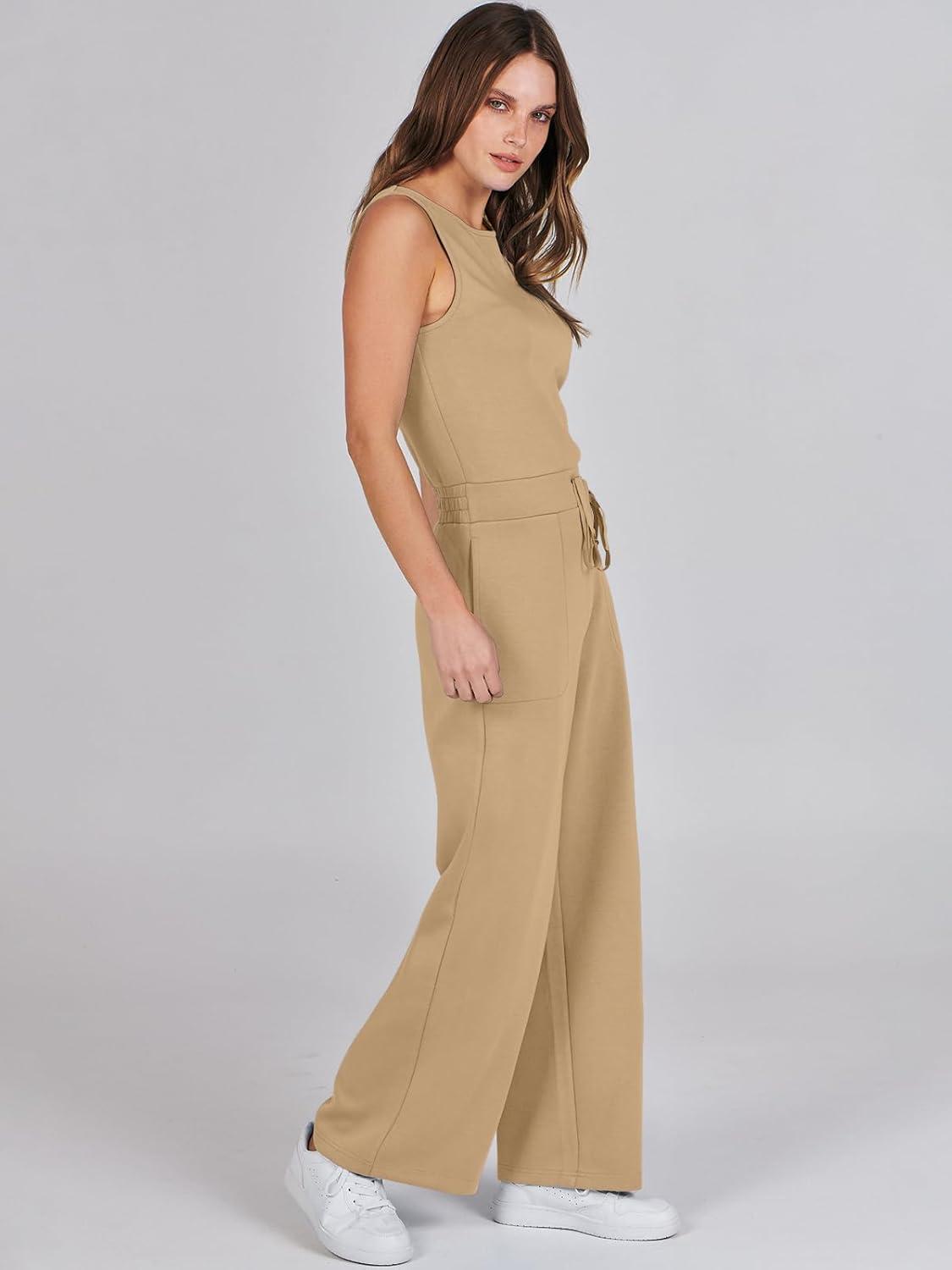 ANRABESS Womens Jumpsuits 2025 Spring Fall Thick Casual Romper Sleeveless Wide Leg Pants One Piece Outfits Vacation Clothes(Light Khaki)