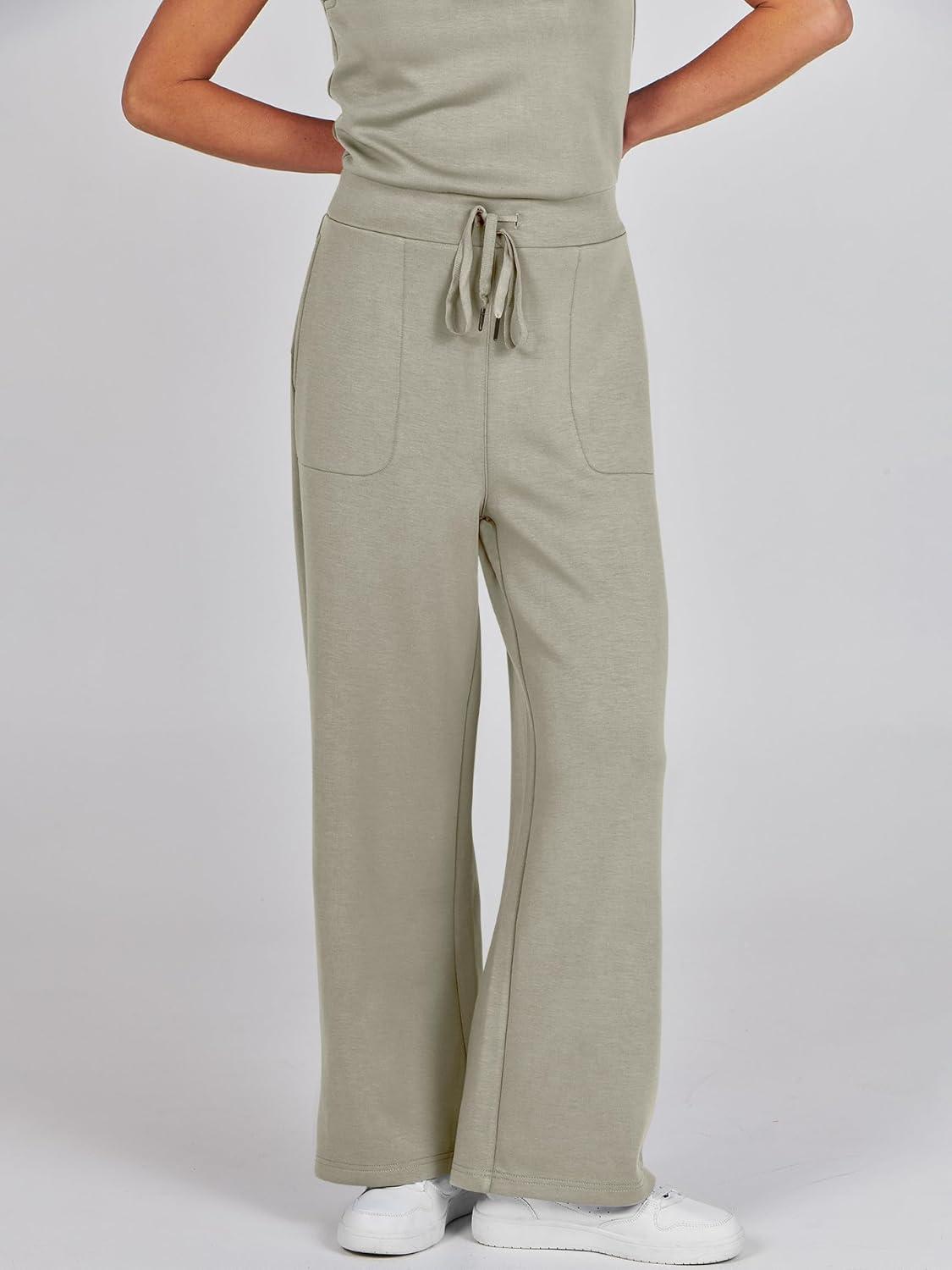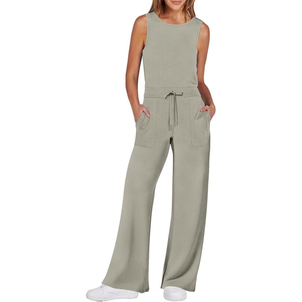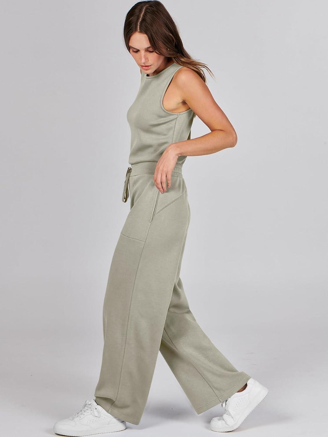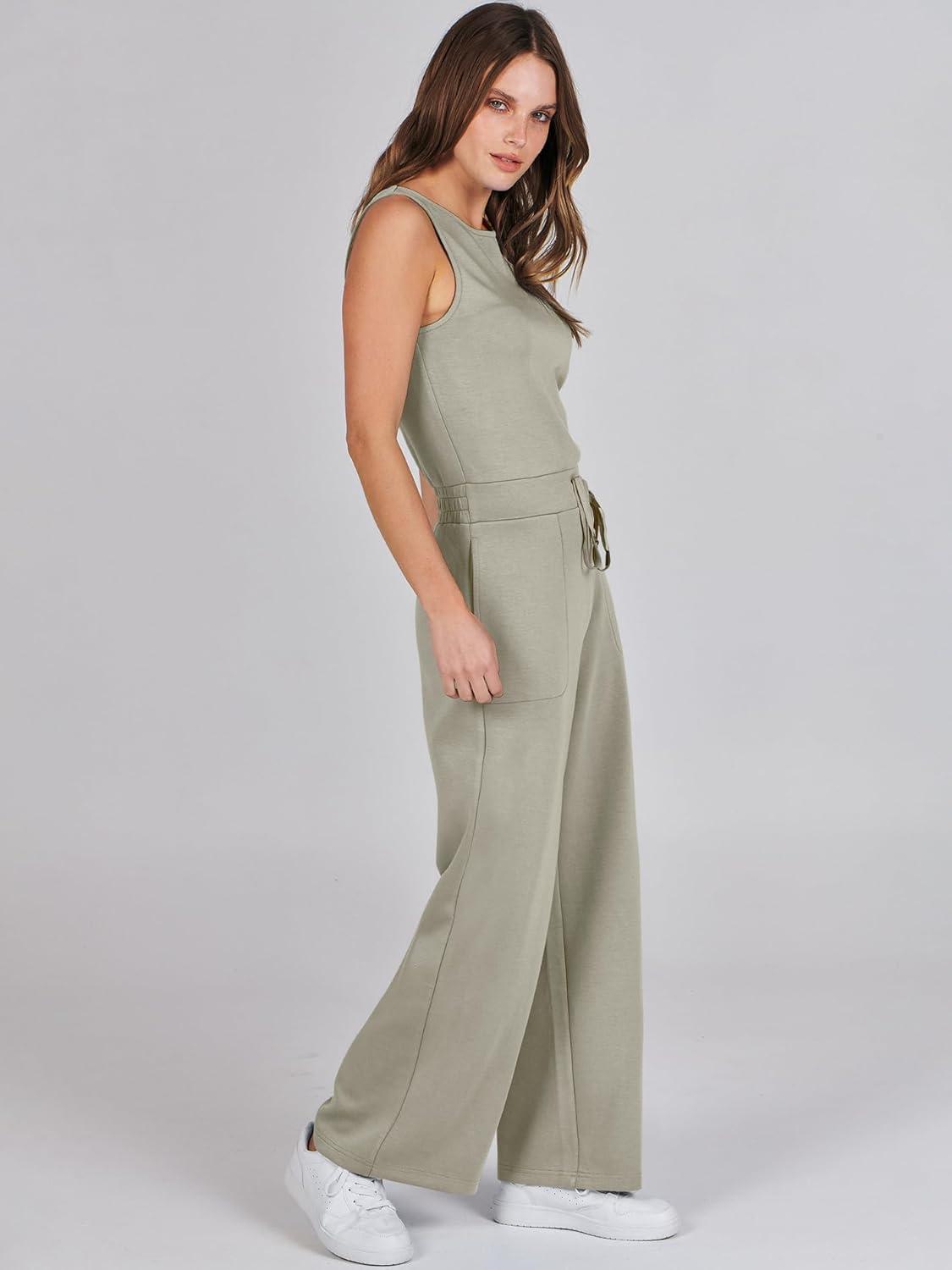 ANRABESS Womens Jumpsuits 2025 Spring Fall Thick Casual Romper Sleeveless Wide Leg Pants One Piece Outfits Vacation Clothes(Light Khaki)