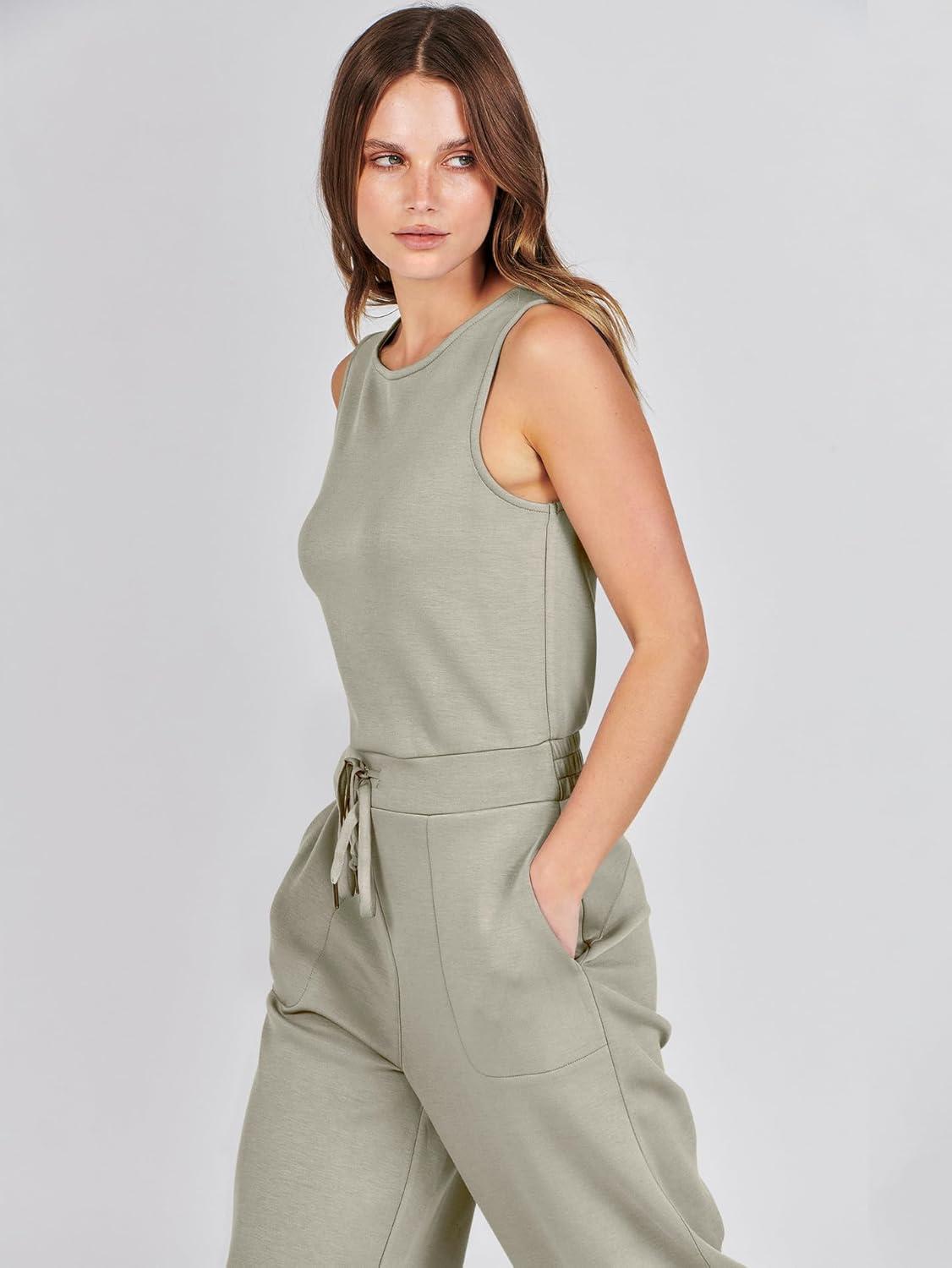 imageANRABESS Womens Jumpsuits 2025 Spring Fall Thick Casual Romper Sleeveless Wide Leg Pants One Piece Outfits Vacation ClothesLight Khaki