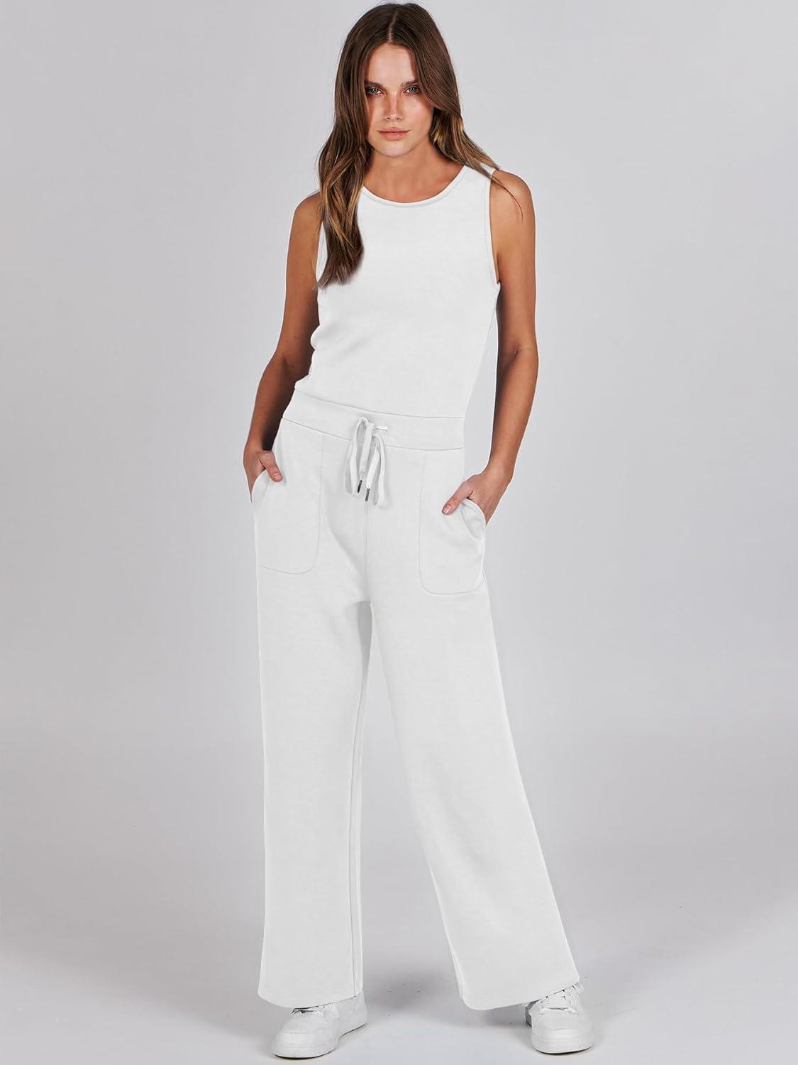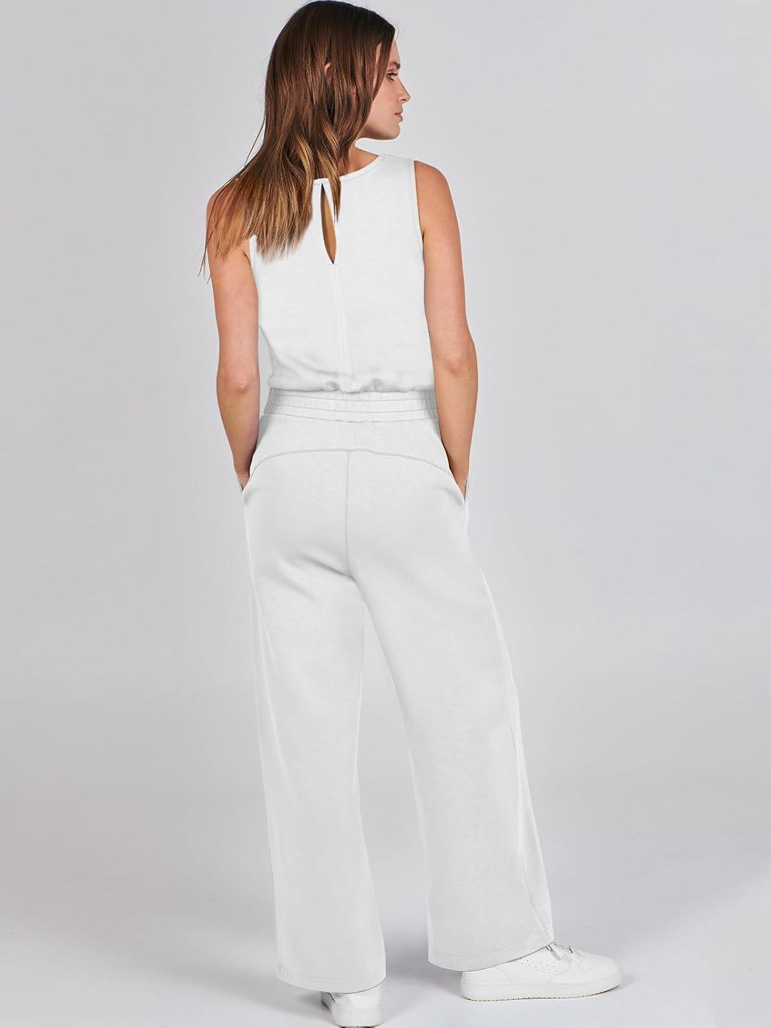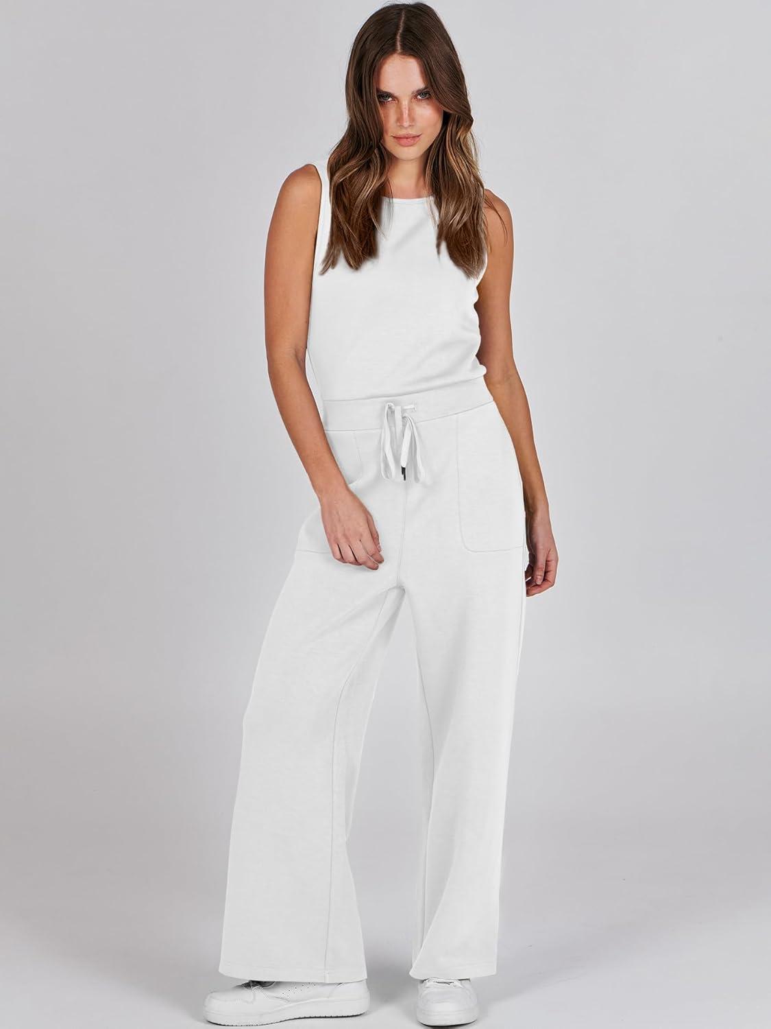 ANRABESS Womens Jumpsuits 2025 Spring Fall Thick Casual Romper Sleeveless Wide Leg Pants One Piece Outfits Vacation Clothes(White)