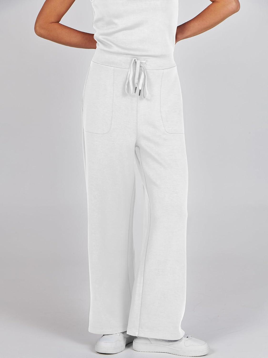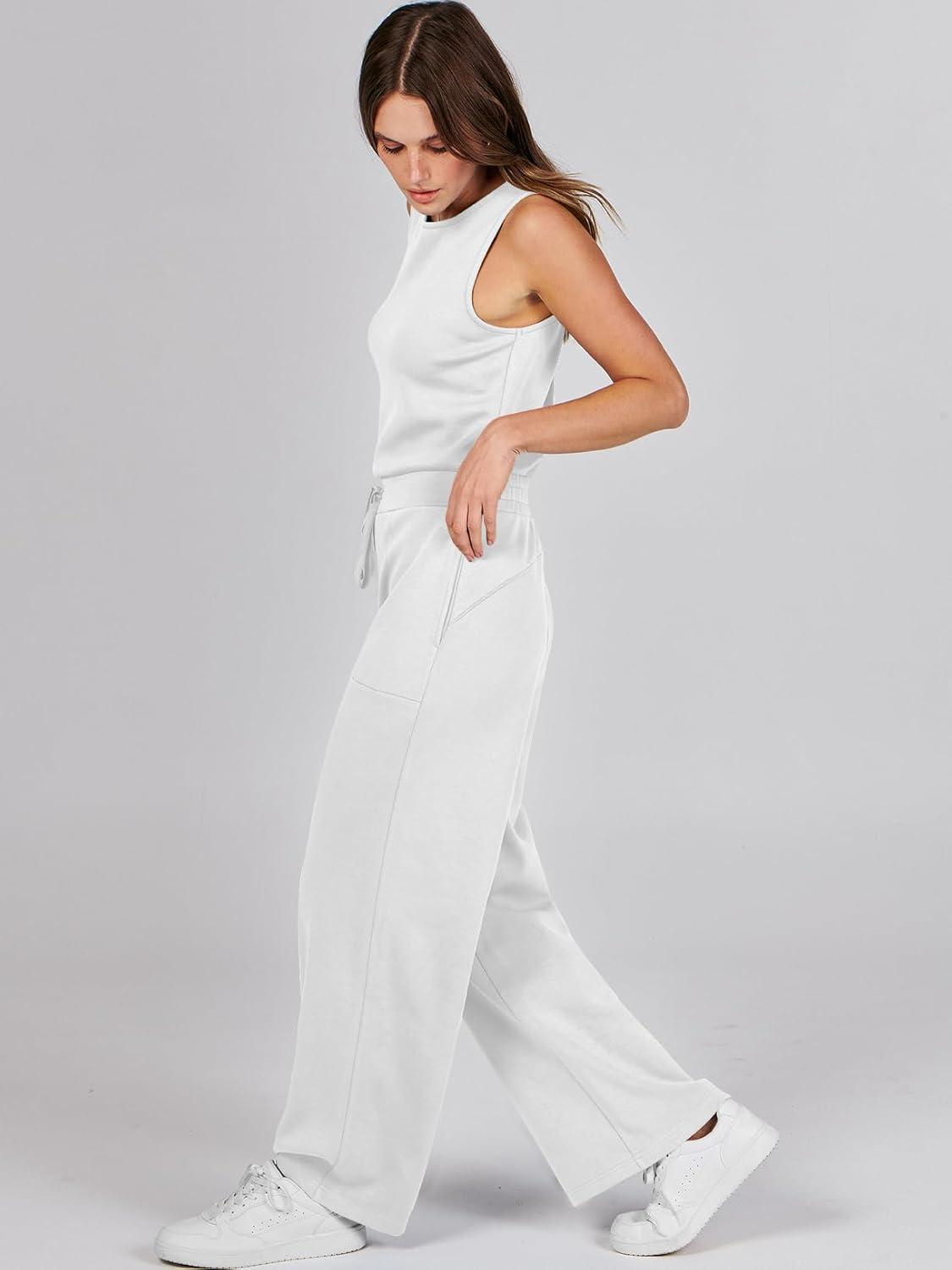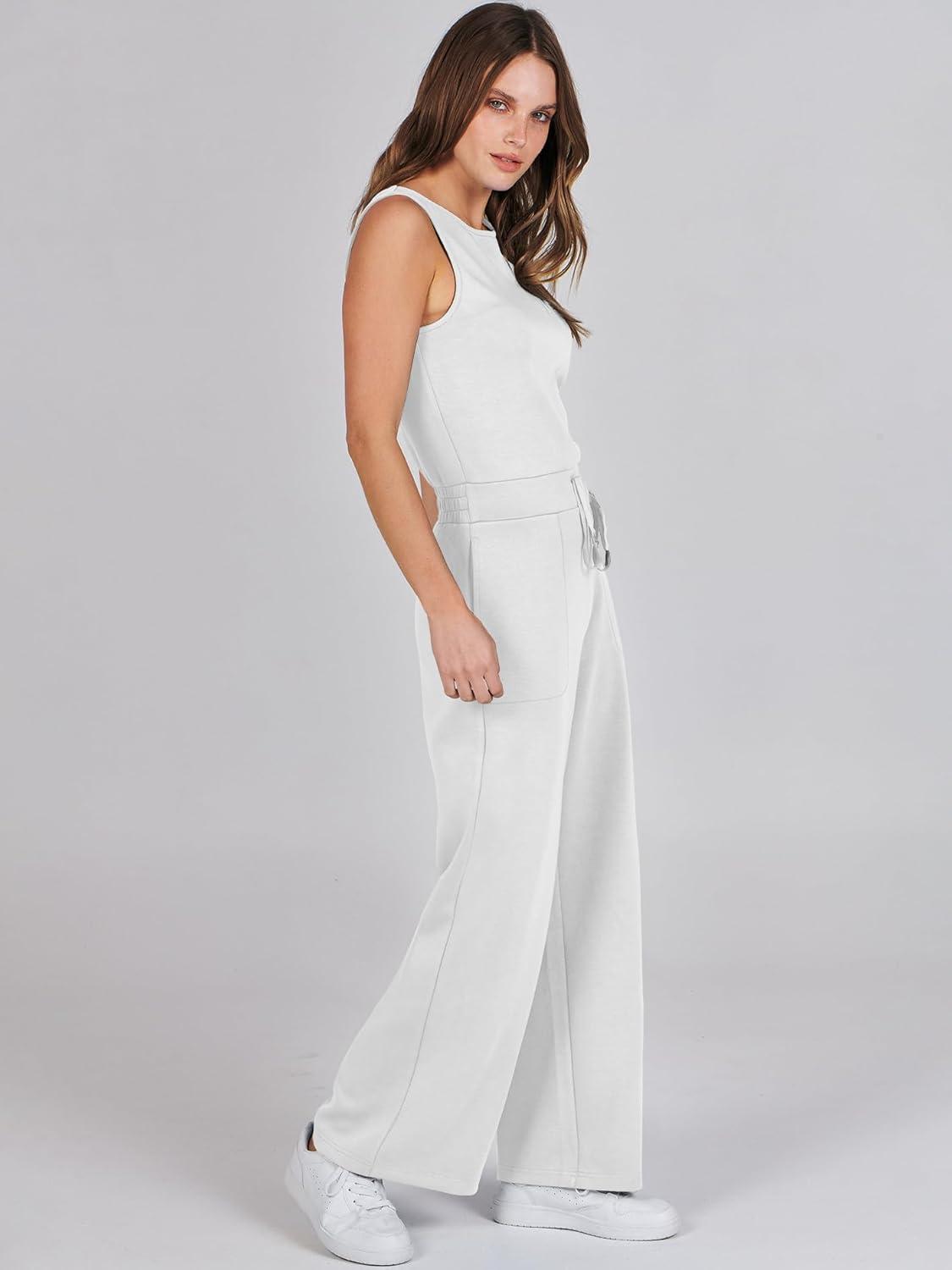 ANRABESS Womens Jumpsuits 2025 Spring Fall Thick Casual Romper Sleeveless Wide Leg Pants One Piece Outfits Vacation Clothes(White)