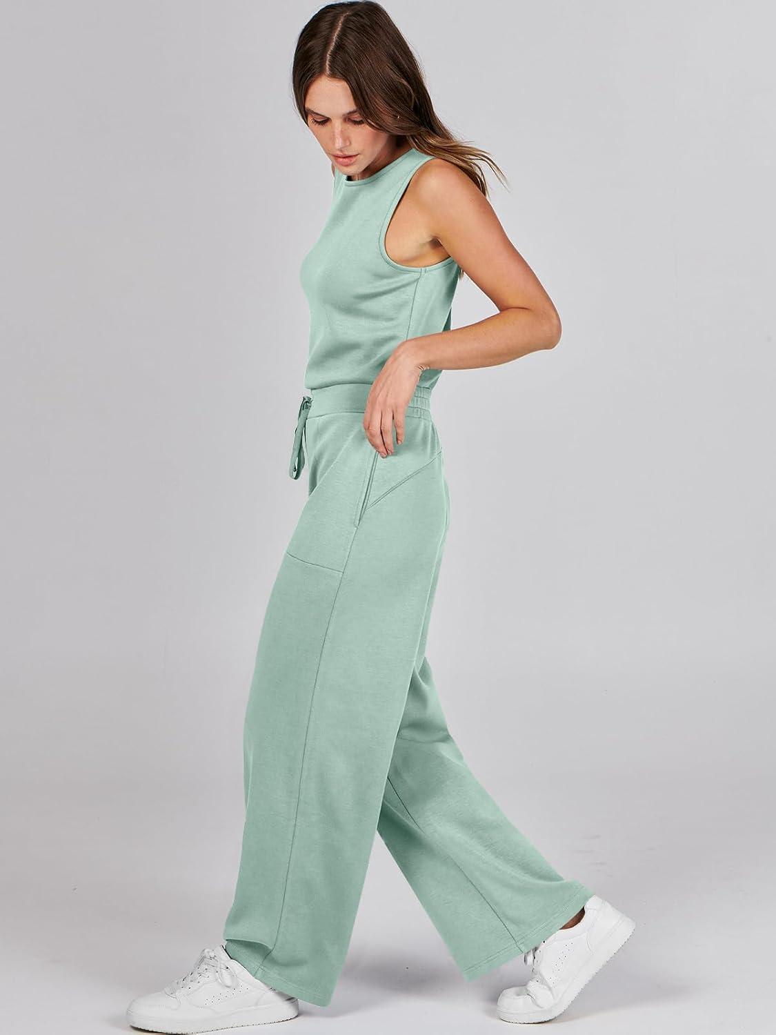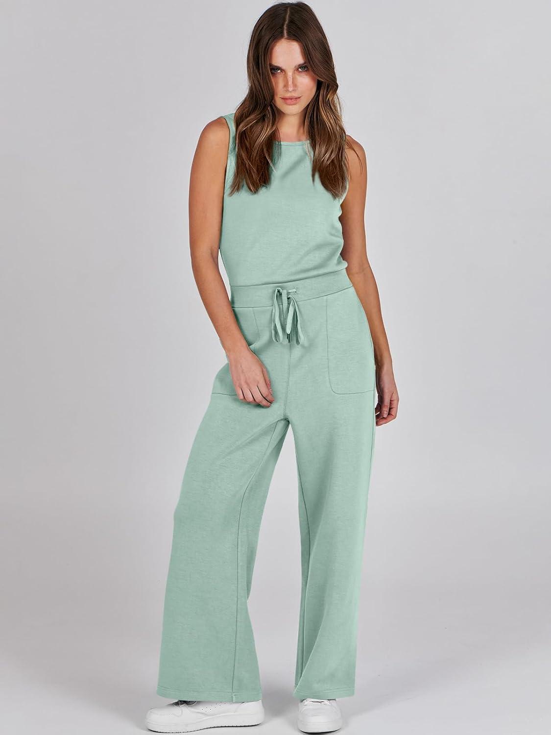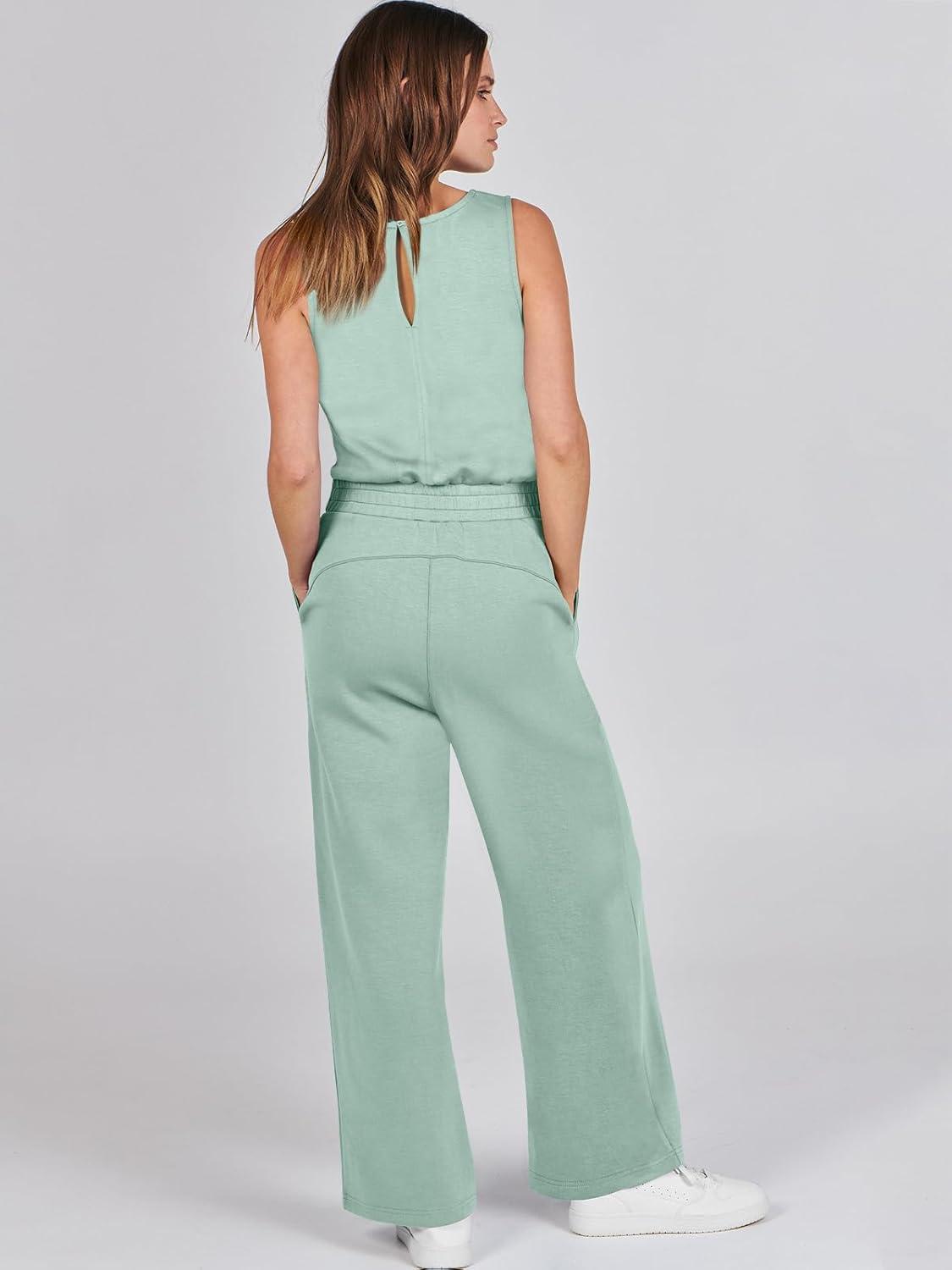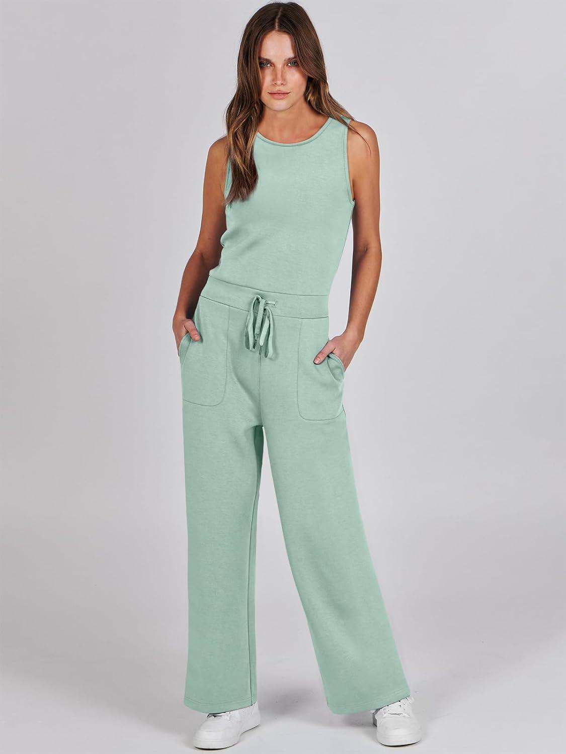 ANRABESS Womens Jumpsuits 2026 Spring Fall Thick Casual Romper Sleeveless Wide Leg Pants One Piece Outfits Vacation Clothes(Pea Green)