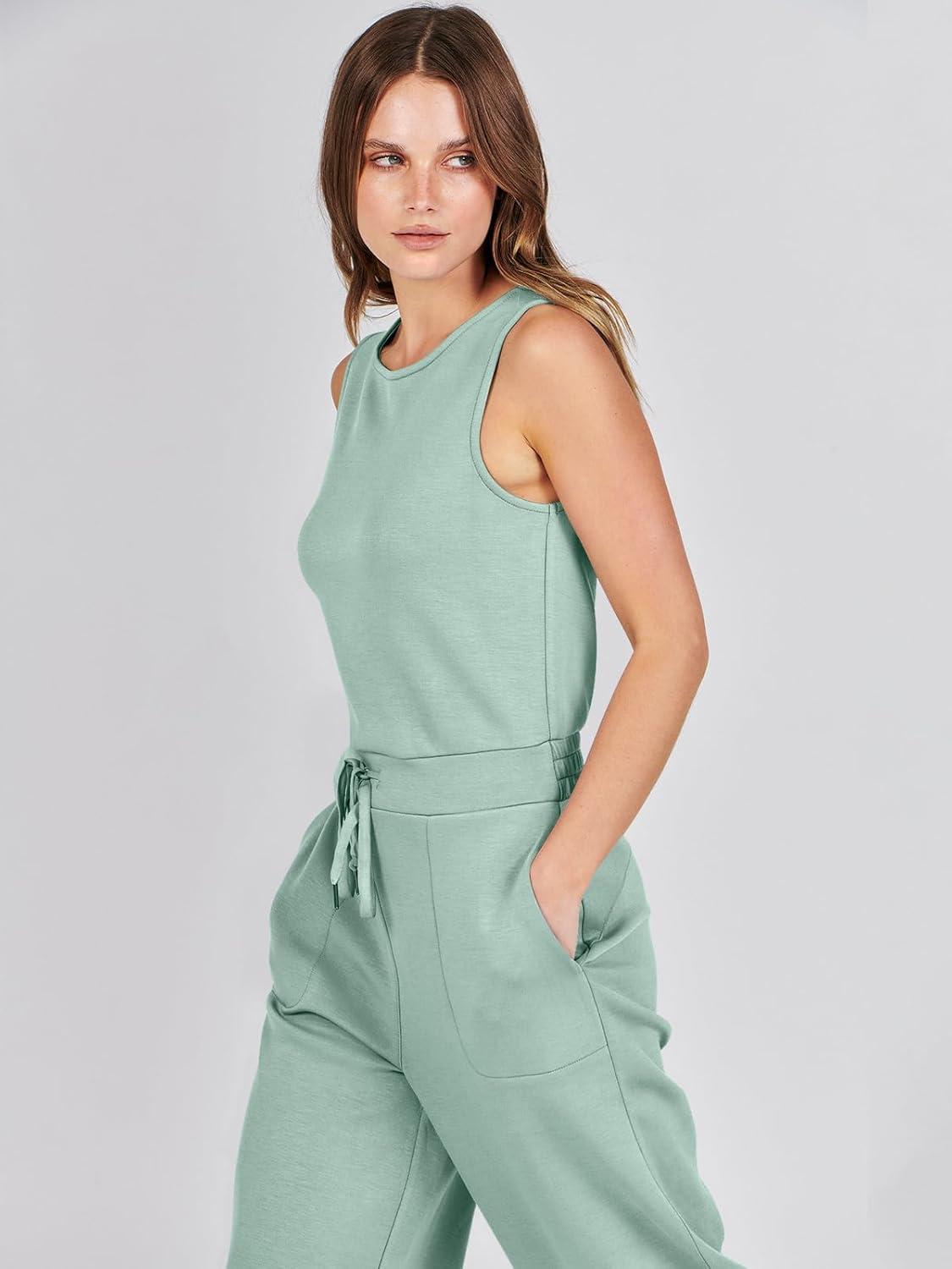 imageANRABESS Womens Jumpsuits 2026 Spring Fall Thick Casual Romper Sleeveless Wide Leg Pants One Piece Outfits Vacation ClothesPea Green