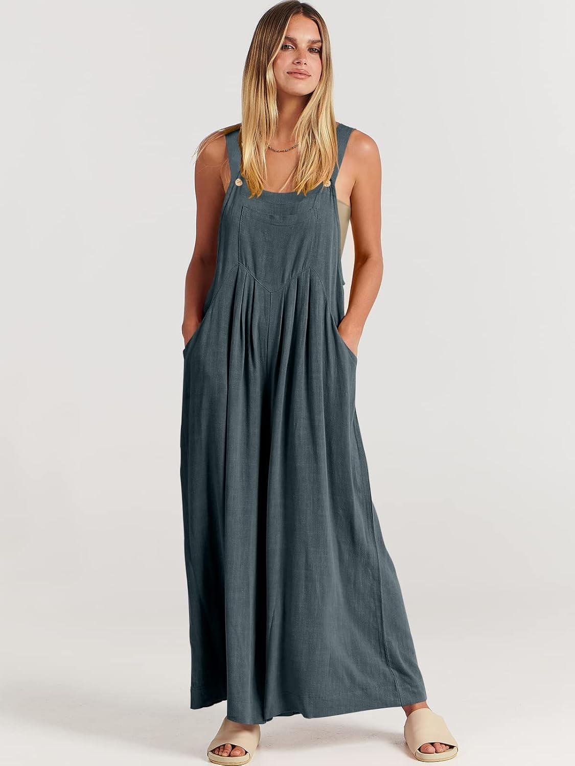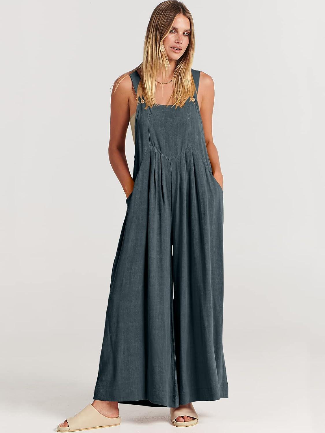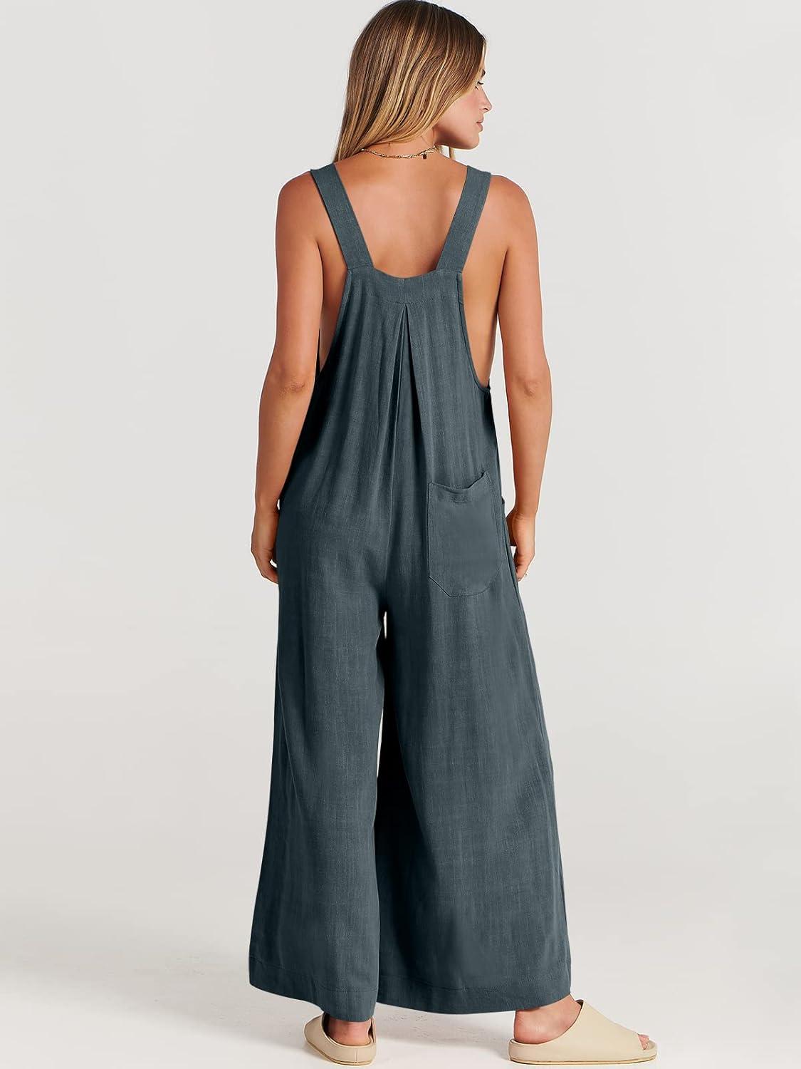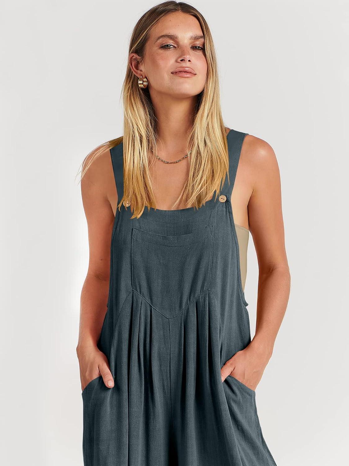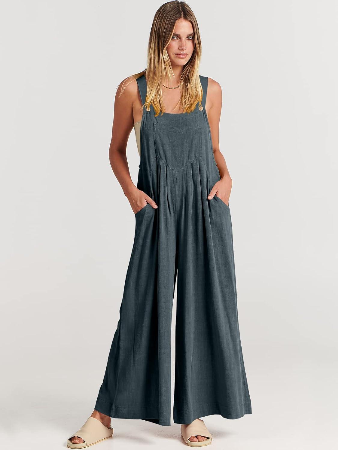 ANRABESS Womens Jumpsuits Overalls Linen Wide Leg Jumpers Casual Summer Fall Outfits 2025 Beach Vacation Clothes with Pockets(Dark Grey)