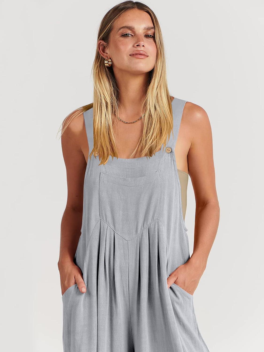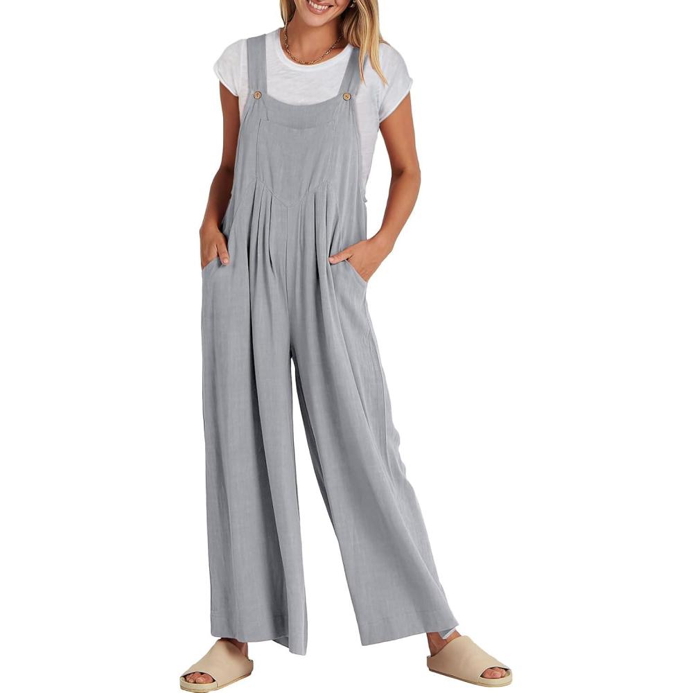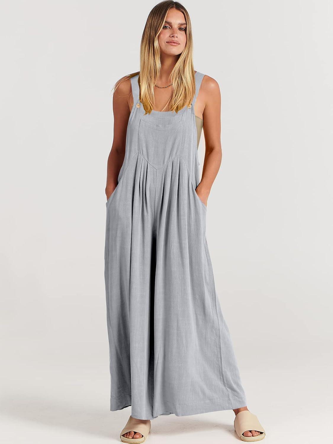 ANRABESS Womens Jumpsuits Overalls Linen Wide Leg Jumpers Casual Summer Fall Outfits 2025 Beach Vacation Clothes with Pockets(Grey)