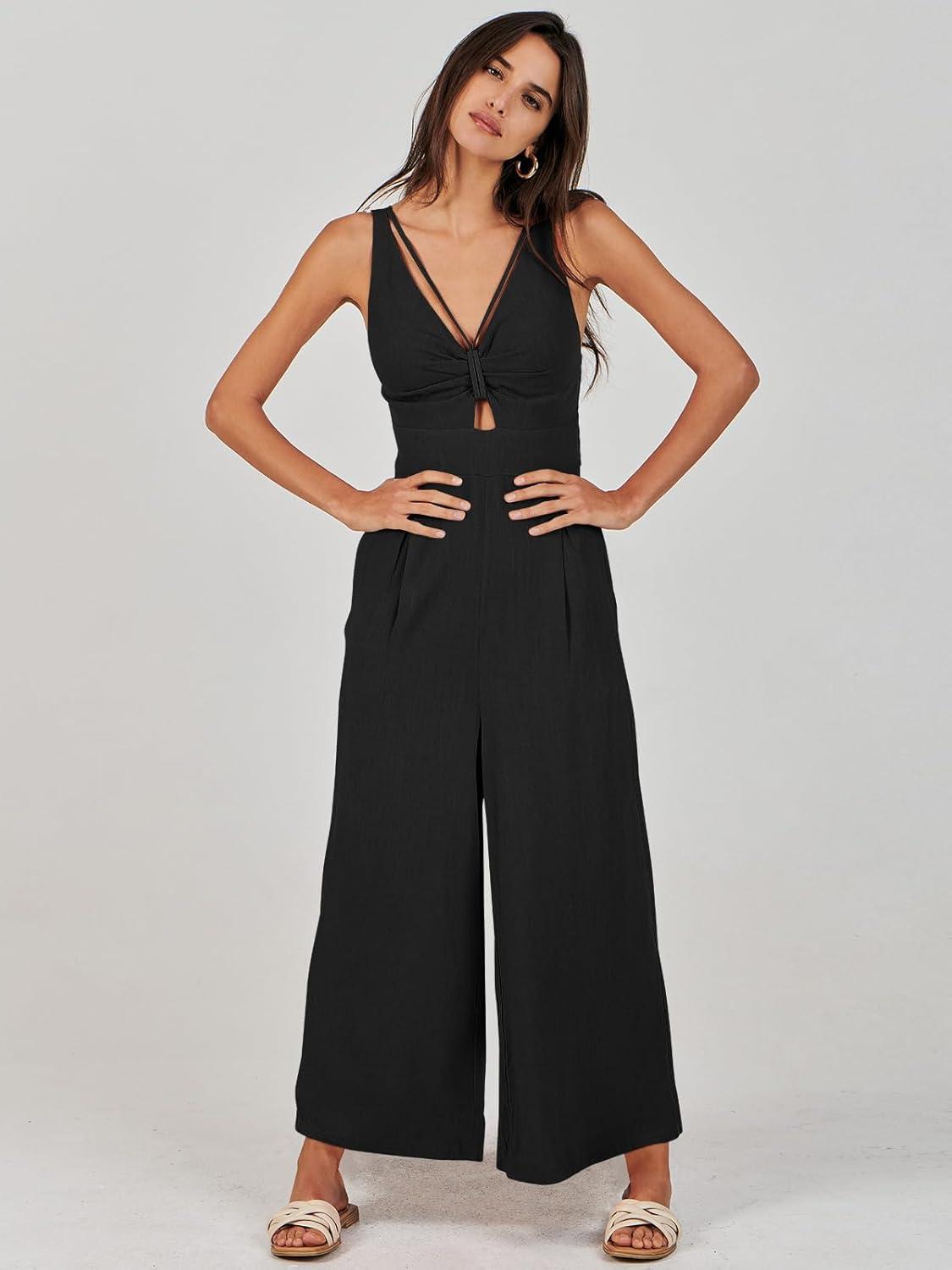 imageANRABESS Womens Jumpsuits Summer Wide Leg Sleeveless V Neck Casual Dressy Linen Pants Rompers 2025 Vacation Beach OutfitsBlack