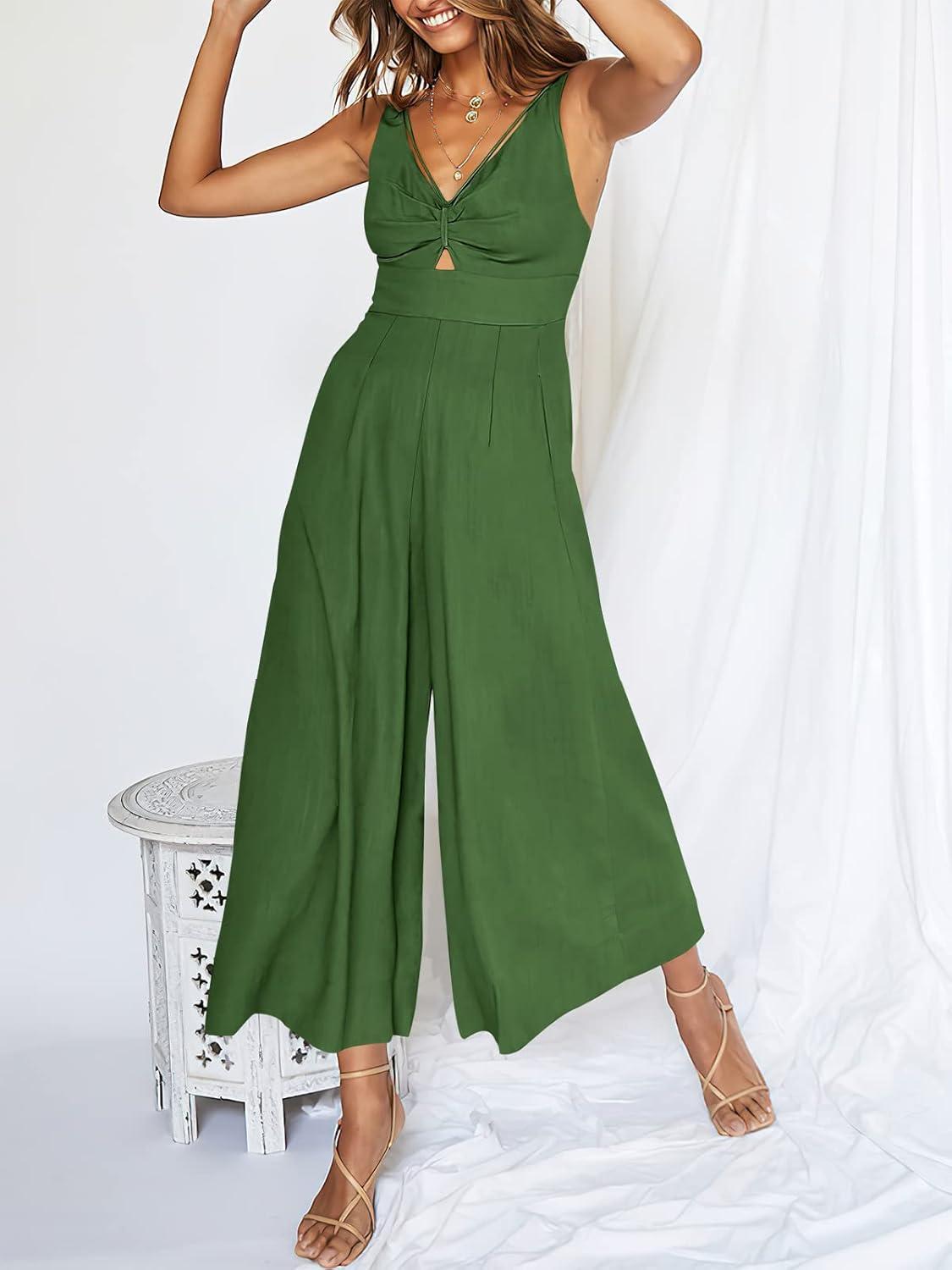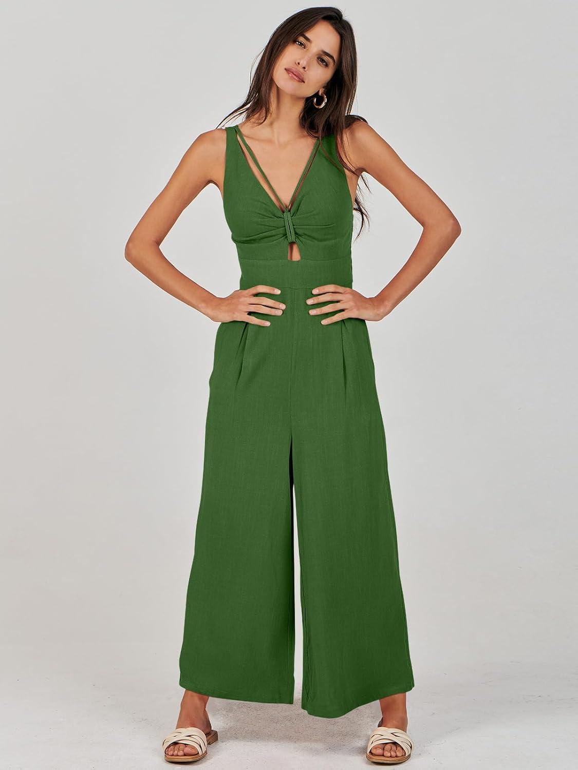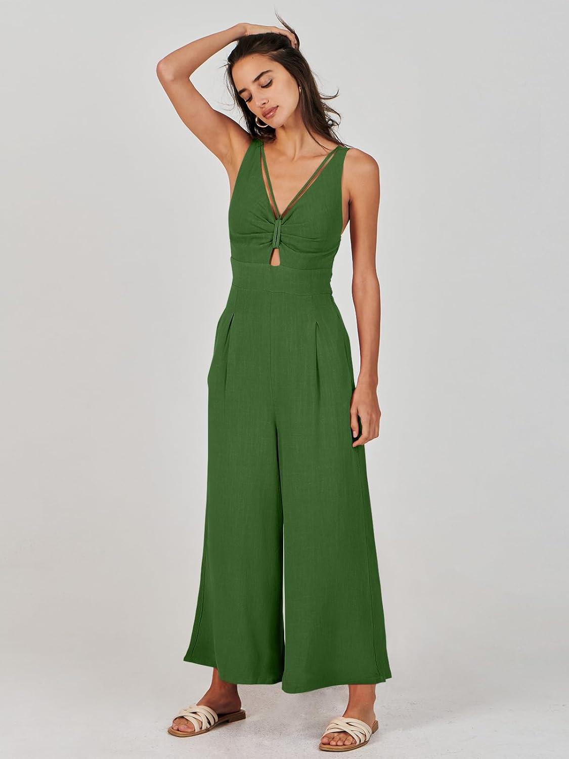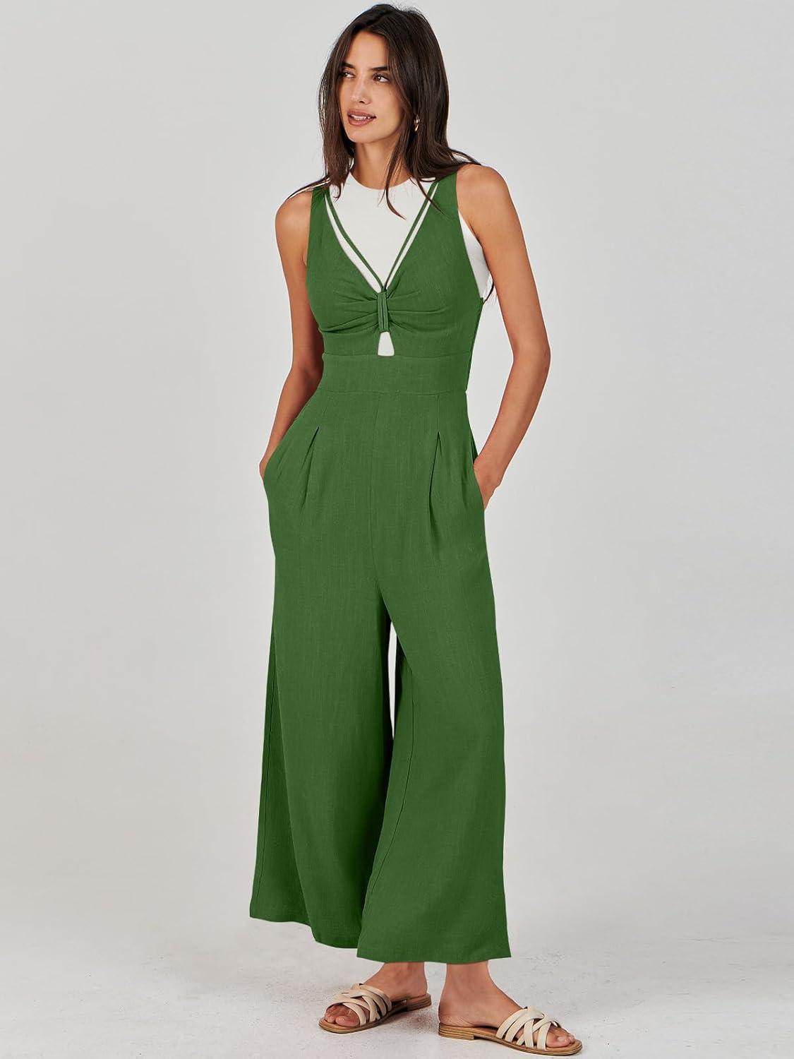 imageANRABESS Womens Jumpsuits Summer Wide Leg Sleeveless V Neck Casual Dressy Linen Pants Rompers 2025 Vacation Beach OutfitsGreen