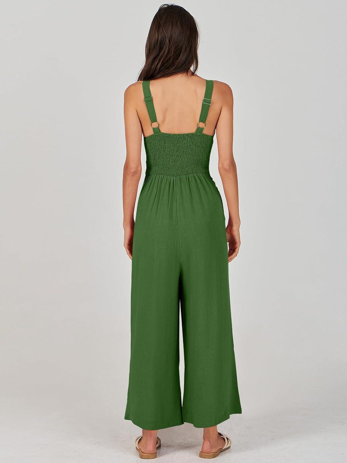 ANRABESS Women’s Jumpsuits Summer Wide Leg Sleeveless V Neck Casual Dressy Linen Pants Rompers 2025 Vacation Beach Outfits(Green)