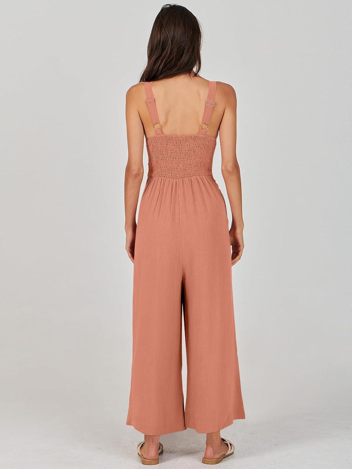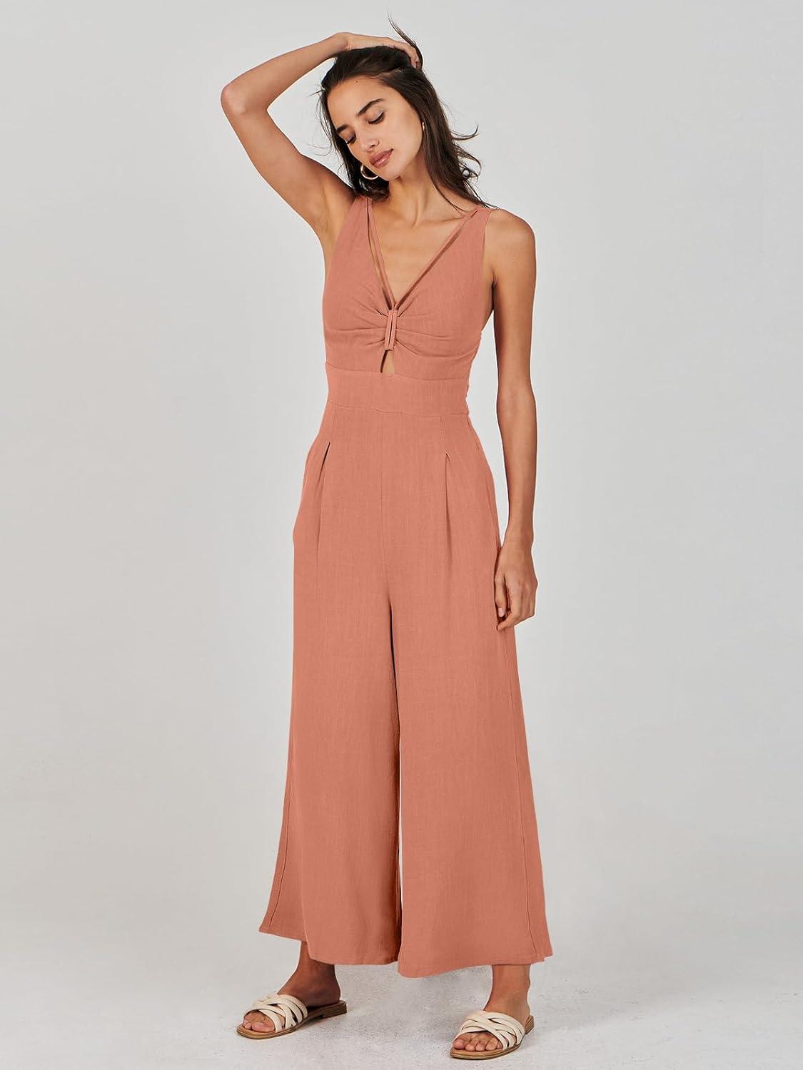 ANRABESS Women's Jumpsuits Summer Wide Leg Sleeveless V Neck Casual Dressy Linen Pants Rompers 2025 Vacation Beach Outfits(Pink)