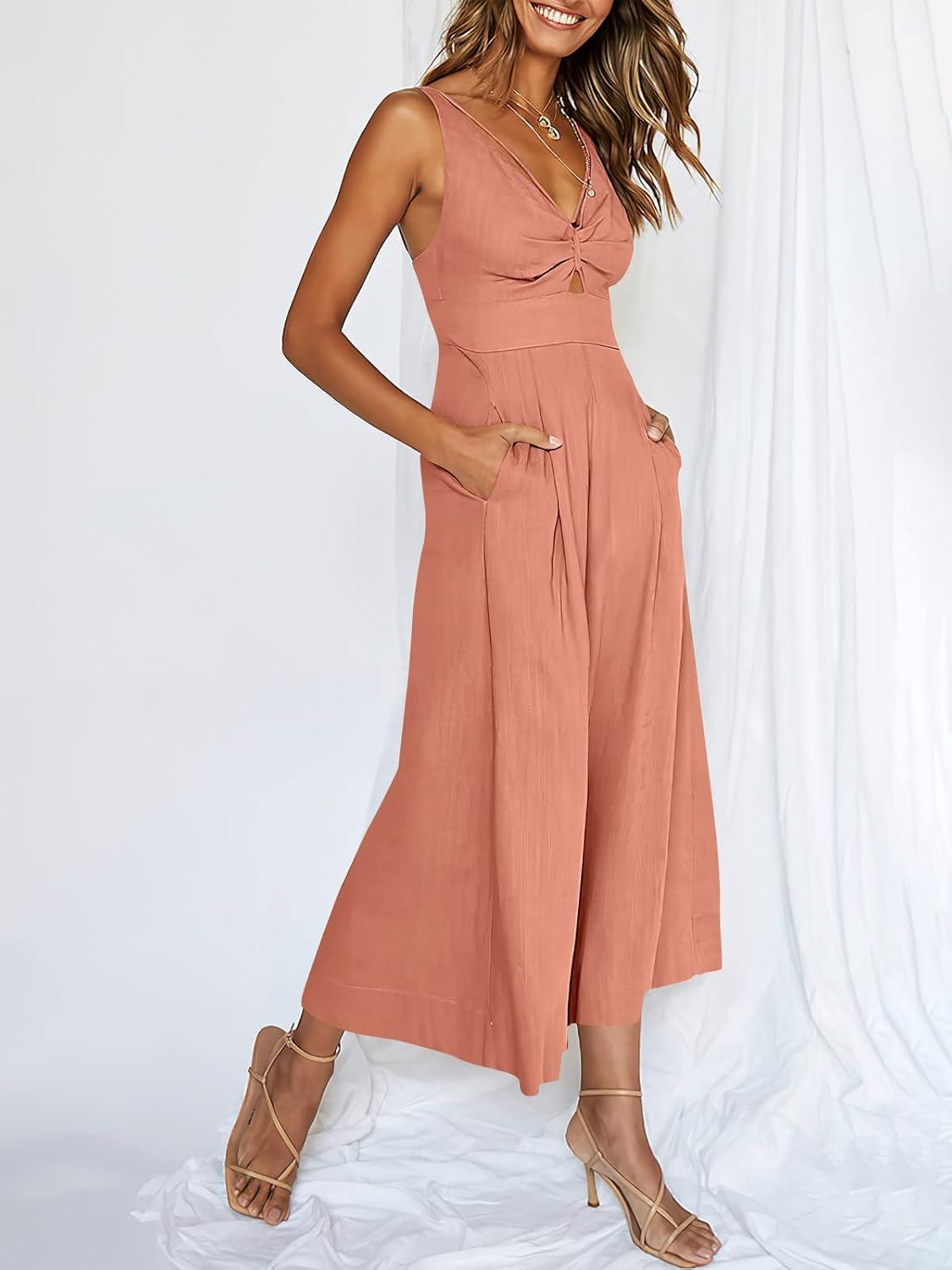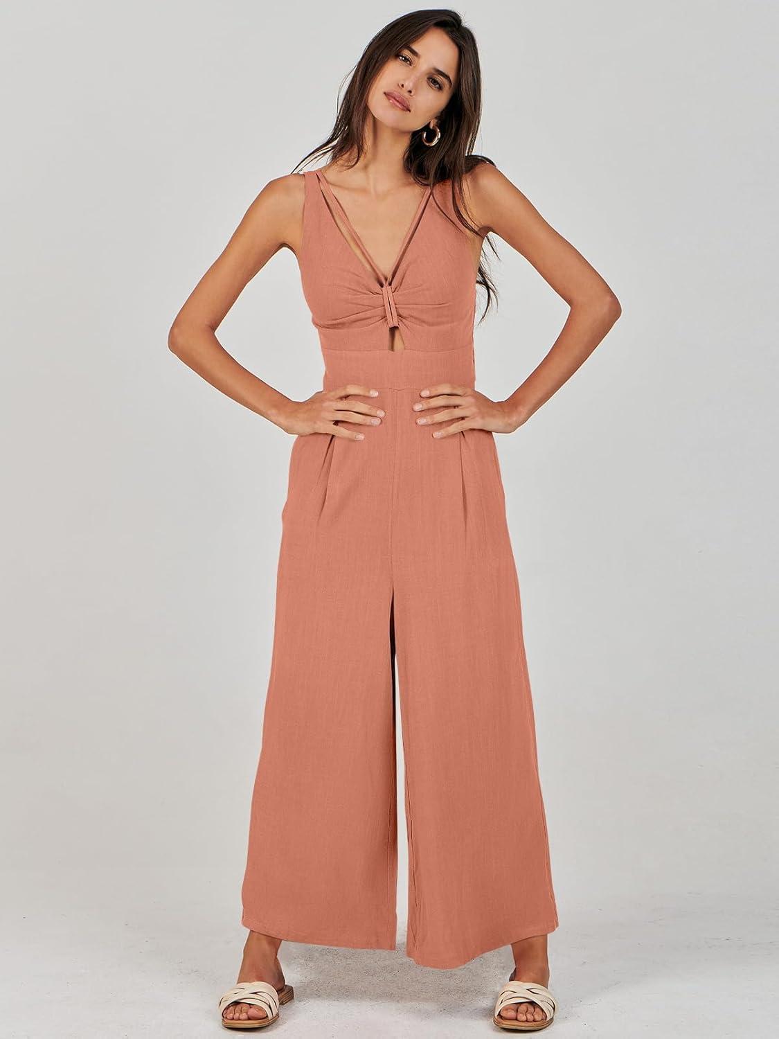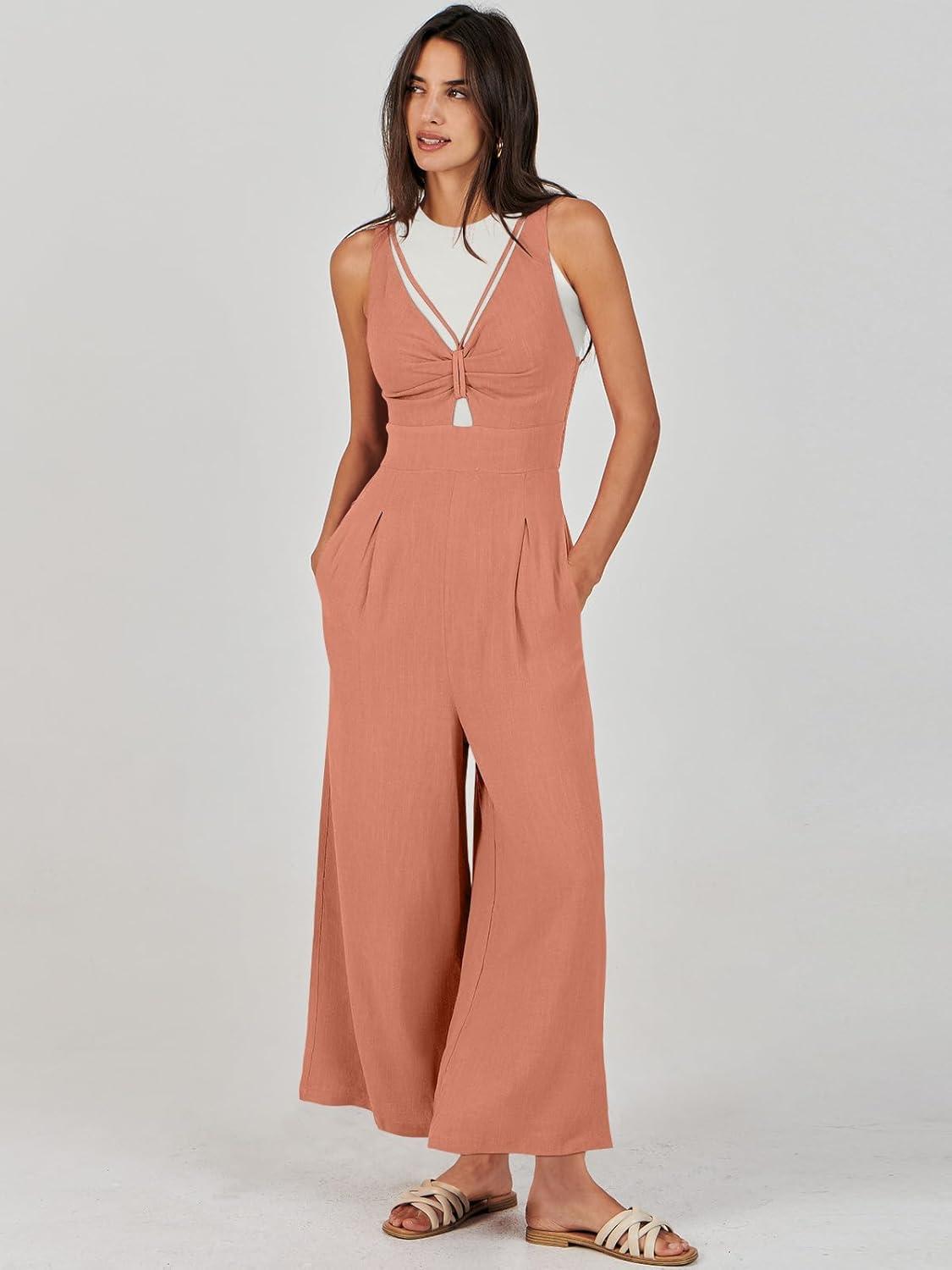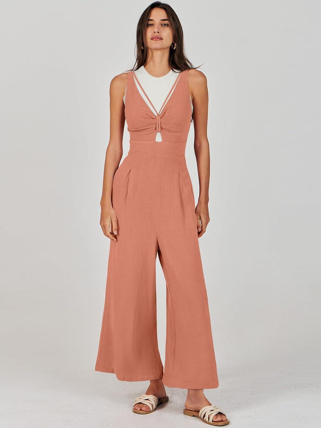 imageANRABESS Womens Jumpsuits Summer Wide Leg Sleeveless V Neck Casual Dressy Linen Pants Rompers 2025 Vacation Beach OutfitsPink