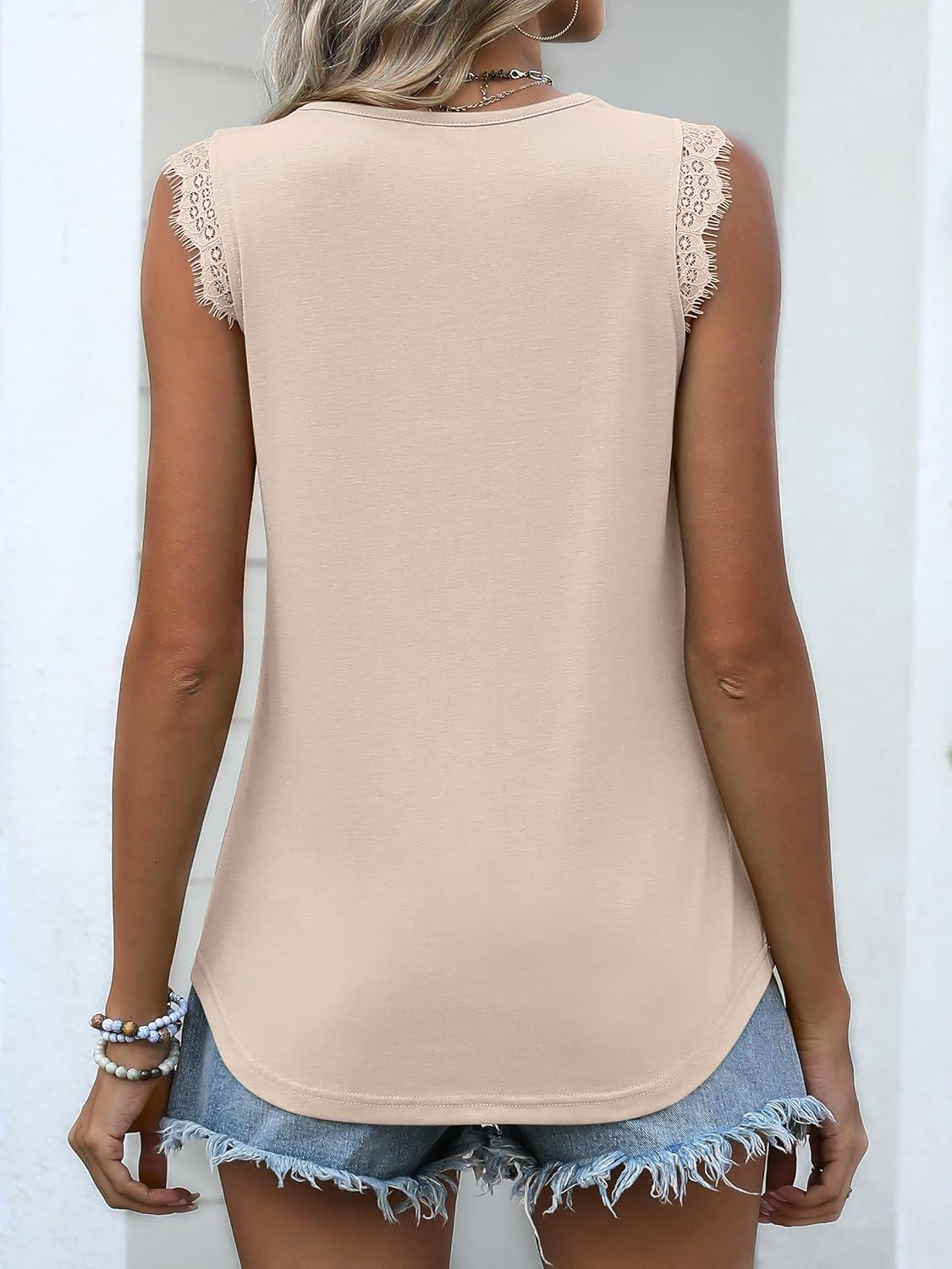 ANRABESS Womens Lace Trim Tank Tops V Neck Sleeveless Shirts 2025 Summer Casual Trendy Dressy Cami Top(White)
