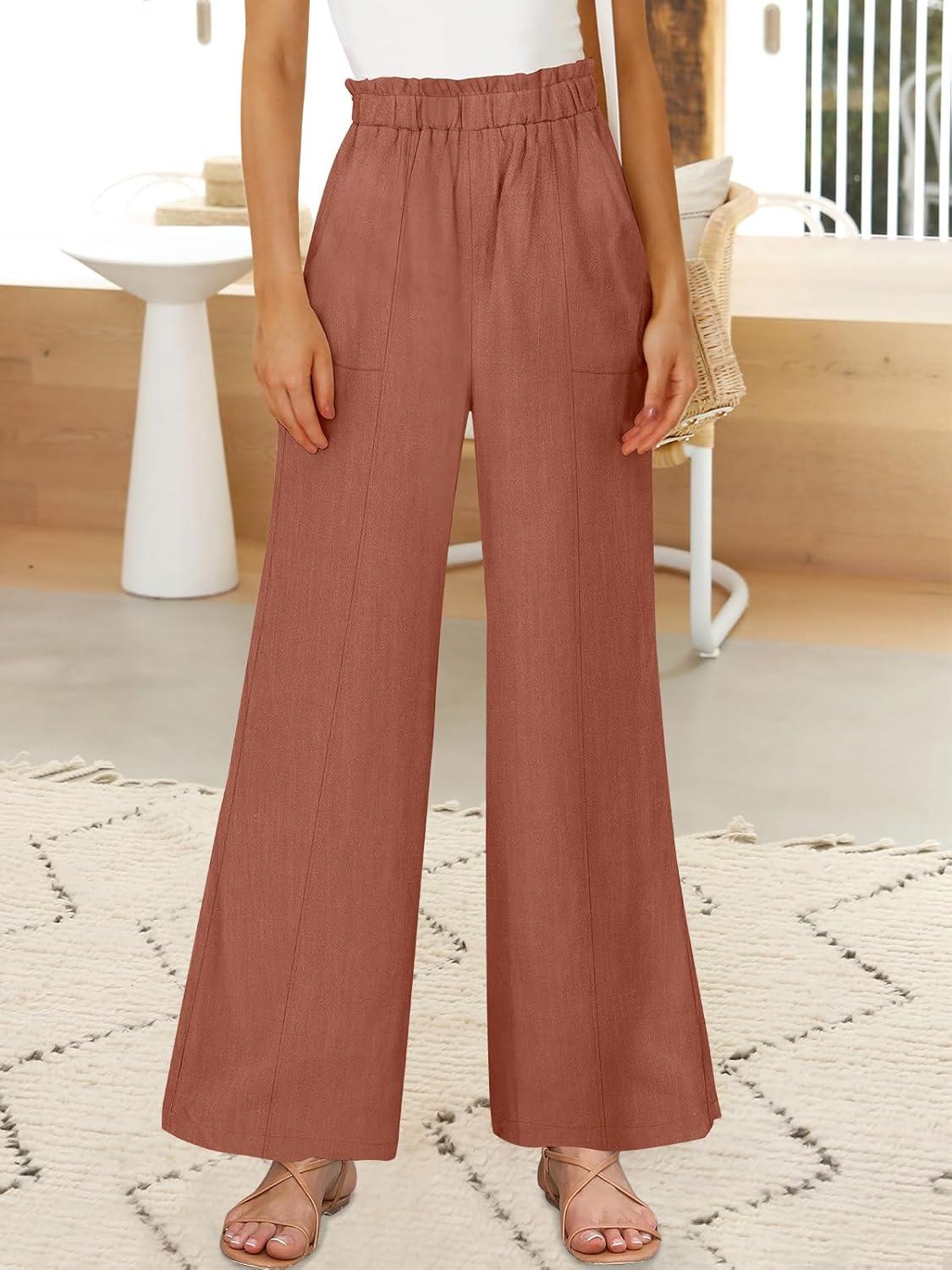 ANRABESS Womens Linen Pants 2025 Summer Casual Loose Wide Leg Palazzo Pants High Waist Flowy Beach Trousers Work Outfits(Brown Red)