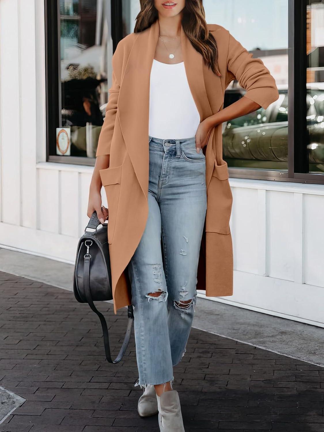 ANRABESS Women’s Long Cardigan Sweater 2025 Fall Fashion Casual Oversized Knit Open Front Coatigan Jacket Coat Outfits(Peach Khaki)