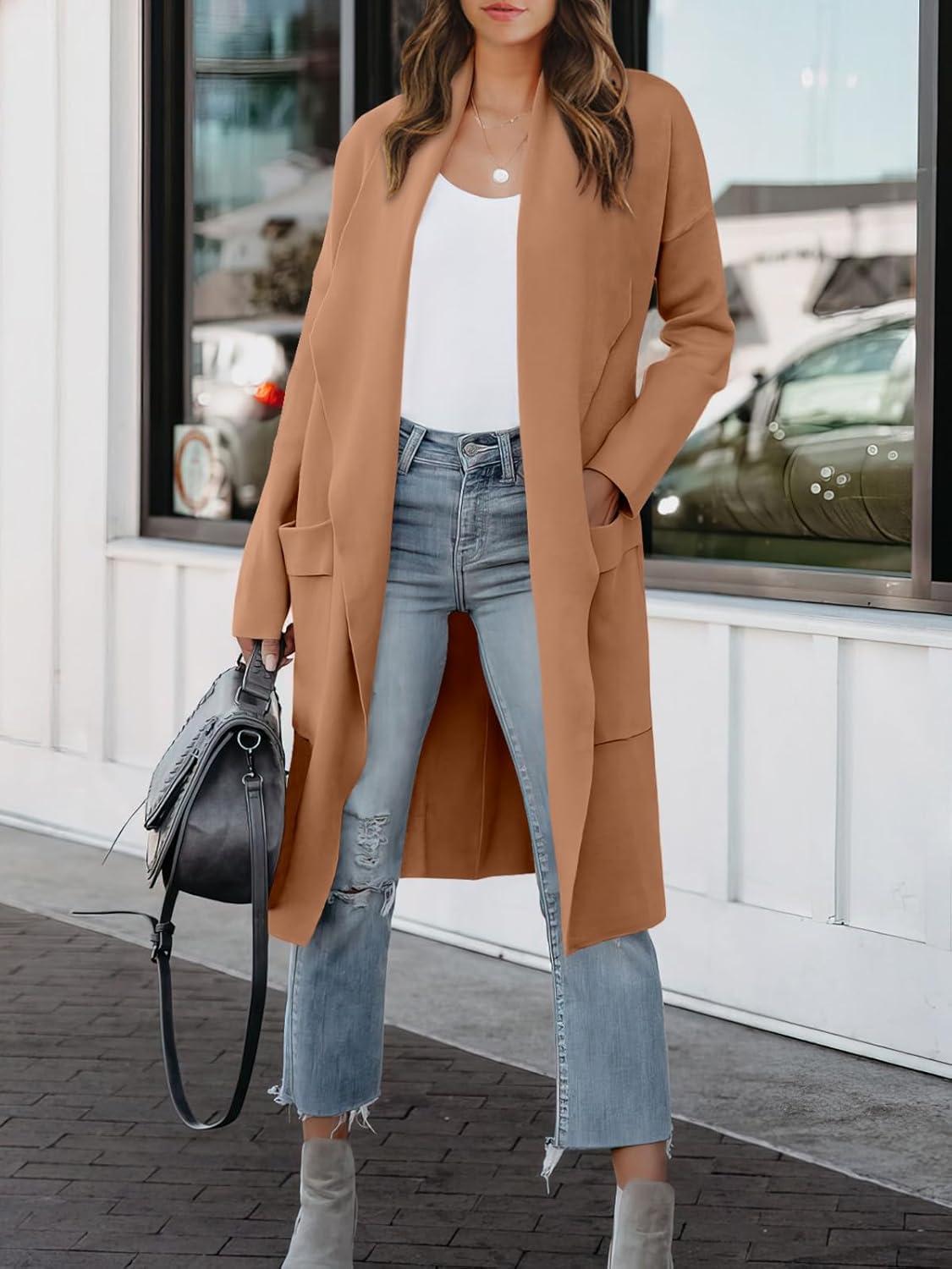 imageANRABESS Womens Long Cardigan Sweater 2025 Fall Fashion Casual Oversized Knit Open Front Coatigan Jacket Coat OutfitsCoffee